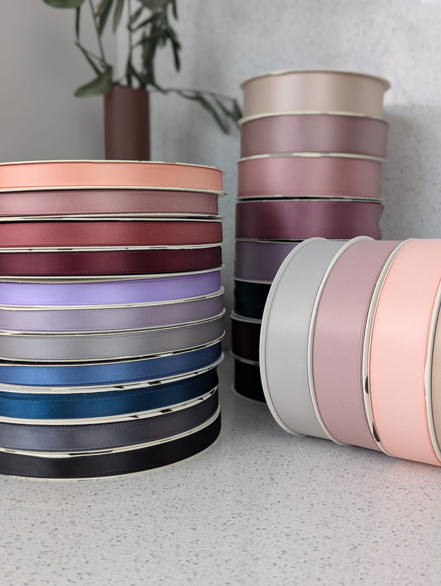 Les rubans en satin offrent une élégance classique et une finition lisse. Les versions mates sont plus sobres et modernes, et se marient très bien avec des papiers naturels et des fleurs séchées.