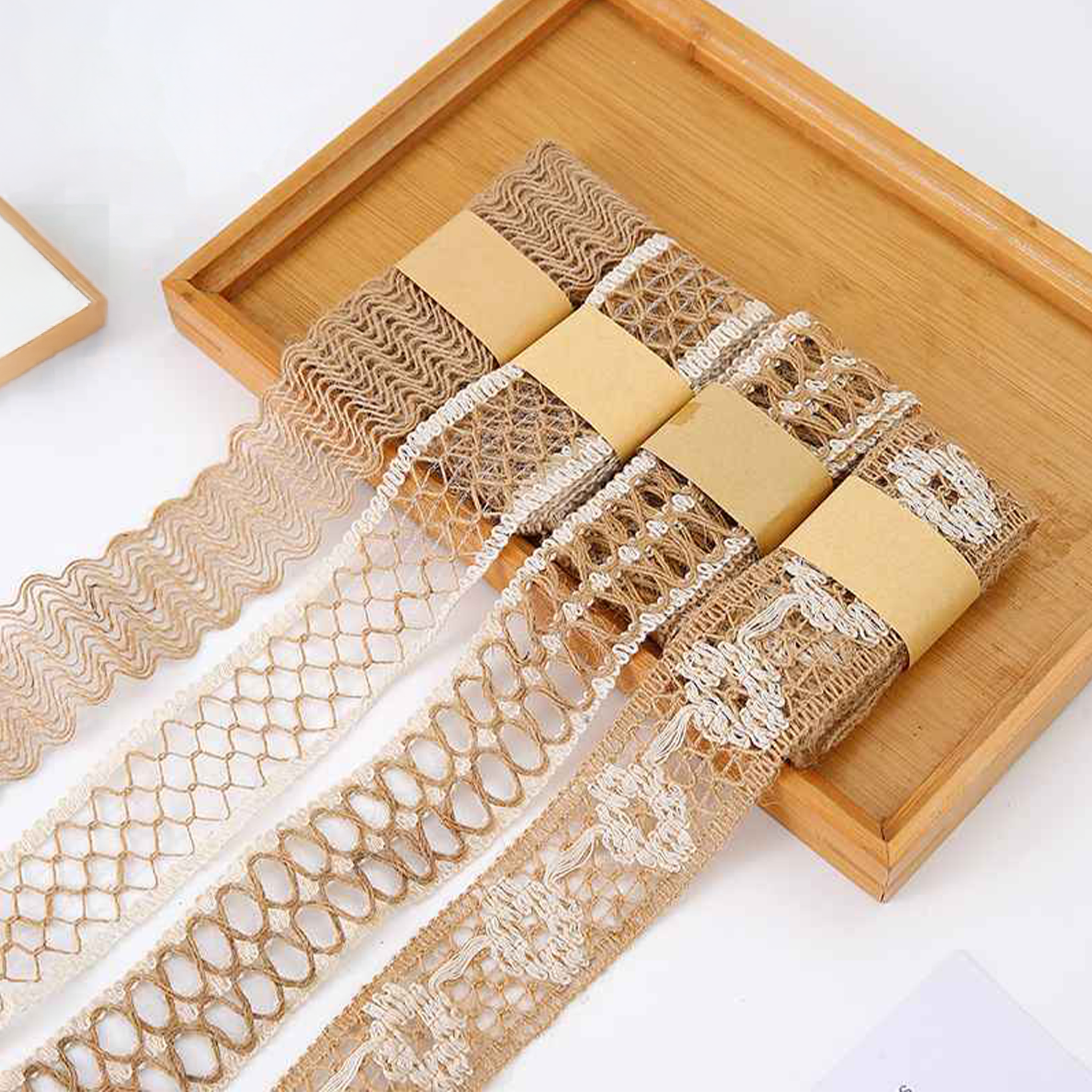 Rubans en tissu, en jute et en dentelle