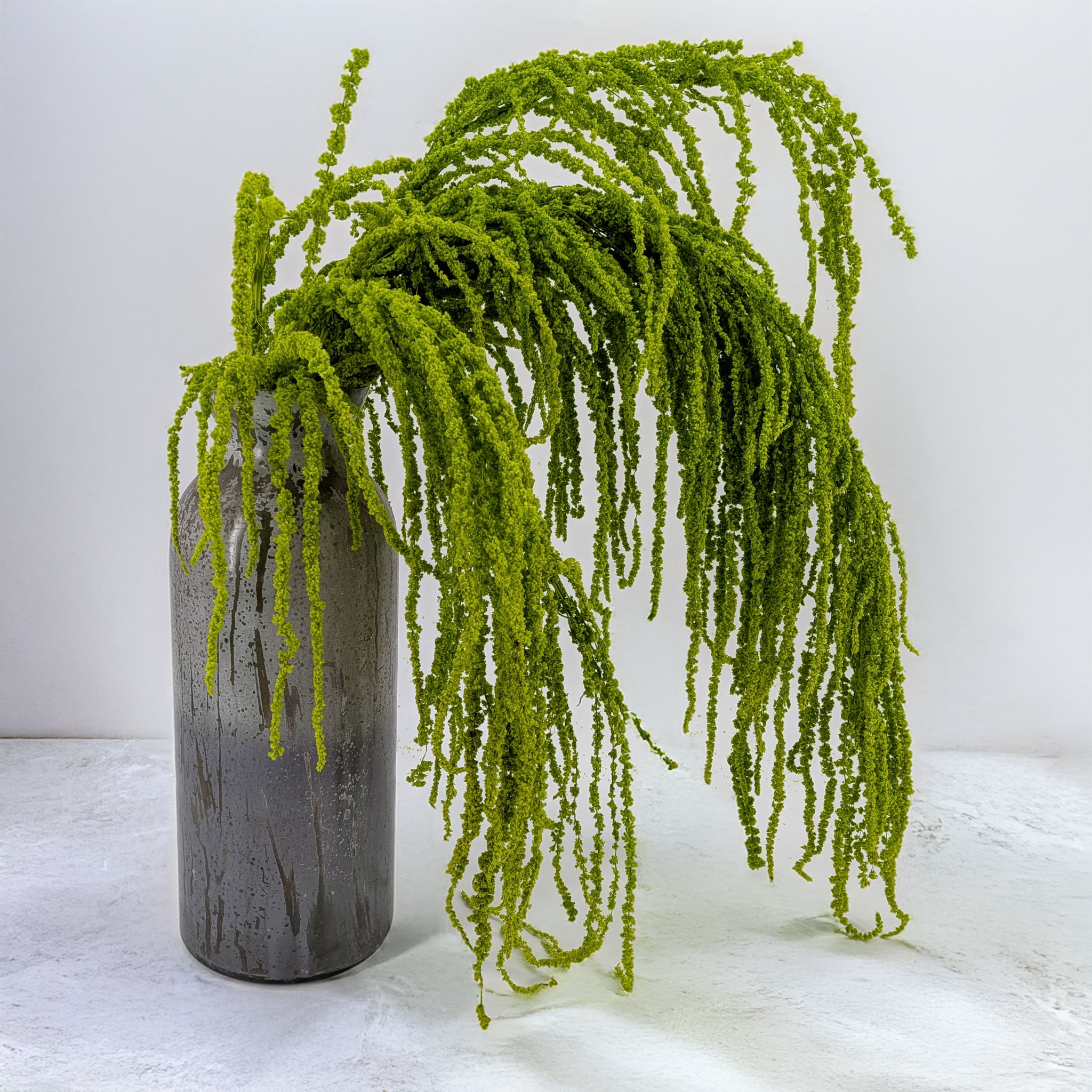L’amarante en version stabilisée est l’une des plantes les plus caractéristiques utilisées dans la floristique décorative contemporaine. Cette variété de la ligne premium se distingue par des inflorescences exceptionnellement longues et souples, retombant délicatement, qui atteignent jusqu’à 100 cm de longueur et créent un effet naturel en cascade.