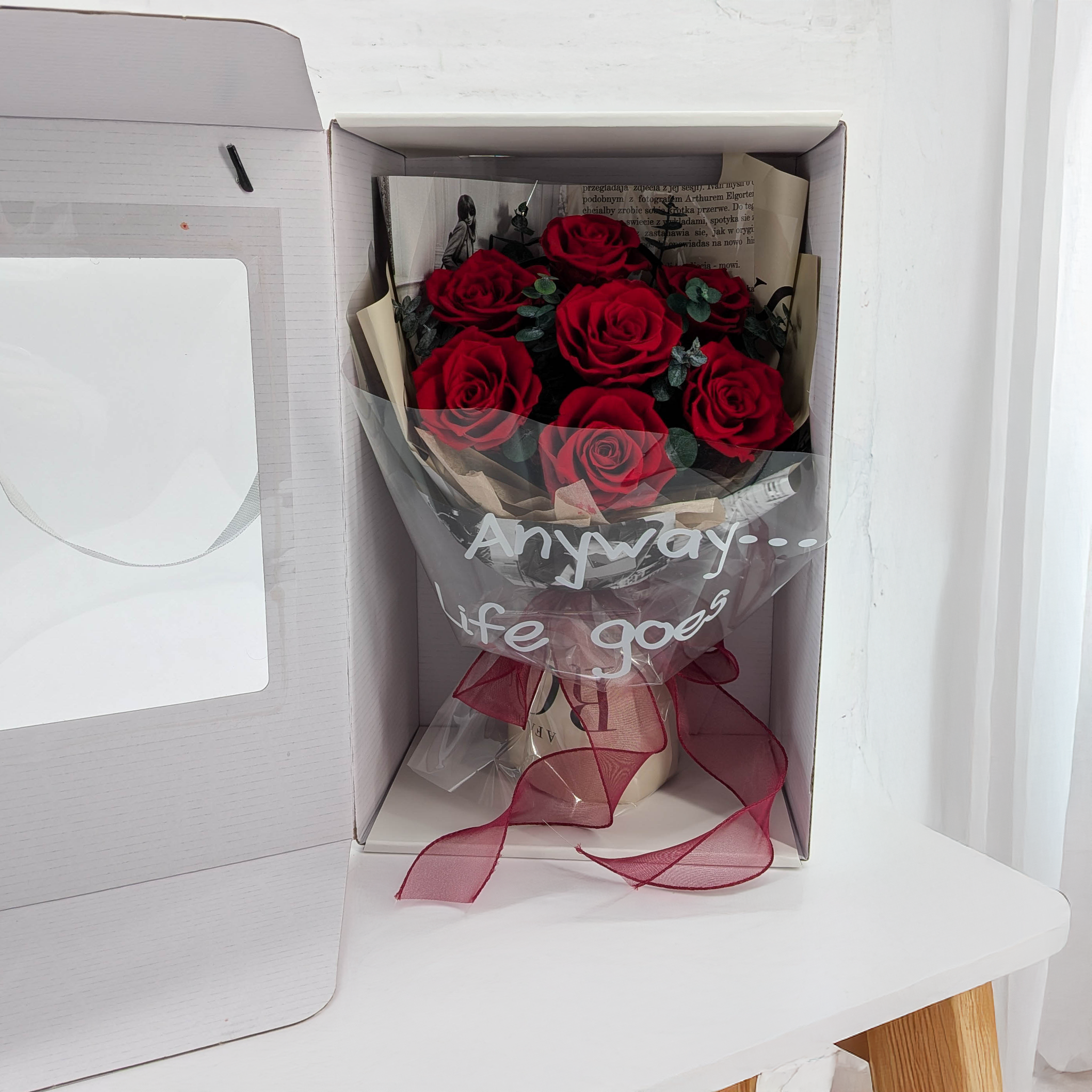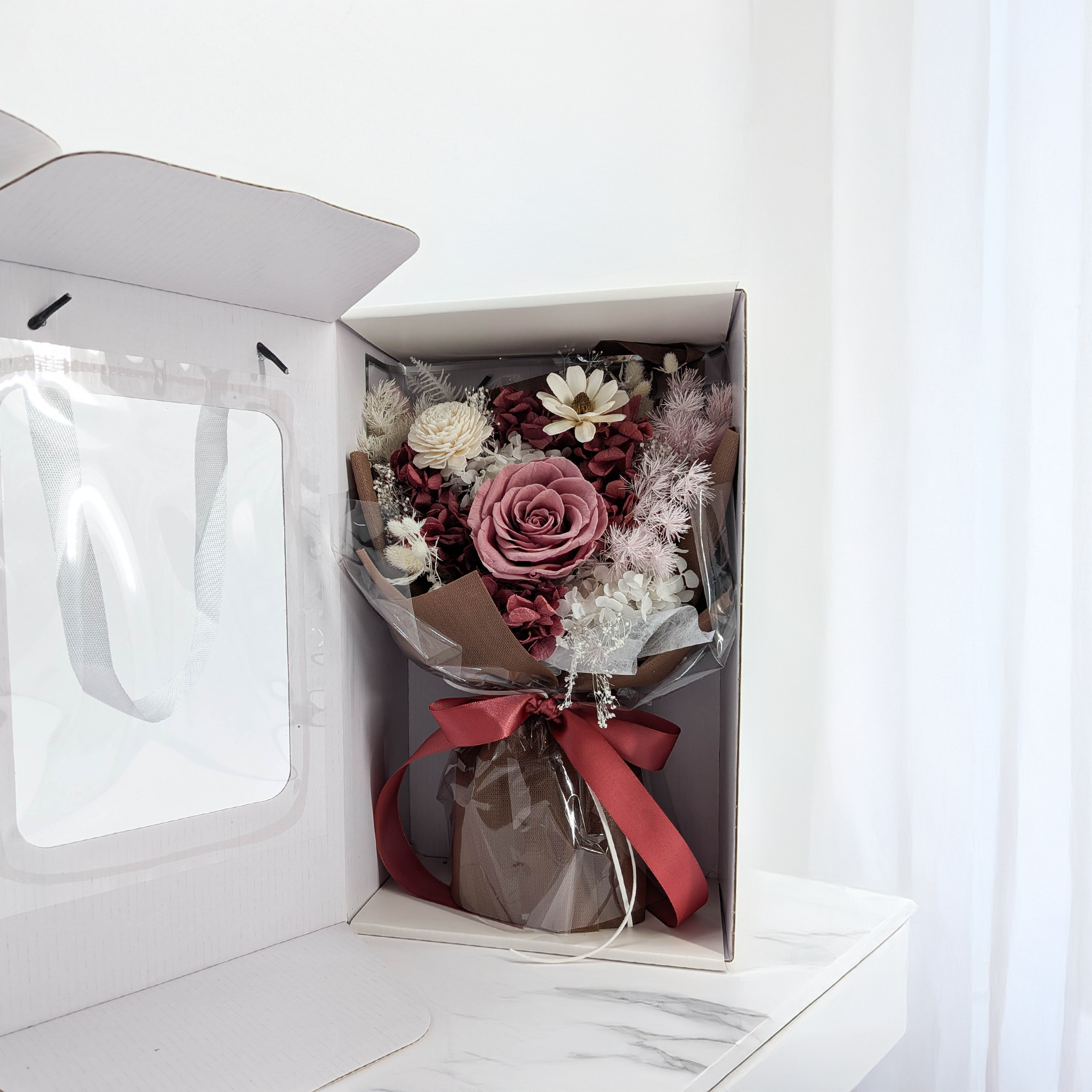 Chaque bouquet est soigneusement conçu et prêt à être exposé dès sa sortie de l’emballage. Il ne nécessite ni vase ni accessoires supplémentaires – c’est une décoration complète qui apporte instantanément du style et du caractère à l’espace.