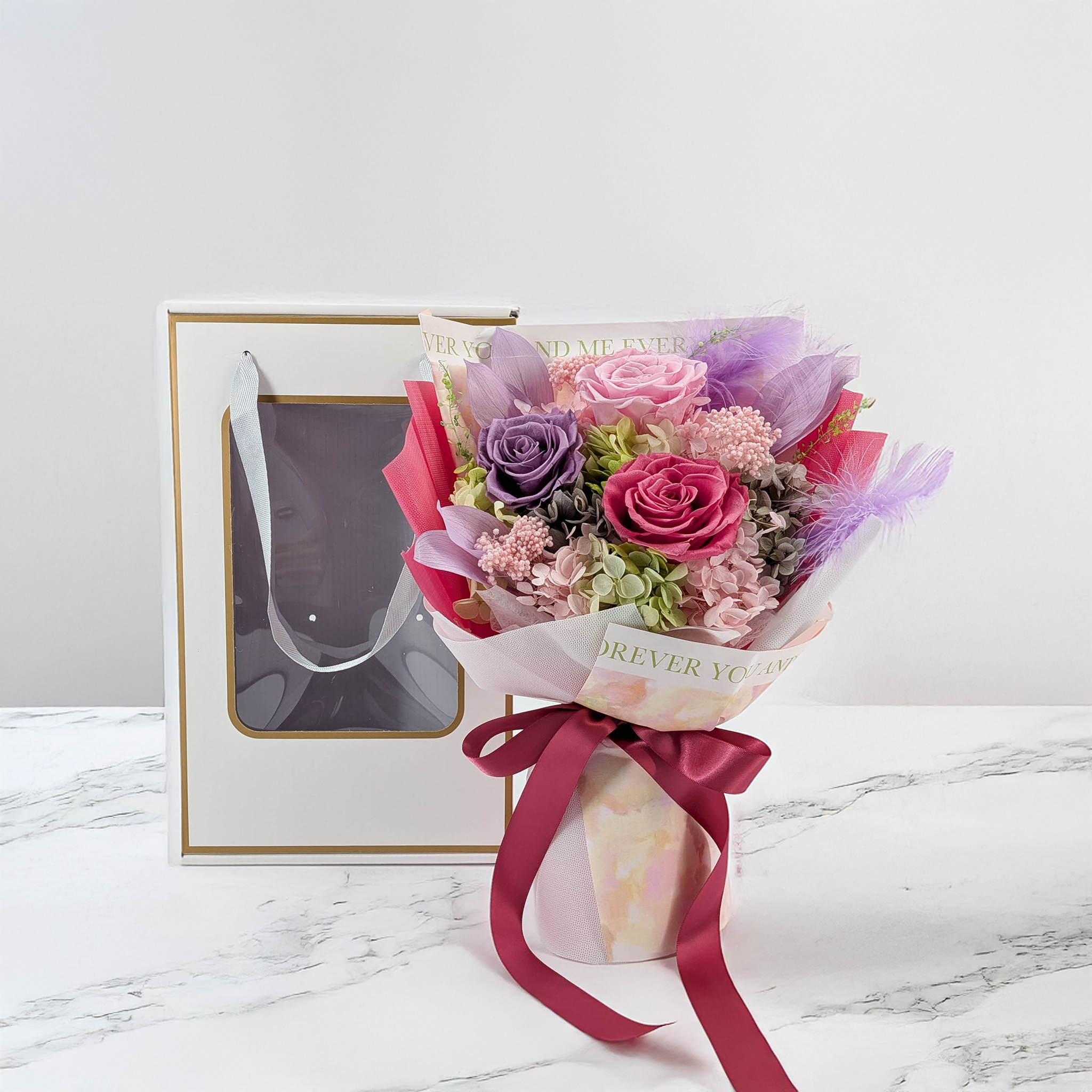 L’un des éléments distinctifs des bouquets Evergive est leur emballage soigneusement conçu. Les boîtes modernes et raffinées donnent immédiatement une impression de luxe.