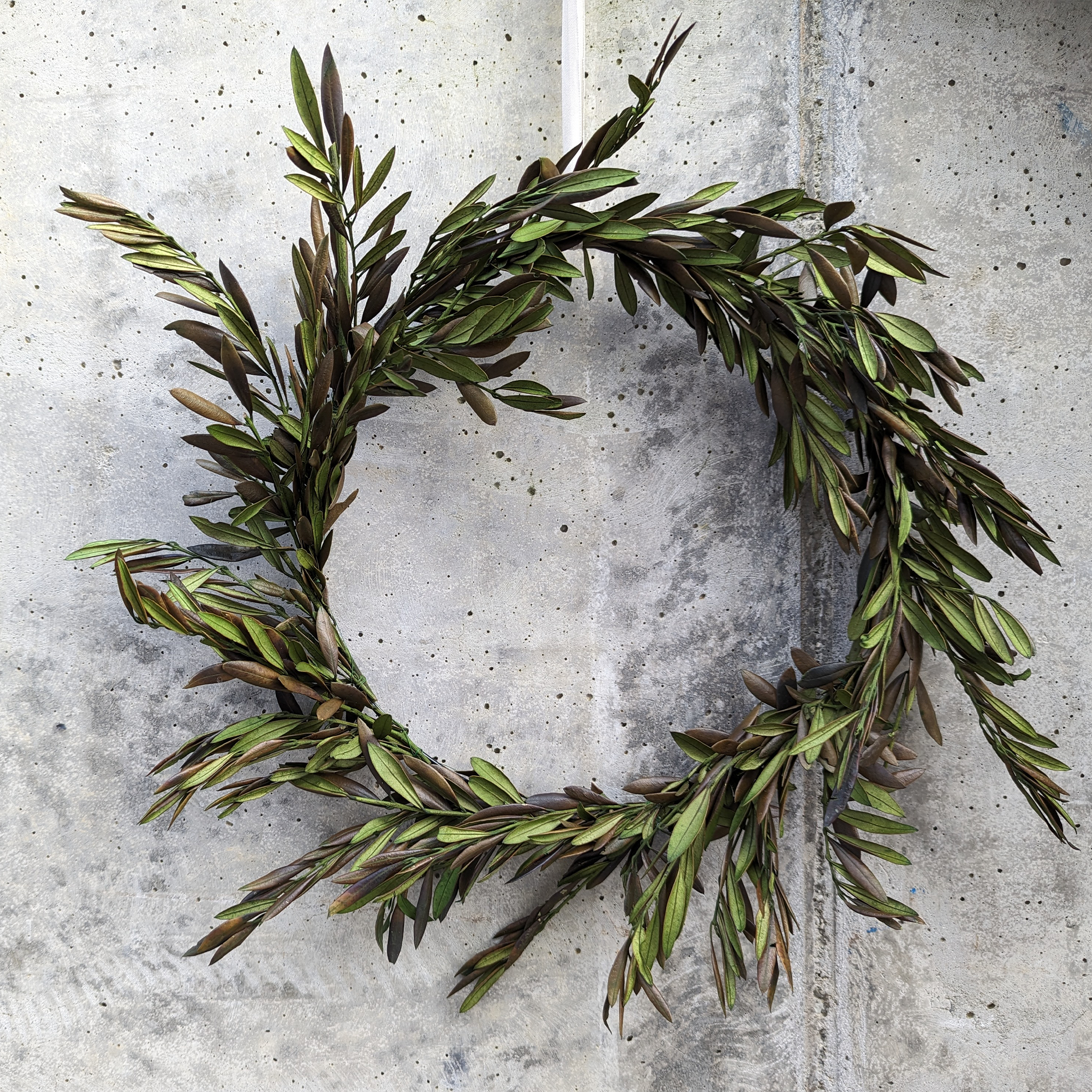 - Couronne verte minimaliste composée uniquement de feuilles et de branches comme olivier.
