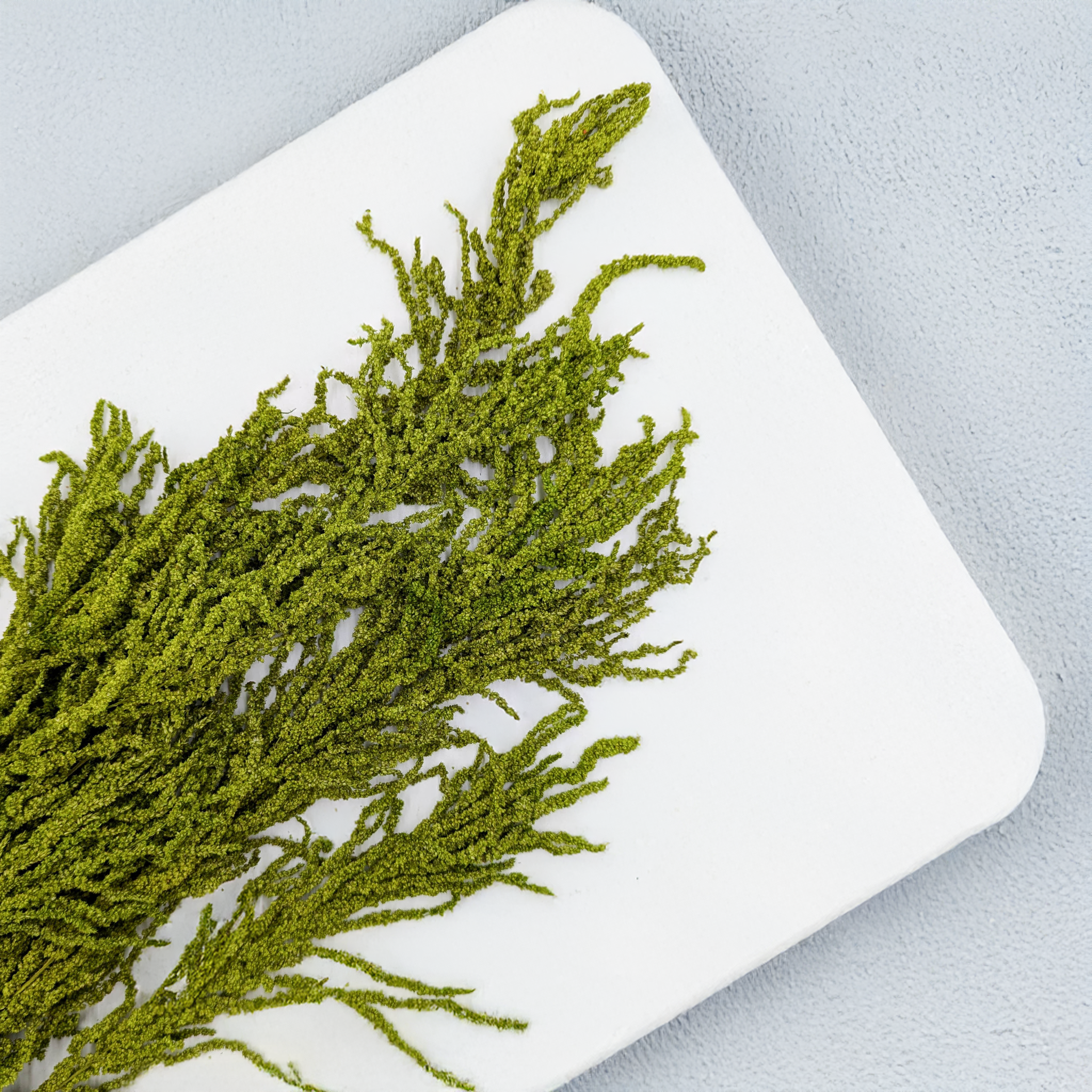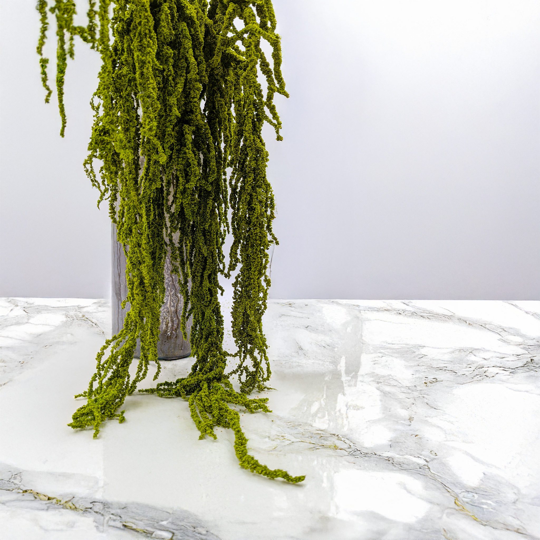 L’amarante stabilisée en vert clair offre une légèreté visuelle idéale pour les compositions naturelles. Son port retombant et sa teinte fraîche en font une plante décorative très prisée, sans entretien.