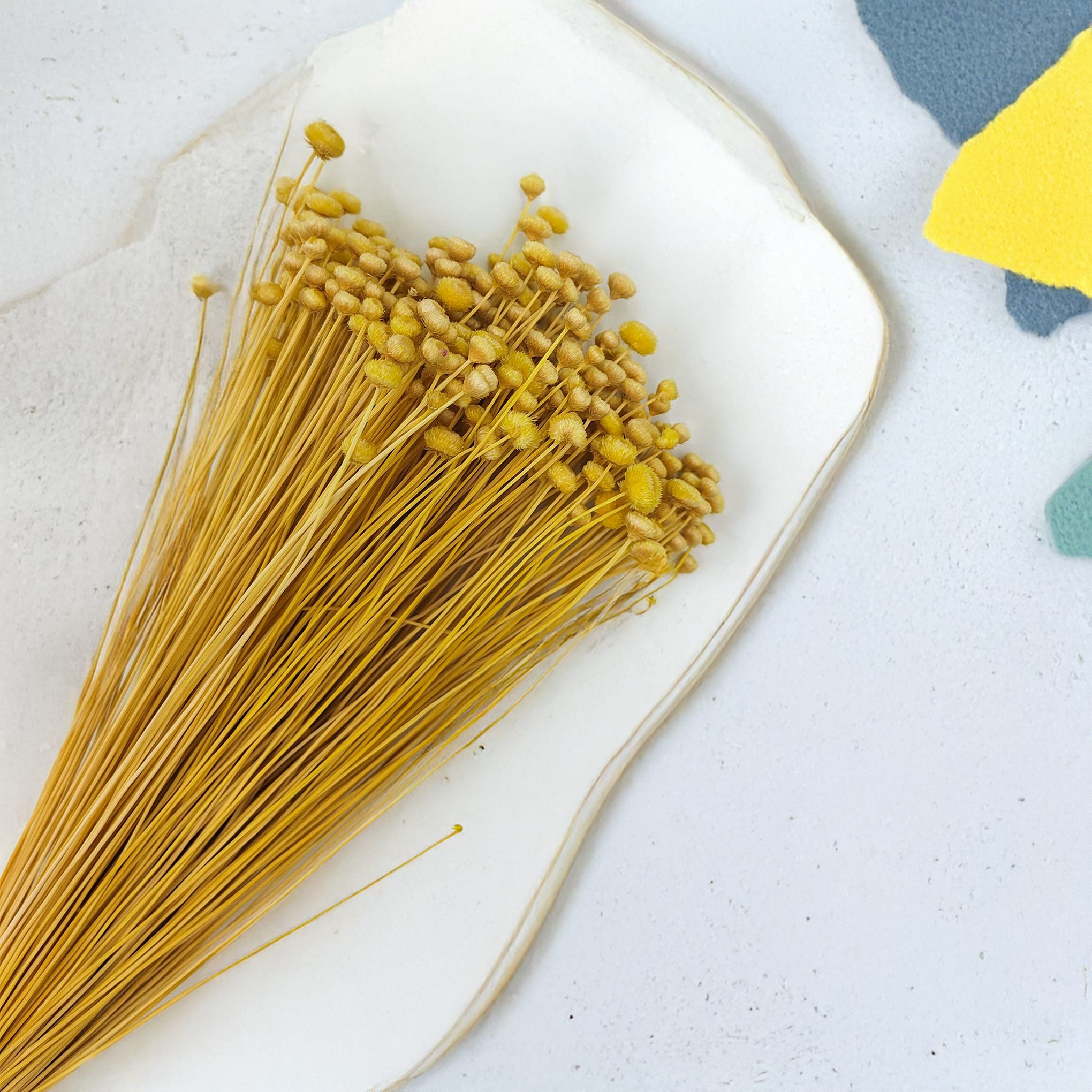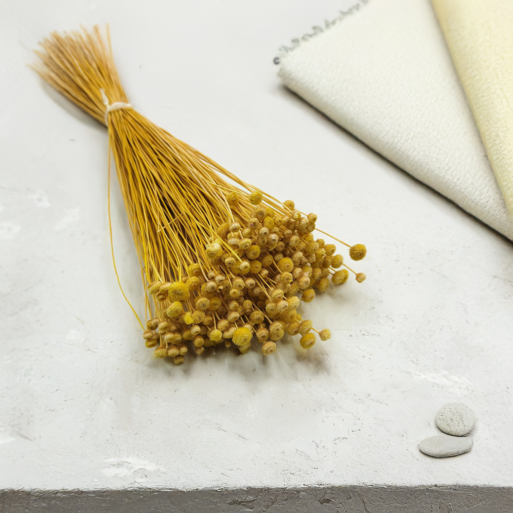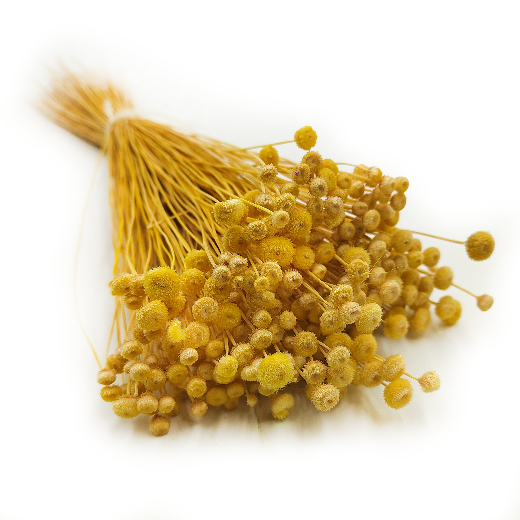 Botao Amarelino, aussi appelé Amarelinho, est une fleur séchée décorative aux têtes jaunes lumineuses. Elle apporte vitalité et bonne humeur à toutes les créations florales.