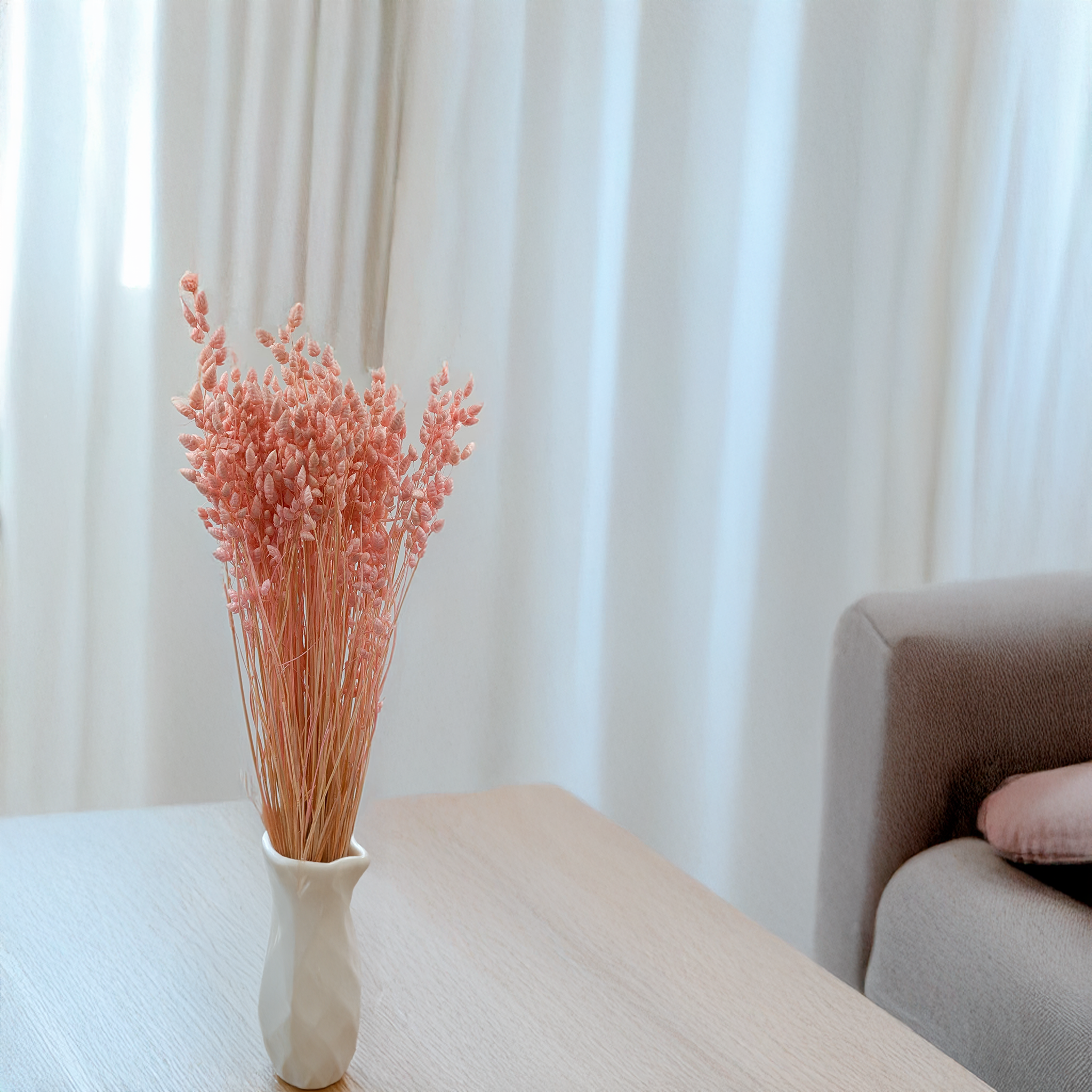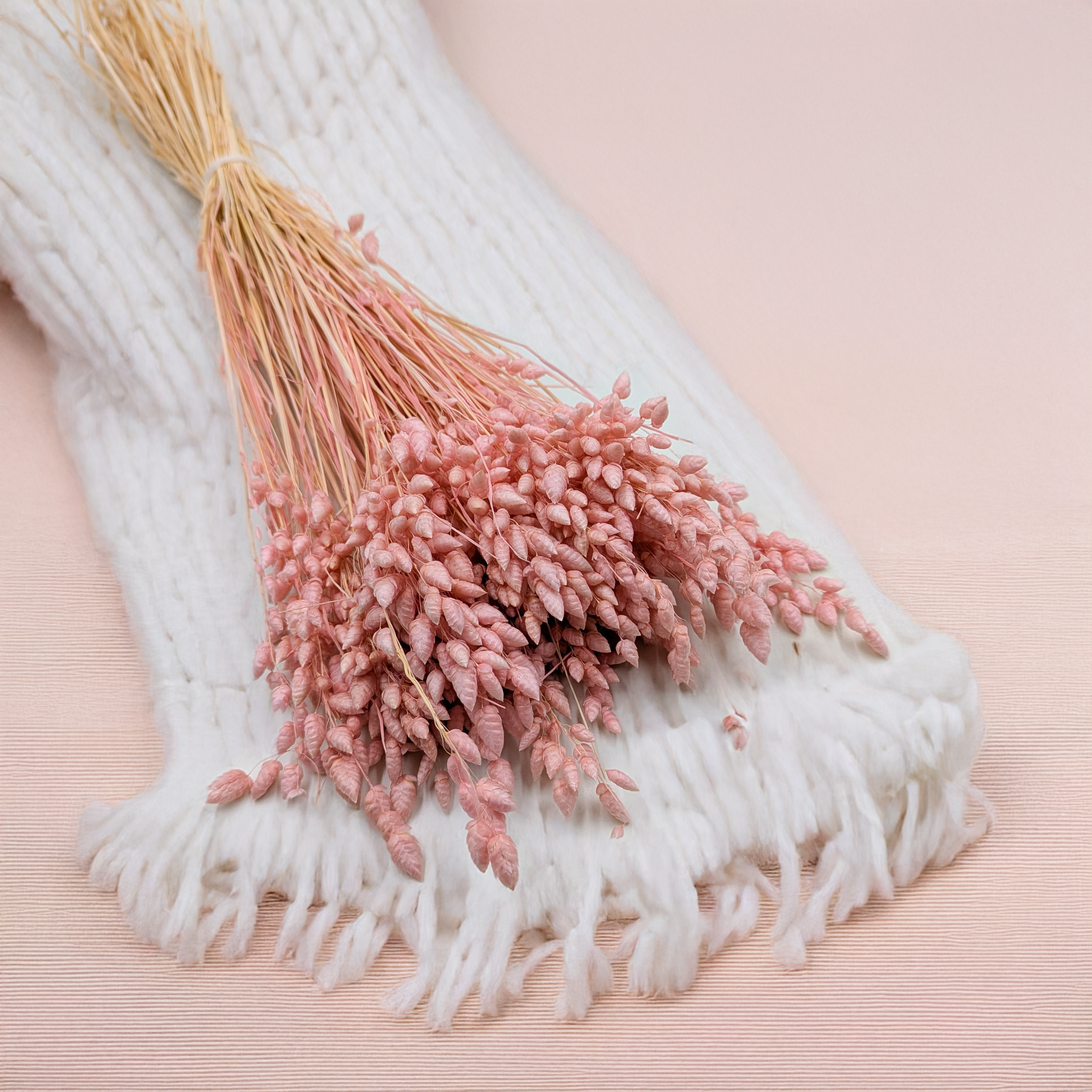 Briza Maxima séchée en rose est une herbe ornementale délicate qui apporte douceur et légèreté aux compositions florales. Ses épis mobiles ajoutent une touche romantique – idéale pour les mariages et la décoration bohème.