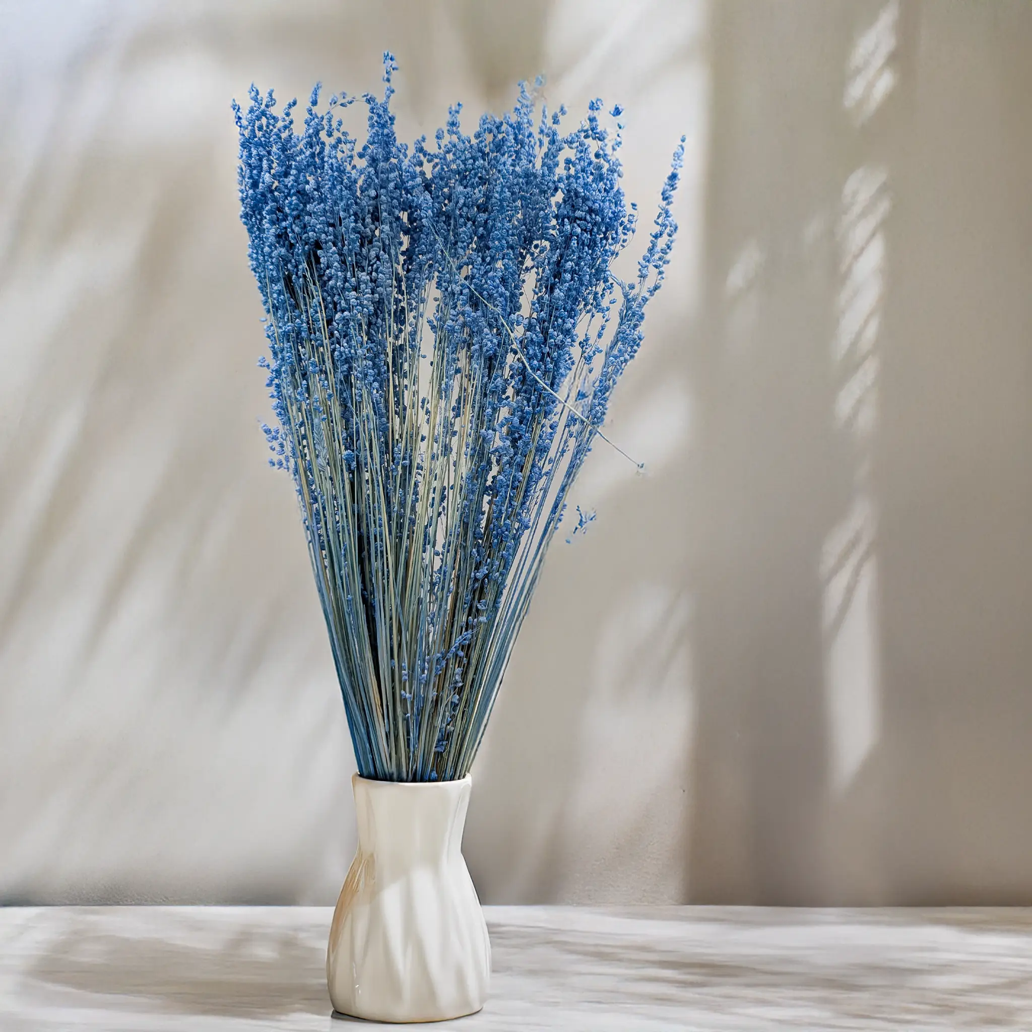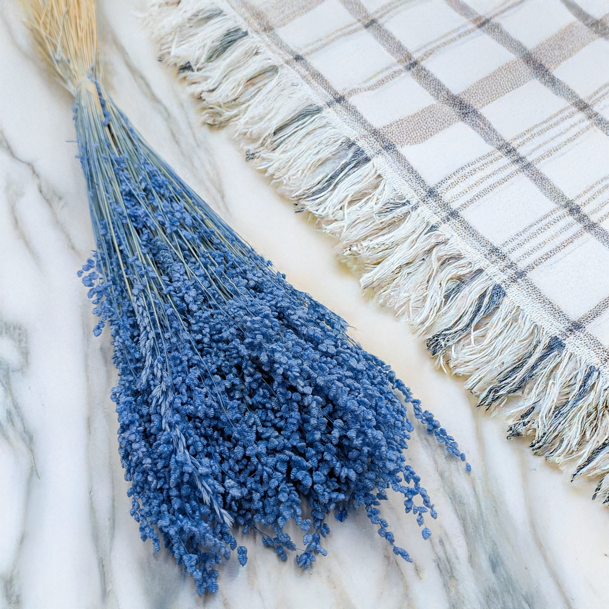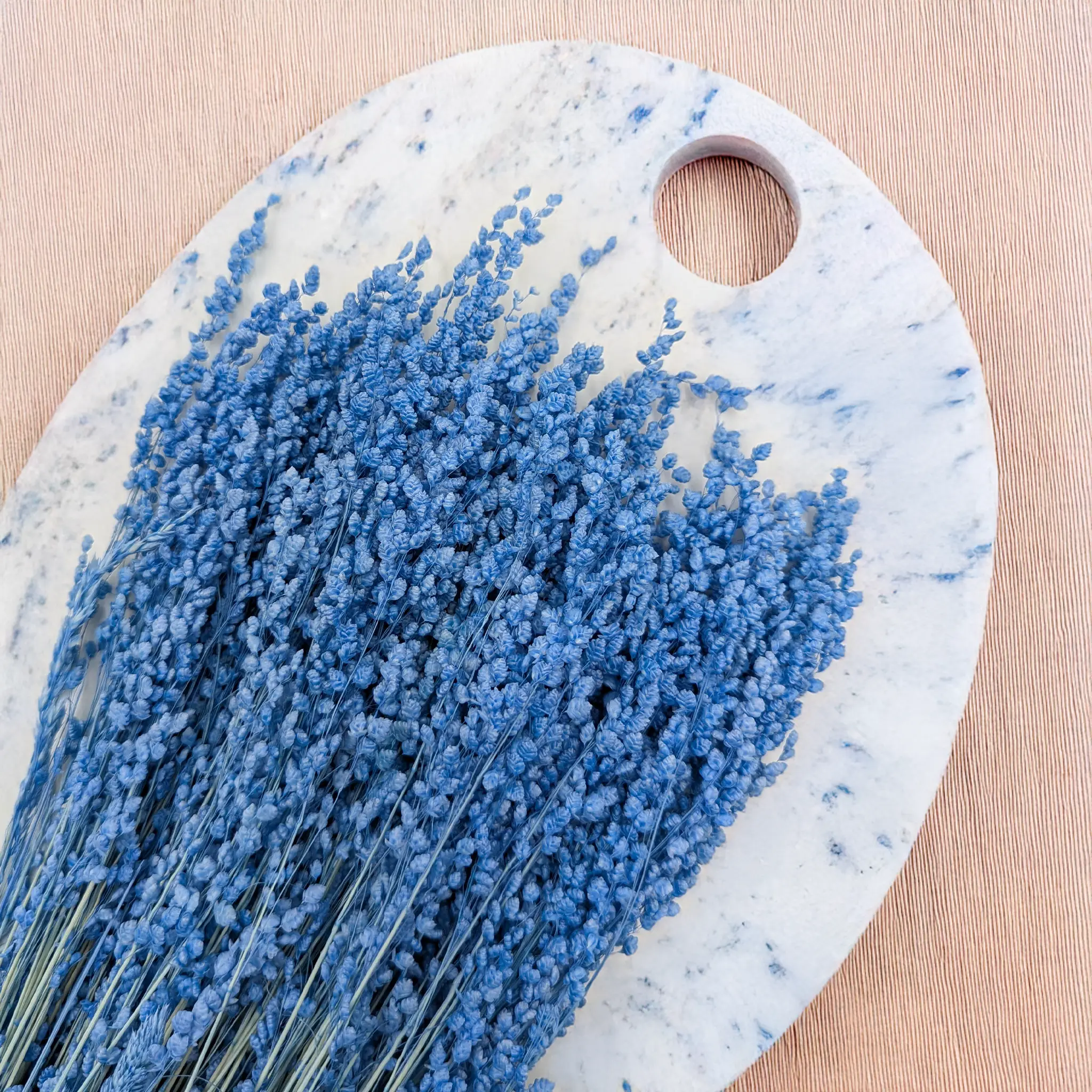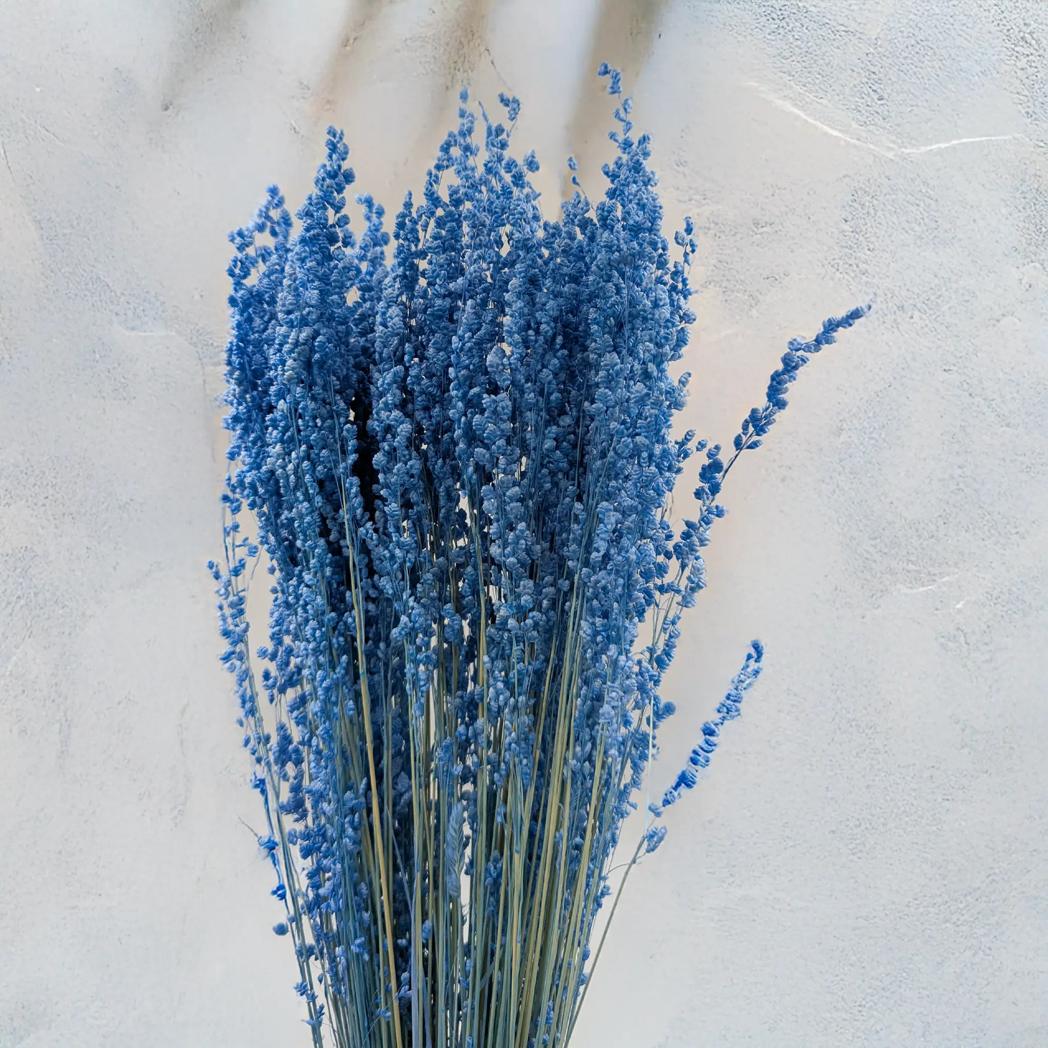 Briza minima en bleu est une herbe décorative au caractère original et contemporain. Ses petits épis « dansants » apportent du mouvement et du dynamisme aux compositions florales, sublimés par une teinte bleue intense et fraîche. Parfaite pour les créations côtières, modernes ou boho contrastées.