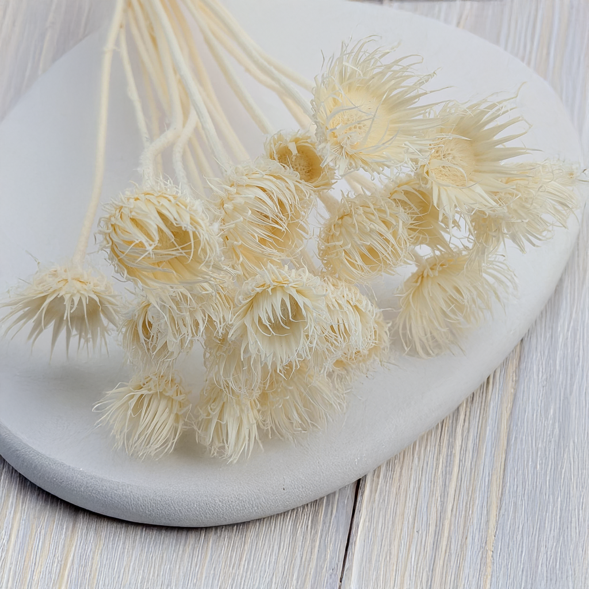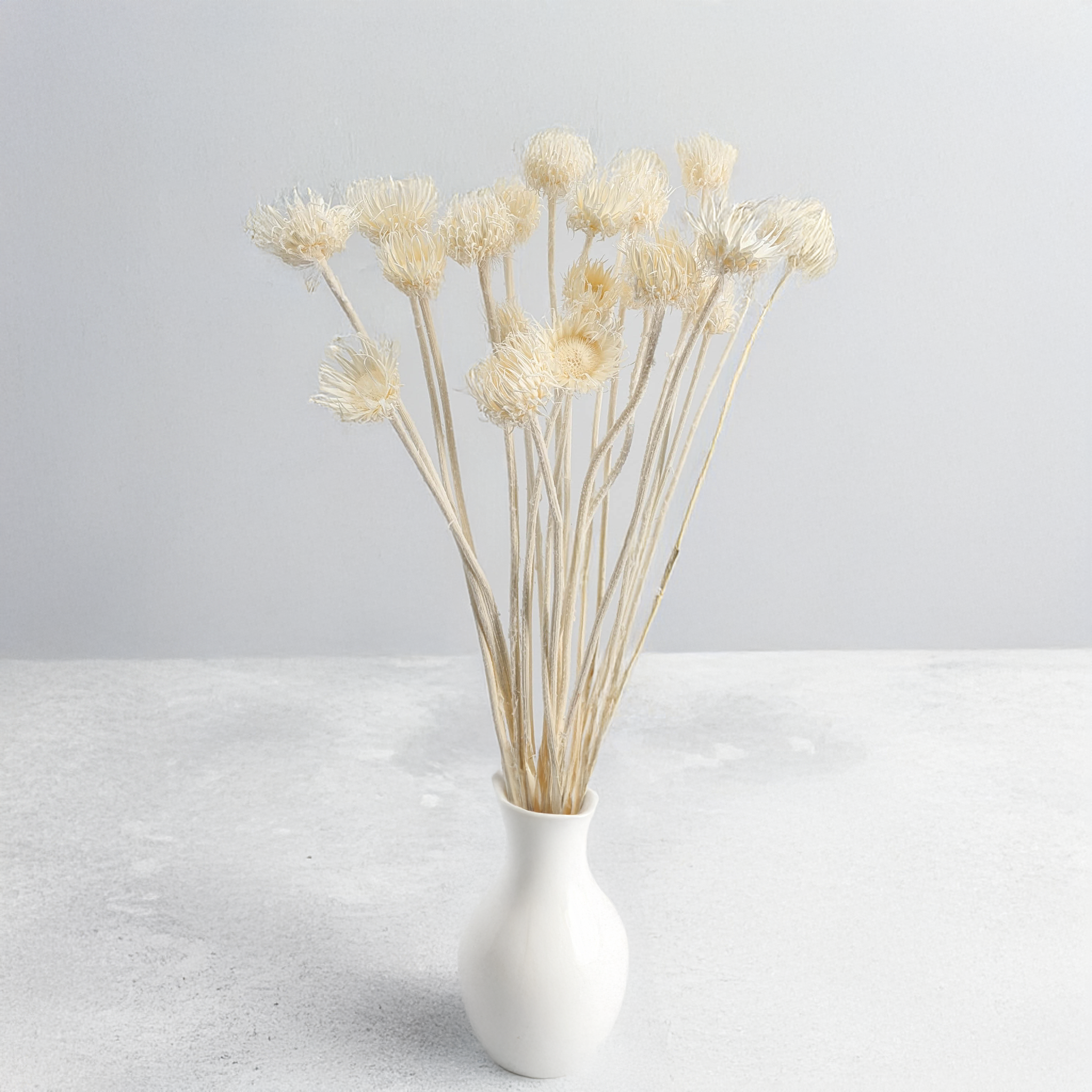Chardon des Montagnes – Blanchi est une plante séchée décorative au coloris clair et à la forme unique. Idéal pour bouquets élégants, intérieurs naturels et compositions bohèmes, rustiques ou minimalistes.