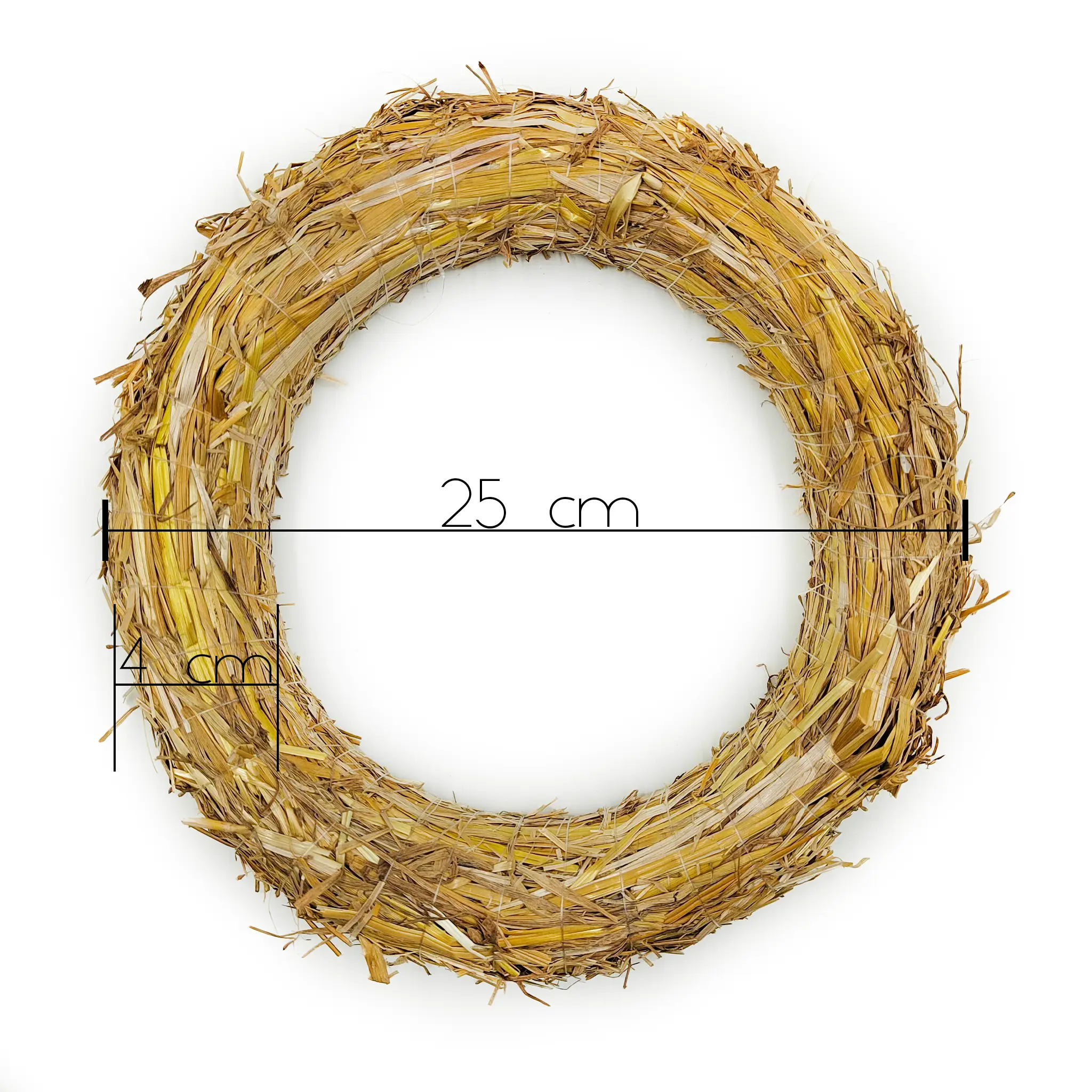 Ces couronnes en paille de 25 cm sont des bases fiables et naturelles pour créer des décorations florales et saisonnières. Chaque couronne est solidement ficelée pour garantir sa forme et empêcher la paille de tomber.
