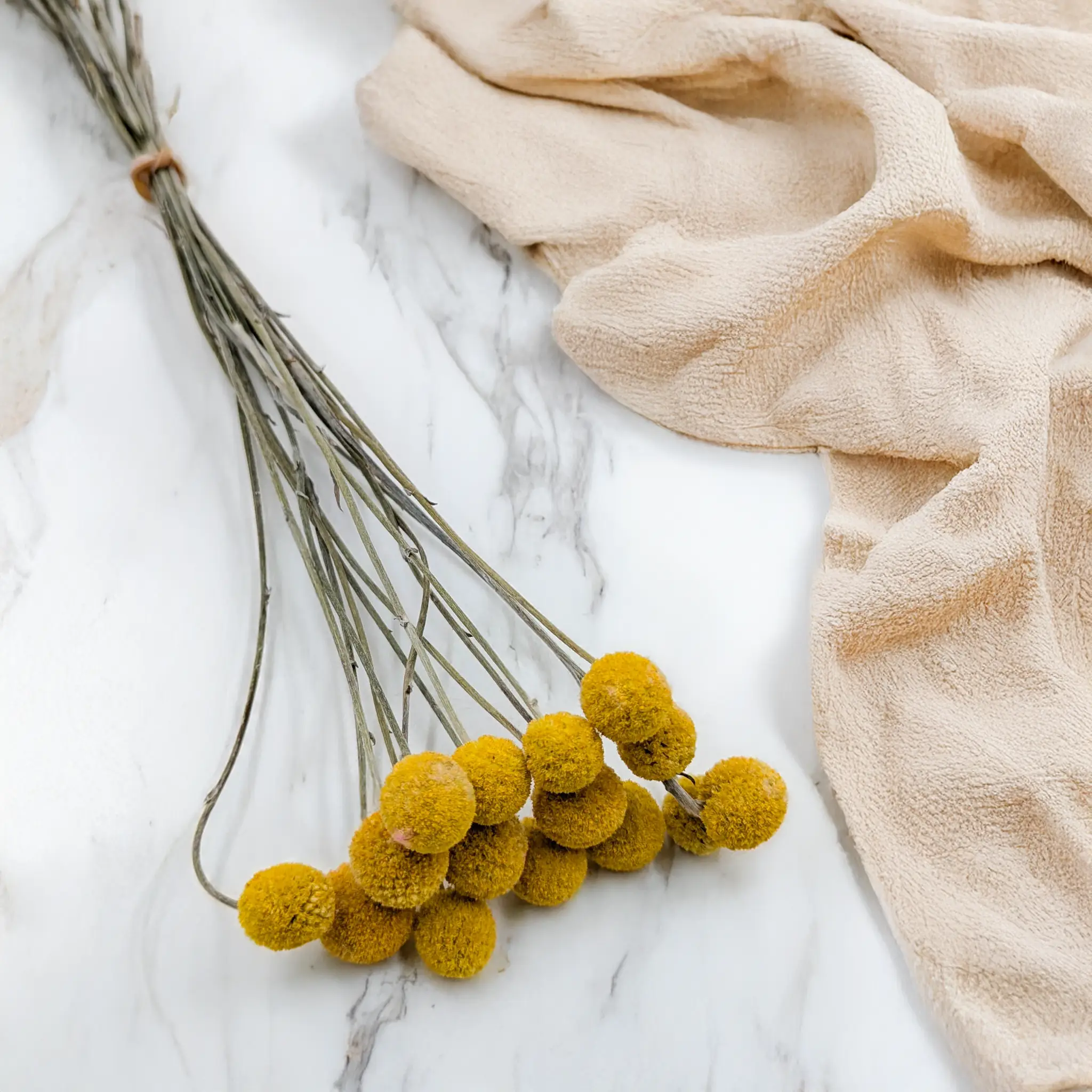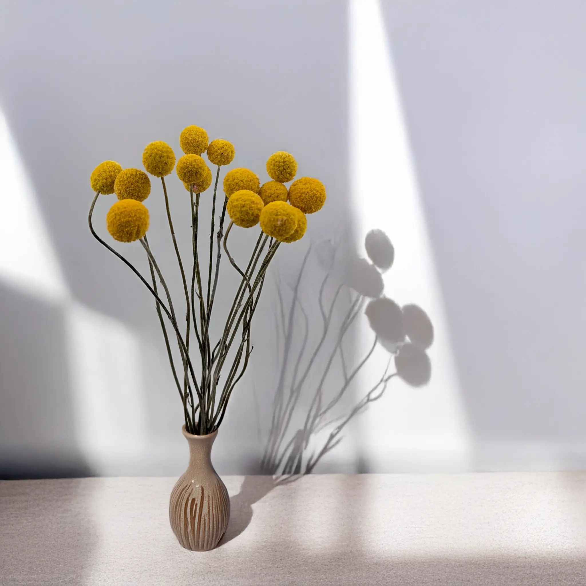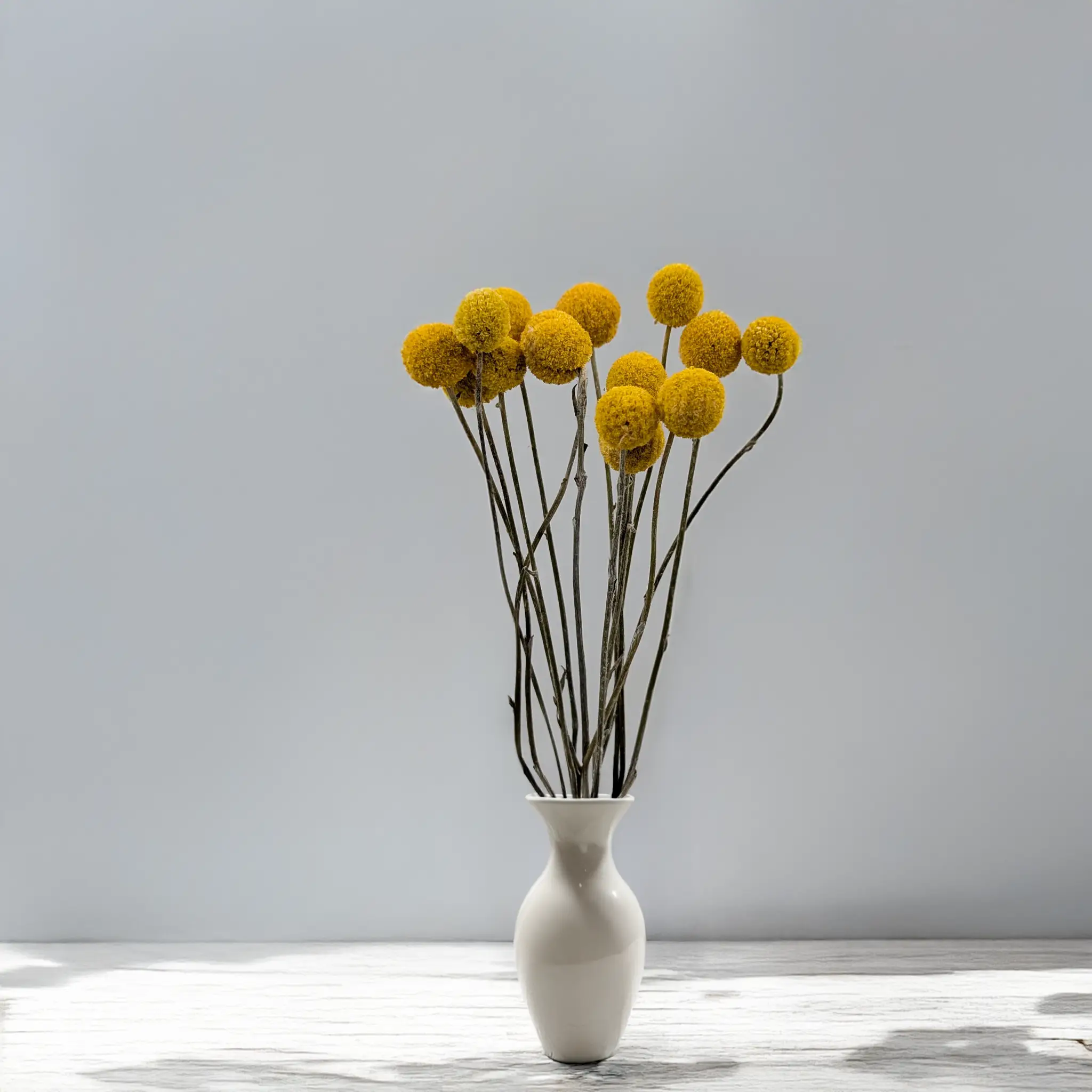 Avec sa forme géométrique et sa couleur solaire, la Craspédia séchée attire immédiatement le regard et ajoute de la modernité à tout espace.