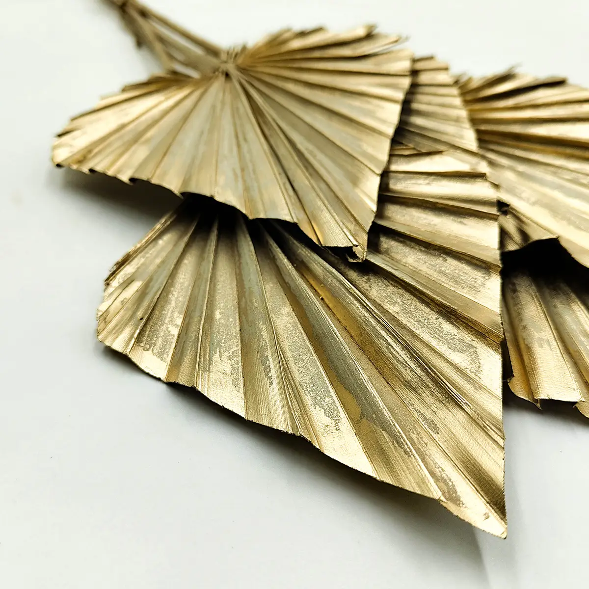 Les feuilles de palmier coupées palm spear en couleur dorée, également appelées « éventail » ou « flèche de palmier », sont proposées en bouquets de 5 feuilles. Leur utilisation la plus courante concerne la décoration de gâteaux, la création de compositions florales séchées ou encore la réalisation de couronnes et arrangements décoratifs.