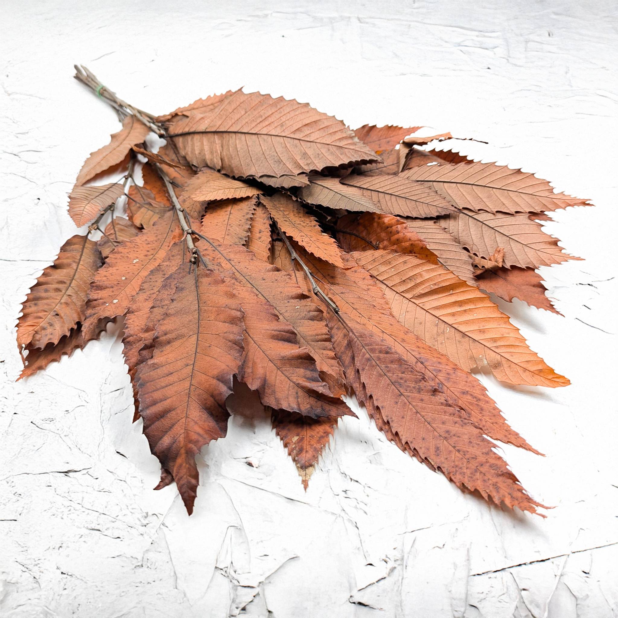 Les feuilles de châtaignier stabilisées offrent une touche authentique et chaleureuse à vos décorations florales. Issues du Castanea sativa, elles ont été stabilisées pour conserver leur texture, leur couleur et leur souplesse naturelle sans entretien.