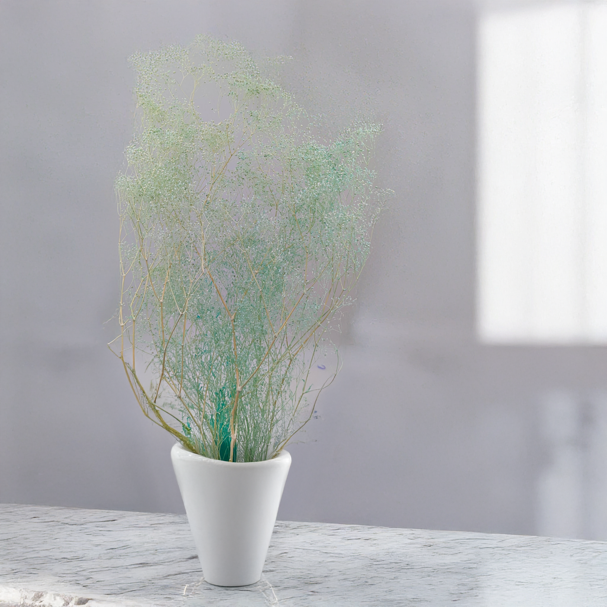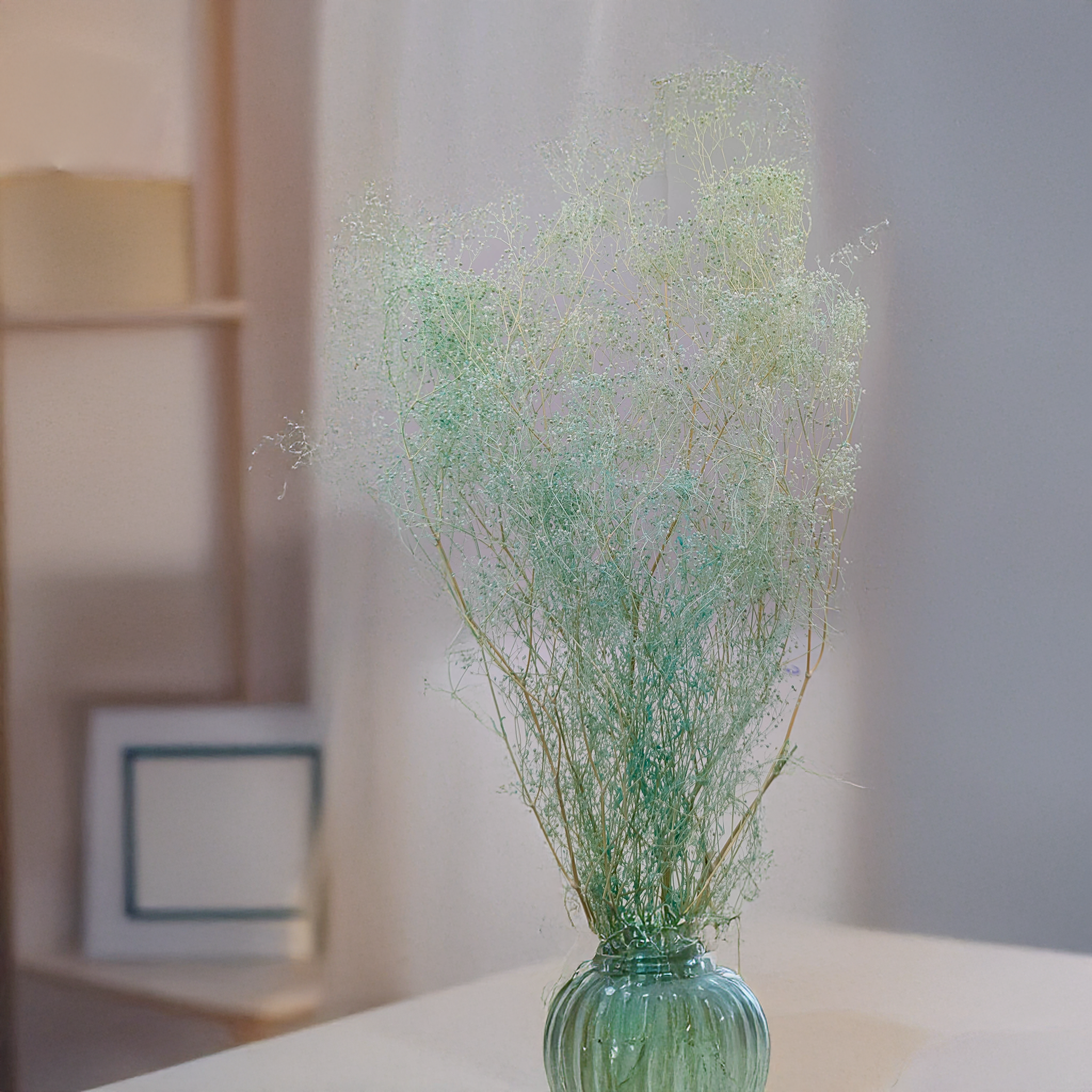 La gypsophile stabilisée MINI en menthe est une touche pastel et apaisante qui illumine vos compositions florales et décorations intérieures. Idéale pour des ambiances scandinaves, bohèmes ou épurées.
