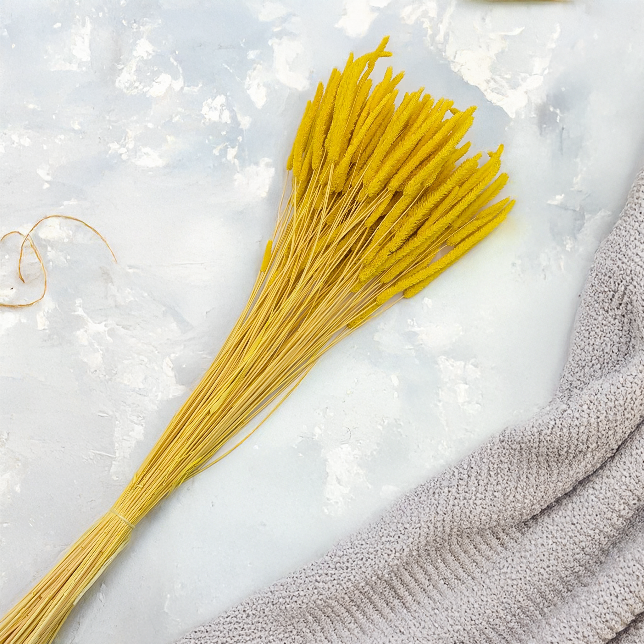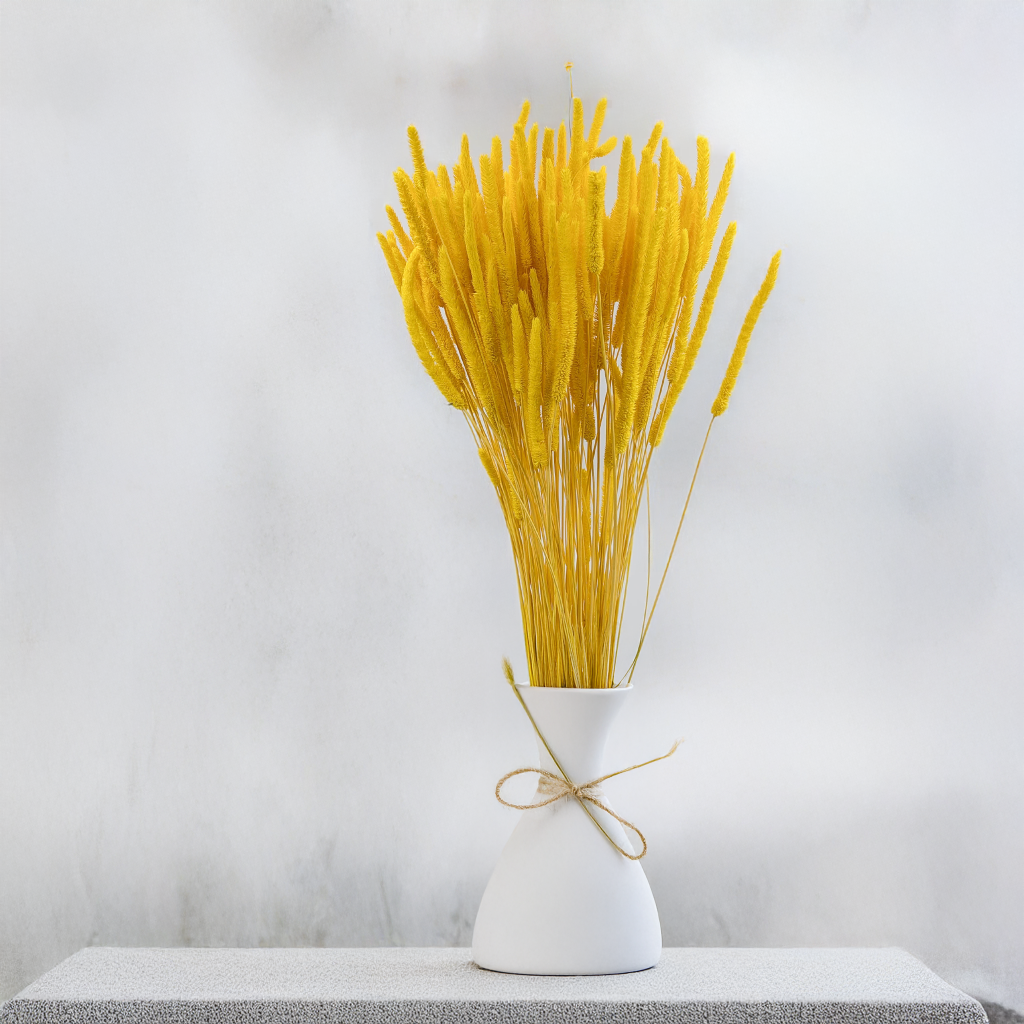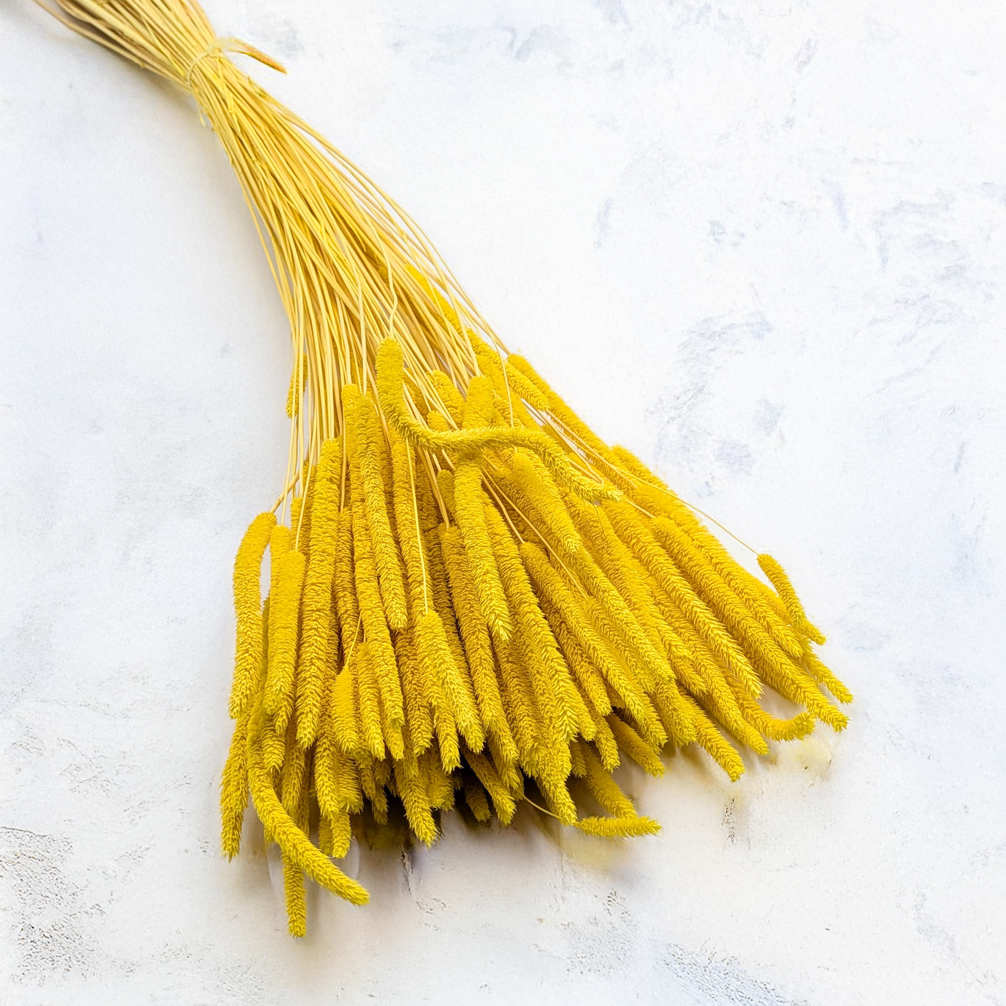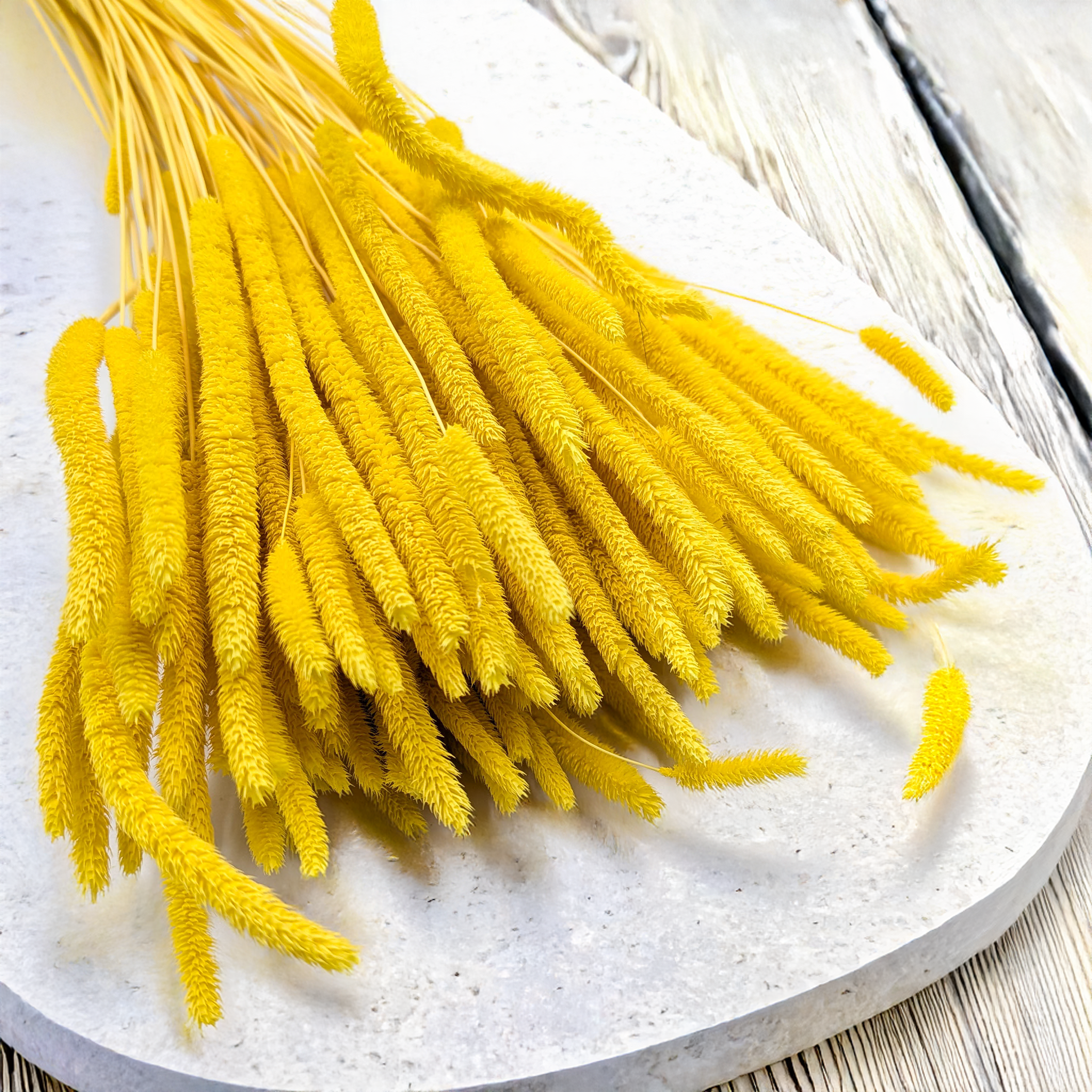 La fléole jaune s’accorde parfaitement avec le blanc, le crème, les tons beiges naturels et les graminées vertes. Elle peut être utilisée comme élément central ou comme touche lumineuse dans des compositions saisonnières.