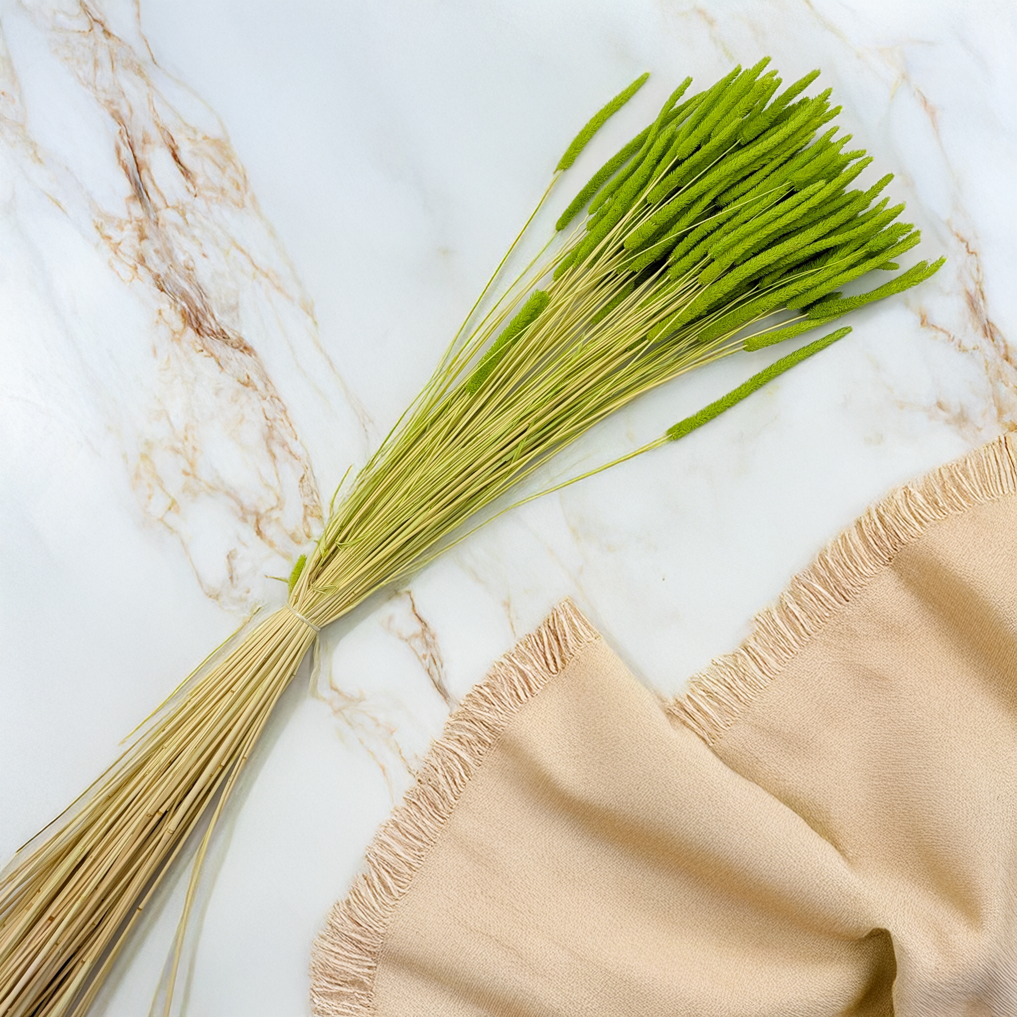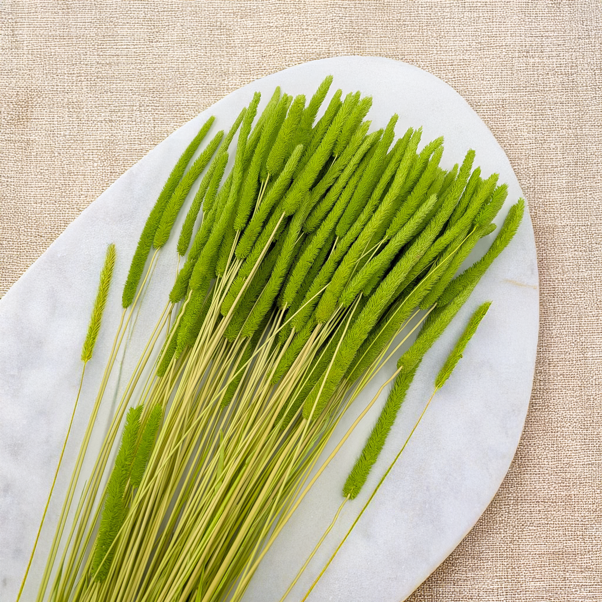 La fléole séchée de couleur vert clair est un accent décoratif frais et naturel qui apporte légèreté, sérénité et élégance discrète aux compositions florales. Ses épis fins et élancés créent une forme harmonieuse inspirée de la nature, idéale pour des décorations lumineuses et aériennes.