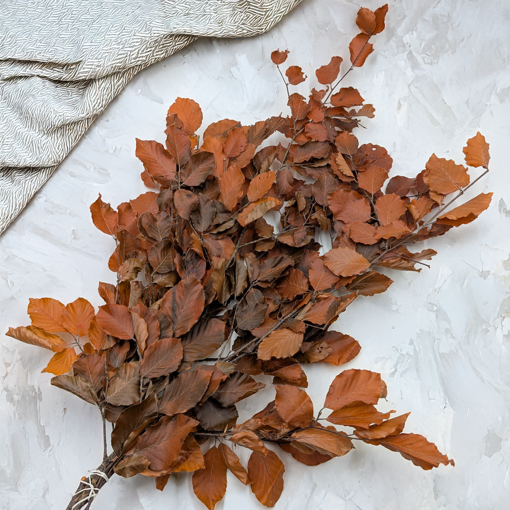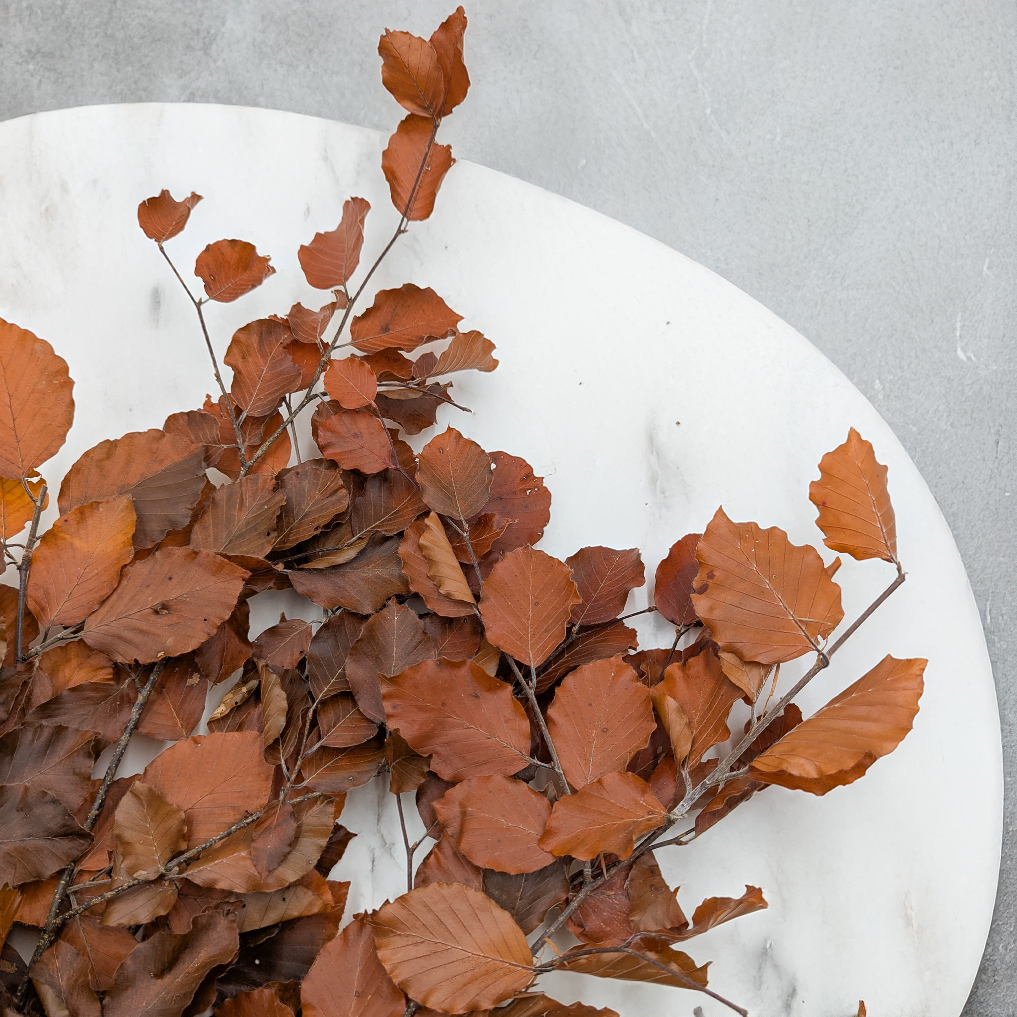 Le hêtre stabilisé de couleur orange est un accent naturel et élégant pour les compositions florales. Sa teinte douce et légèrement atténuée apporte chaleur et harmonie aux intérieurs, parfait pour les décors automnaux et rustiques.