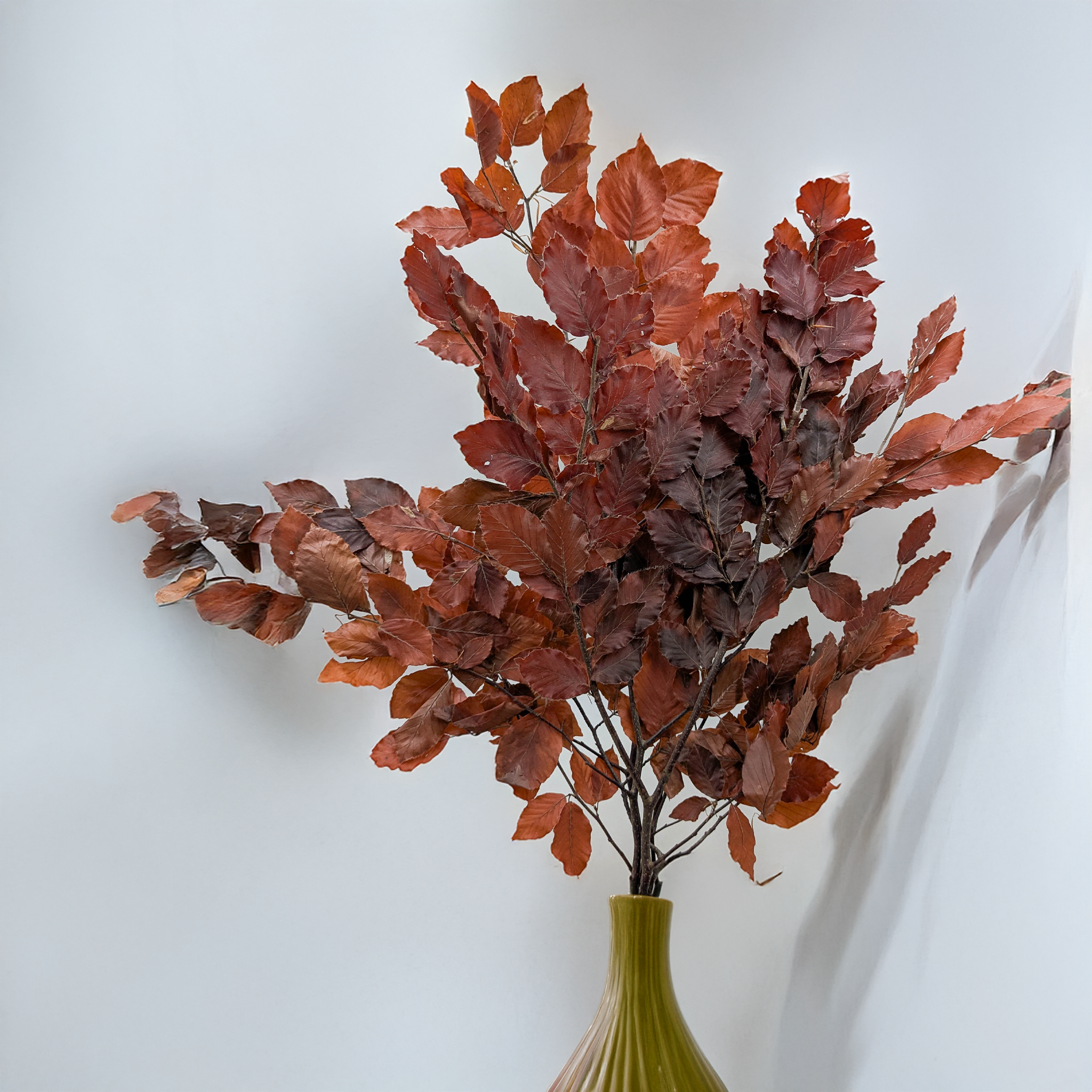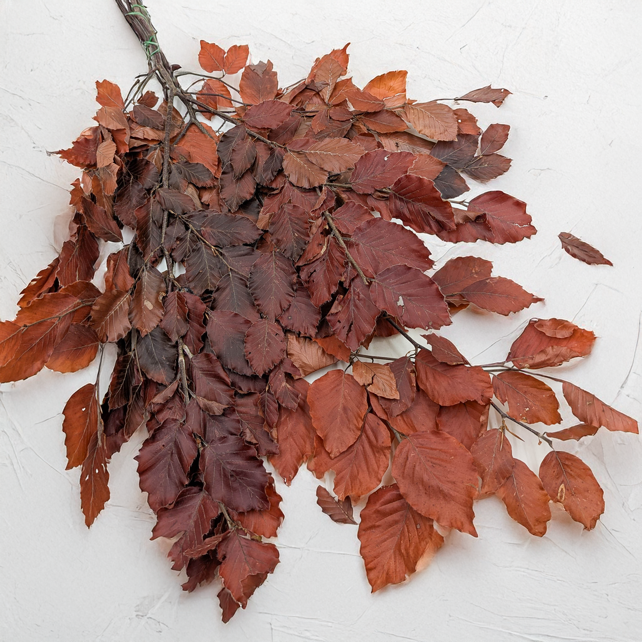 Le hêtre stabilisé rouge automnal est un feuillage décoratif d’exception, teinté dans une nuance chaude qui évoque l’élégance et la douceur de l’automne. Grâce au processus de stabilisation, les branches conservent leur apparence naturelle pendant de nombreux mois sans entretien. La couleur rouge automnal symbolise la transformation, la chaleur et l’émotion – parfaite pour des créations florales riches et expressives.