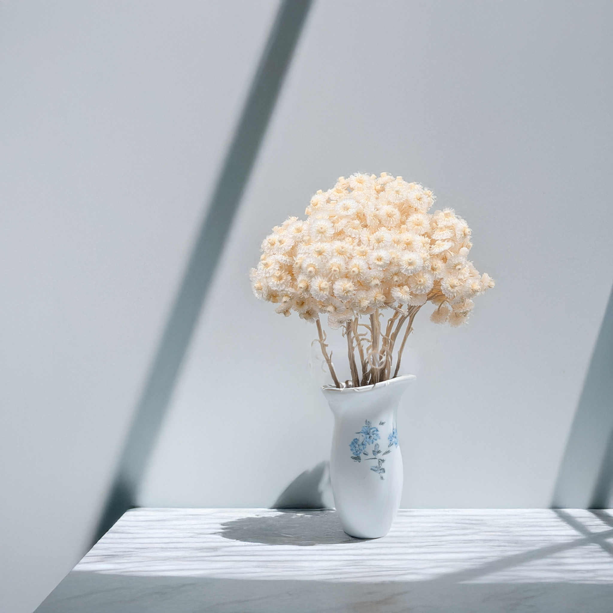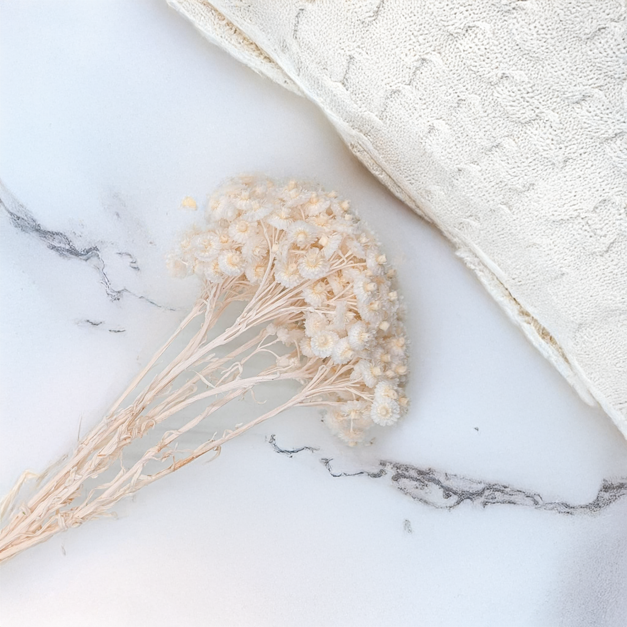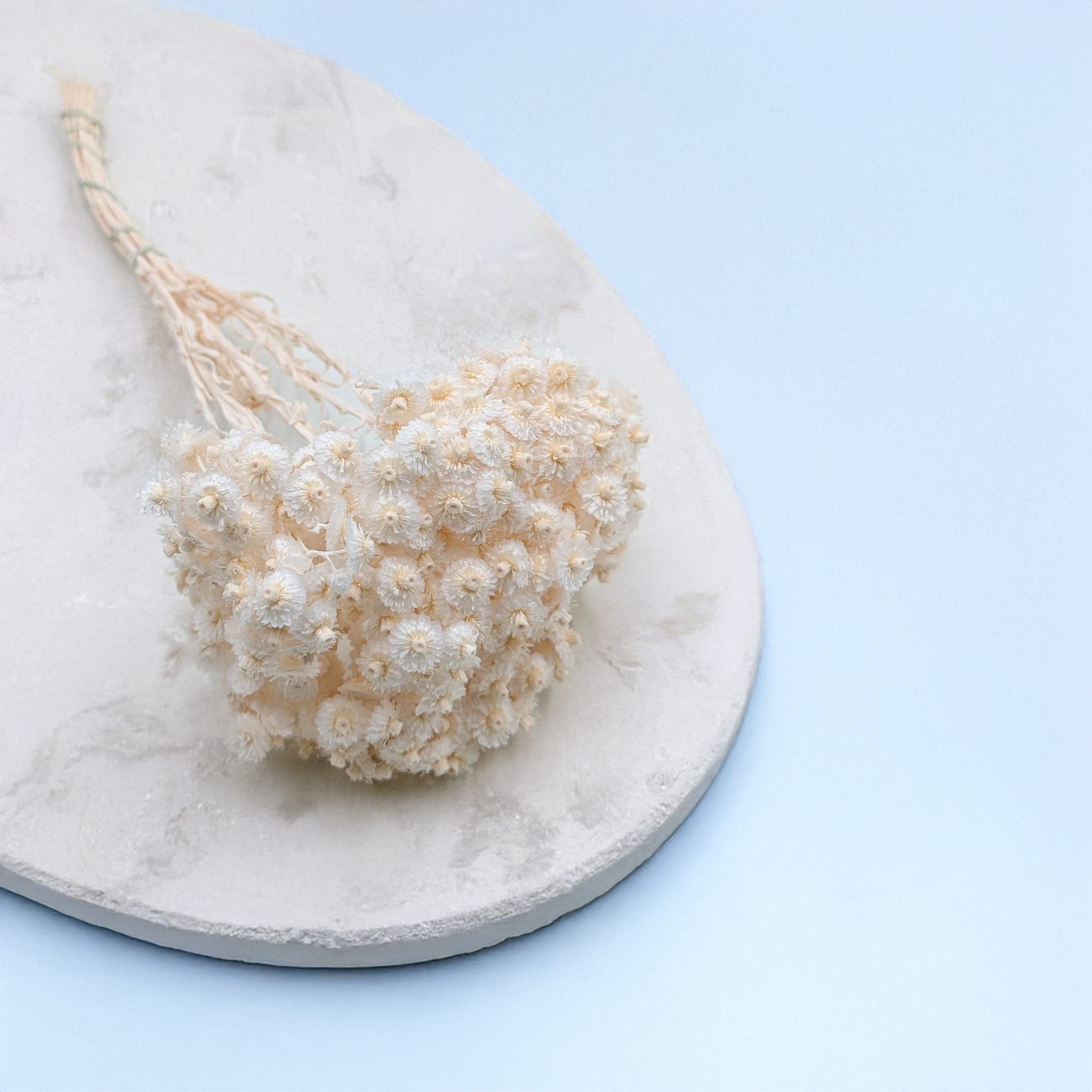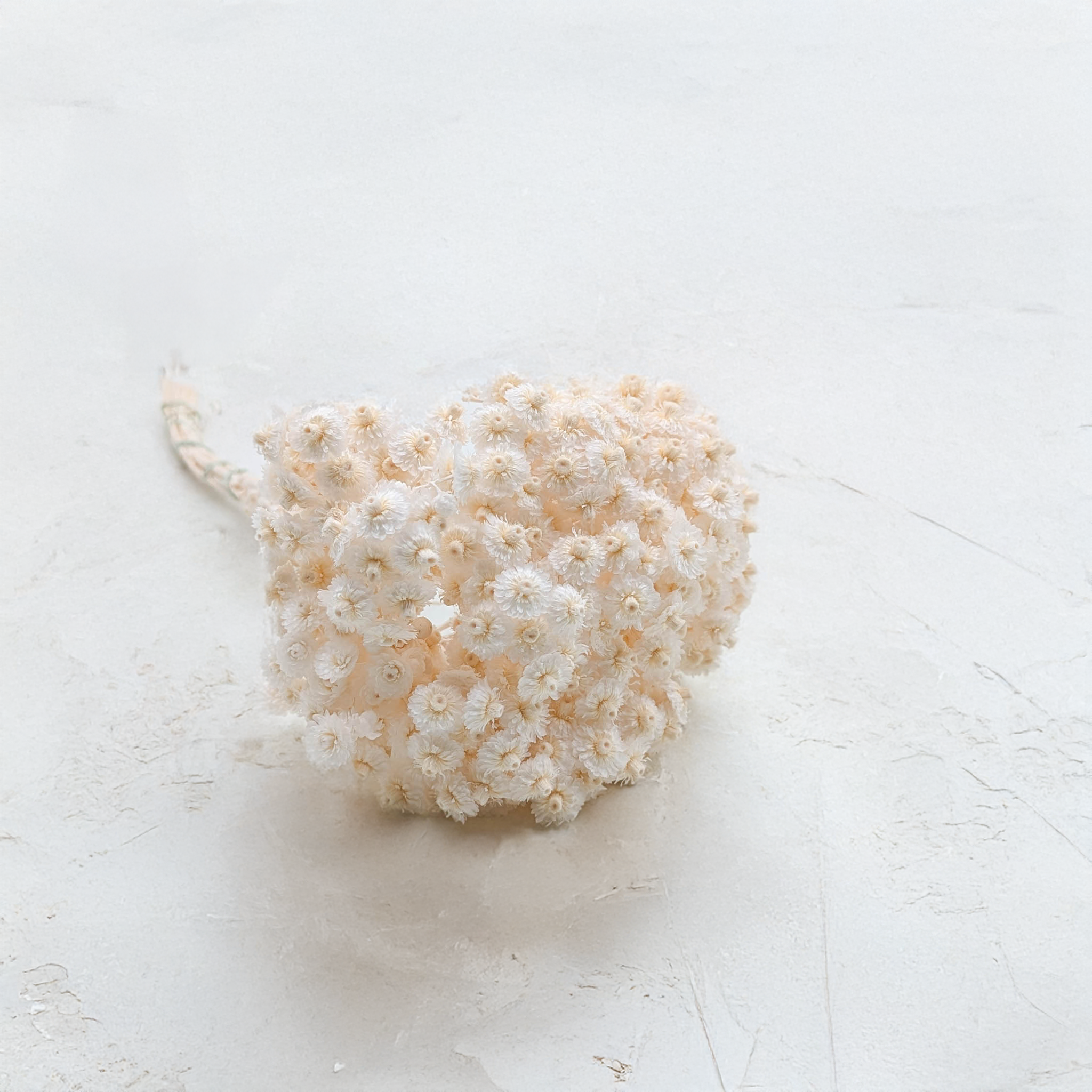 L’immortelle italienne blanchie est une fleur séchée raffinée au charme discret. Son ton blanc doux et mat souligne sa texture naturelle et s’intègre parfaitement dans des compositions florales épurées, bohèmes ou de mariage.