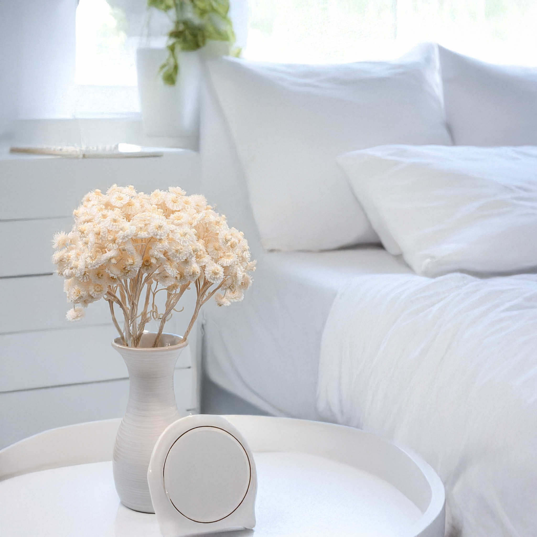 Elle symbolise la pureté, la paix et la fraîcheur, ce qui en fait un excellent choix pour les projets floraux de longue durée. Idéale pour les bouquets faits main, les décorations minimalistes ou les cadeaux naturels et élégants.