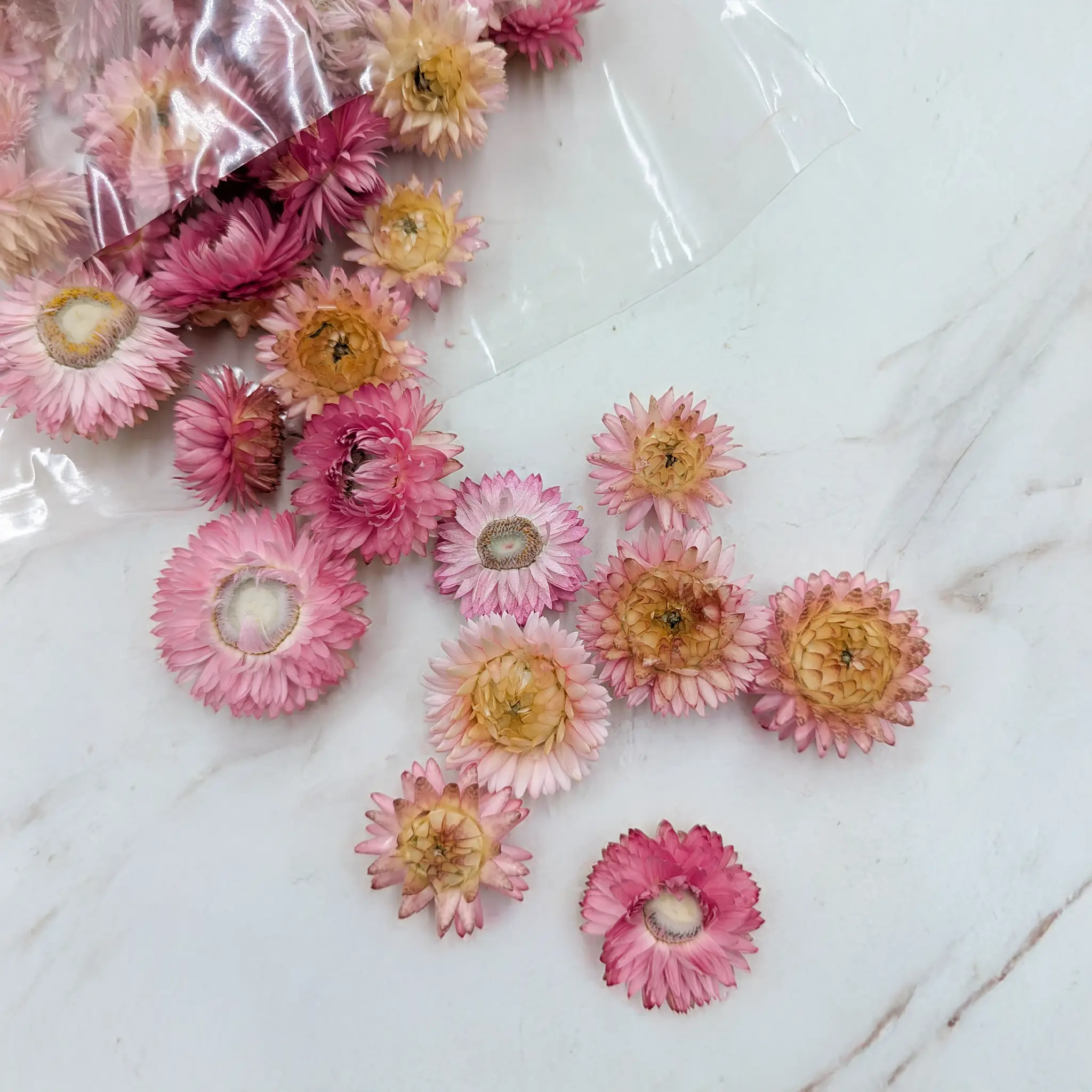 Les têtes d’immortelles séchées en nuances de rose foncé sont idéales pour les esprits créatifs à la recherche de matériaux naturels pour la décoration et le bricolage.