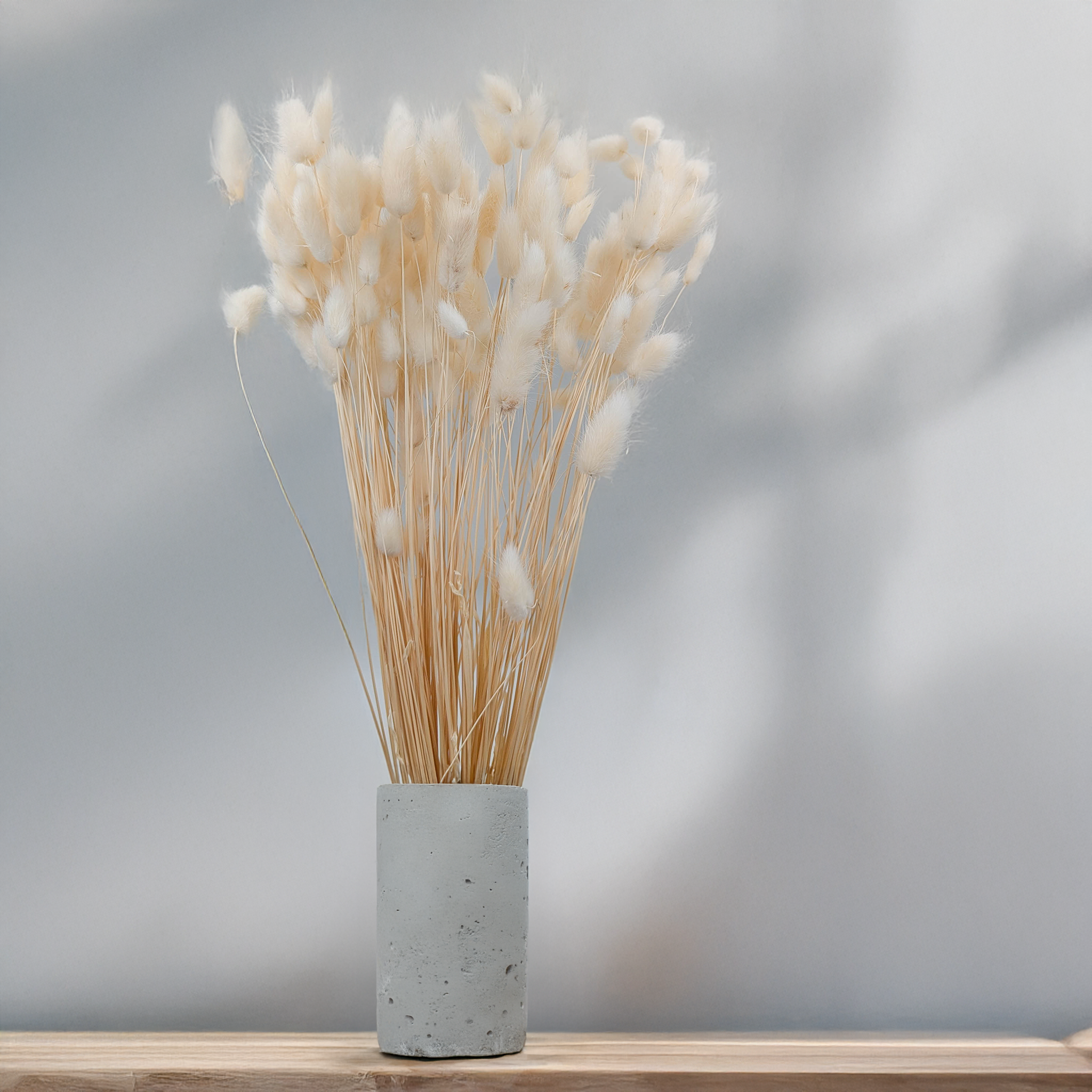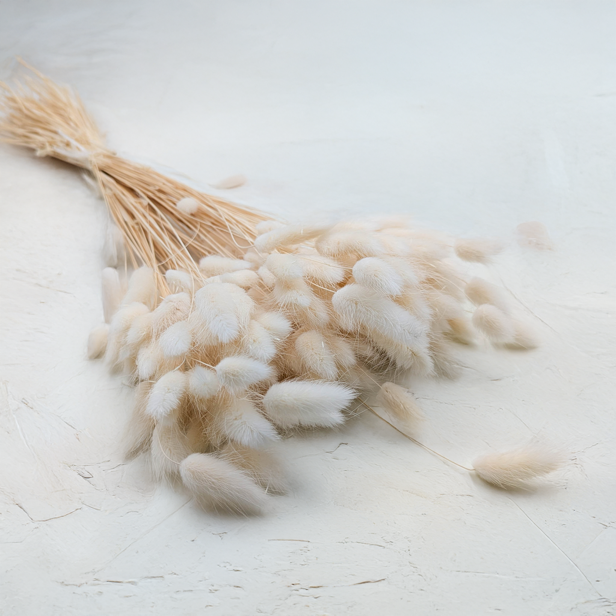 Le Lagurus séché biscuit blanchi, également appelé queue-de-lièvre, se distingue par sa teinte chaleureuse, crème-beige. Cette couleur subtile symbolise la douceur, la nature et l’harmonie. Idéal pour les compositions aux tons neutres dans des styles boho, scandinave ou japandi. Le blanchiment garantit une couleur uniforme, claire et durable, tandis que les épis duveteux conservent leur charme pendant de longs mois.