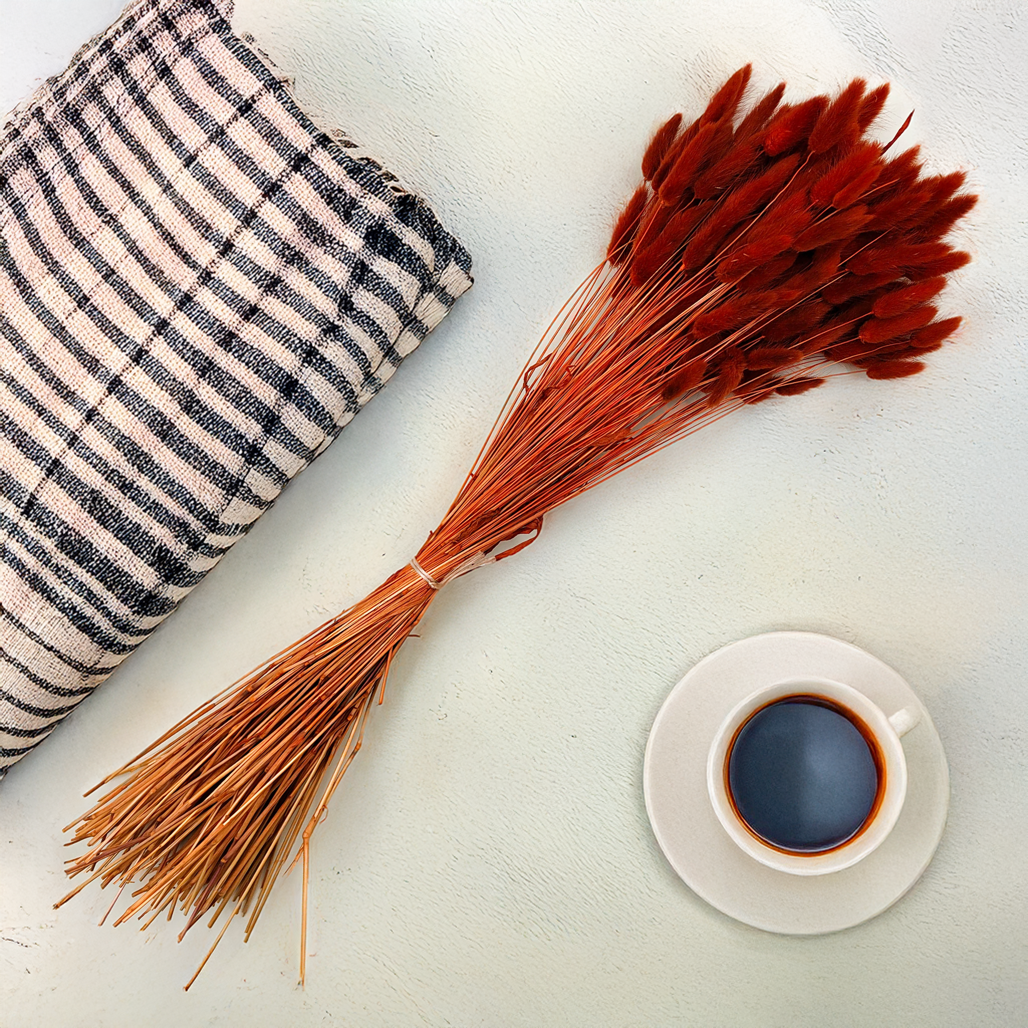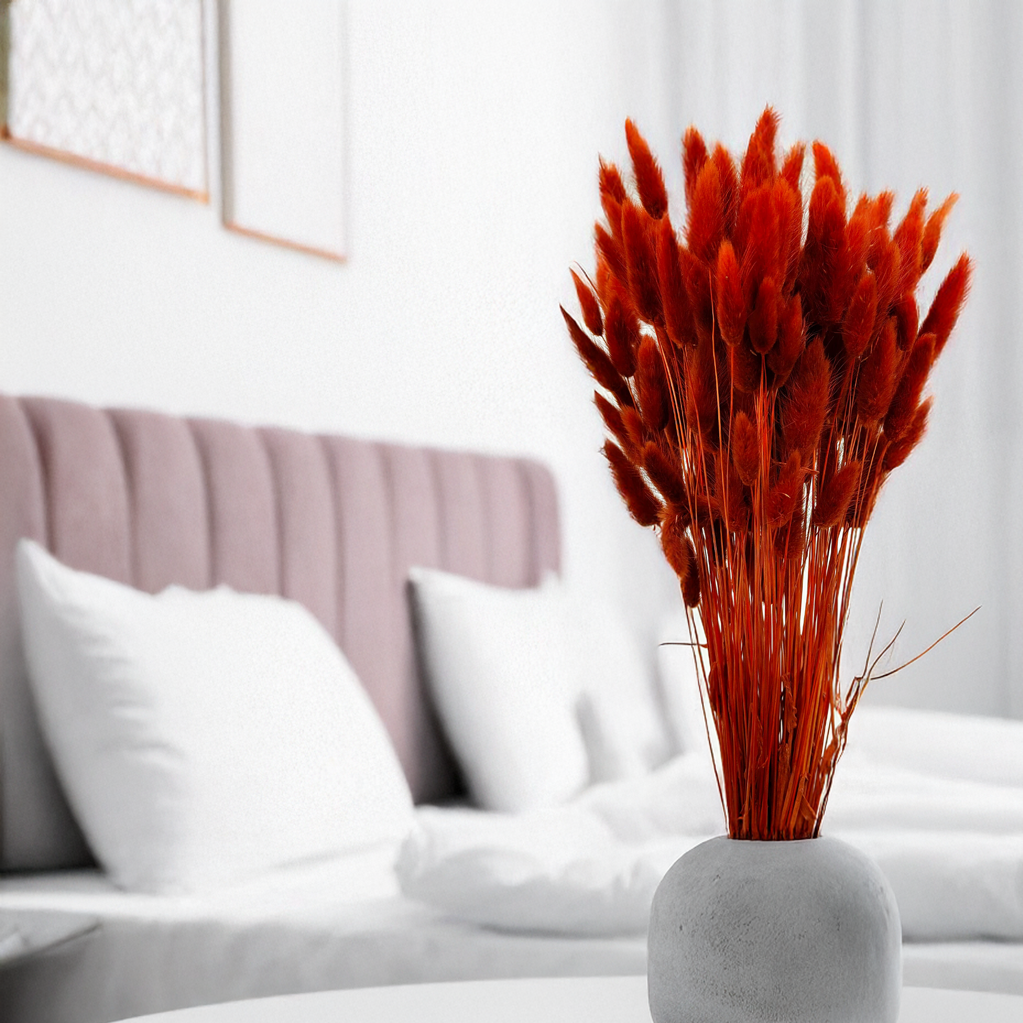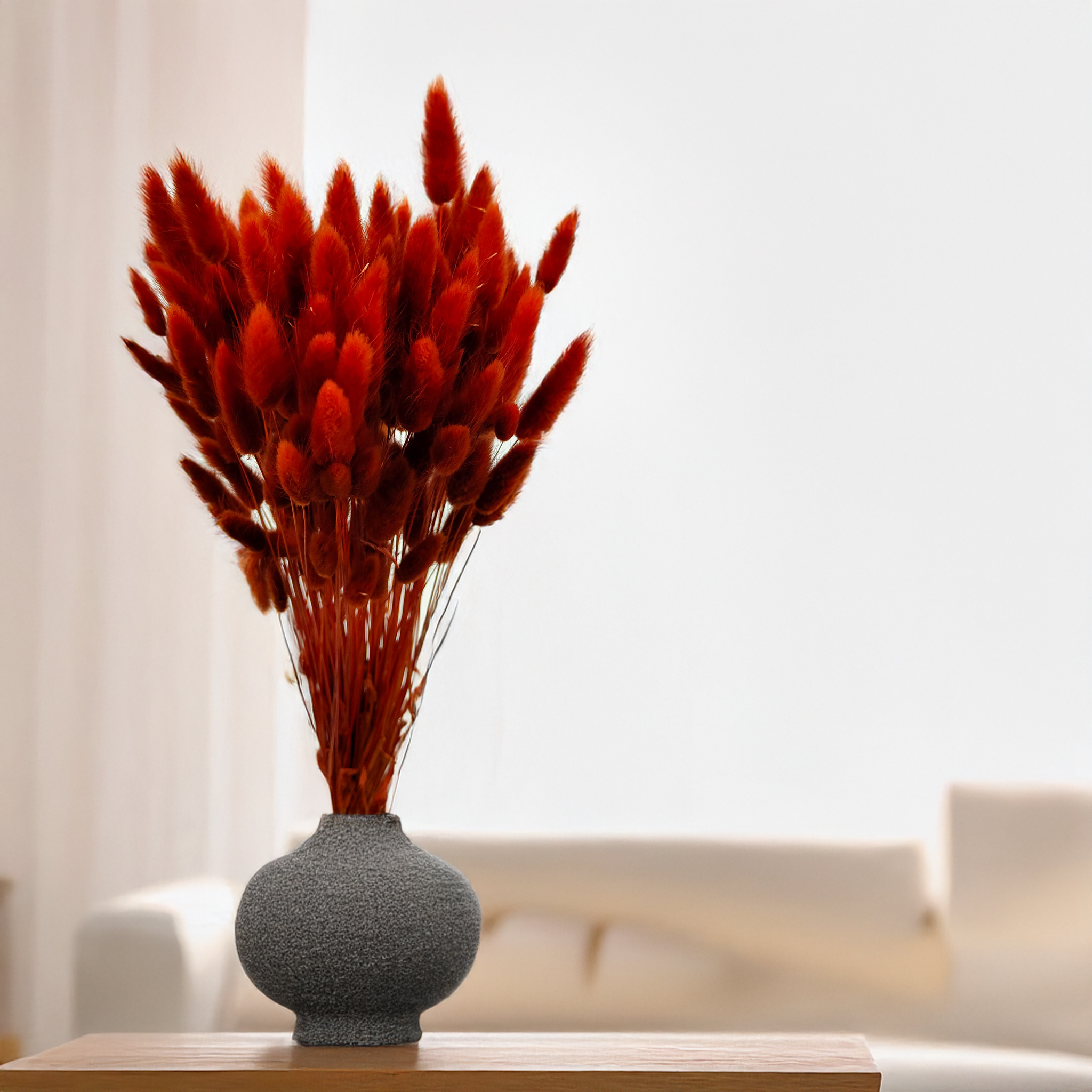 Le Lagurus séché brun (Queue-de-lièvre) est une décoration chaleureuse et terreuse, idéale pour les intérieurs de style rustique, bohème ou scandinave. La couleur brune évoque la nature, la stabilité et la sécurité – elle s’accorde parfaitement avec le bois, le lin et les matériaux naturels. C’est un choix polyvalent pour des compositions sobres, élégantes et minimalistes.
