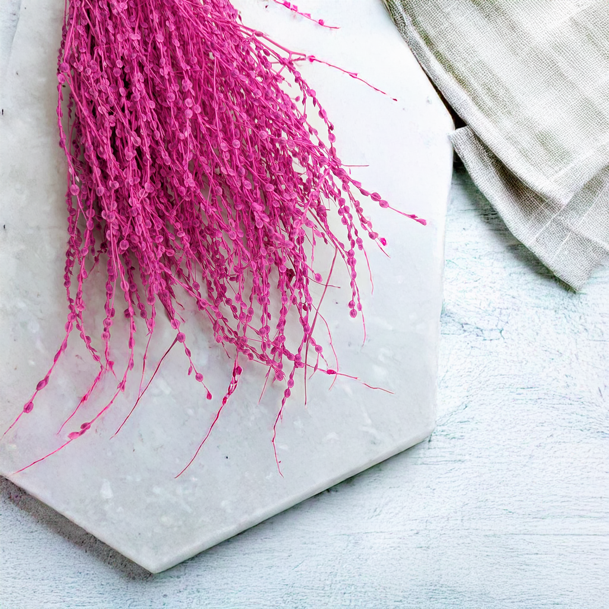 Le lepidium séché en teinte fuchsia est un produit décoratif raffiné. Sa couleur vibrante apporte élégance et caractère à toutes les compositions. Ces fines tiges ornées de petites graines séchées s’intègrent parfaitement dans les bouquets floraux, les décorations de table ou encore les compositions cadeaux. Leur aspect unique et leur polyvalence permettent une utilisation créative, en mettant en valeur les éléments principaux sans les surcharger, mais en complétant subtilement l’ensemble. Leur durabilité et l’intensité de leur couleur en font un accessoire très apprécié dans l’univers de la décoration florale.