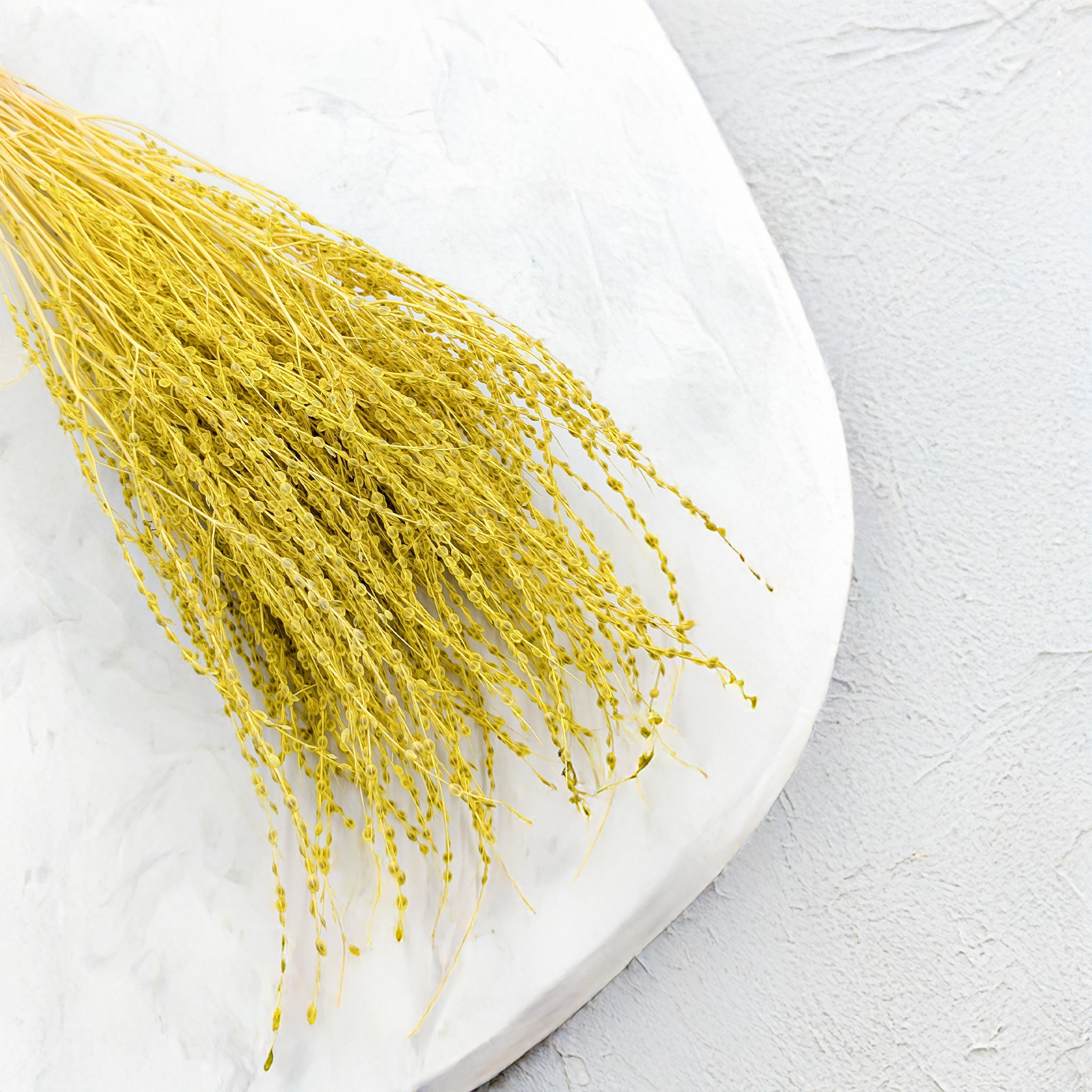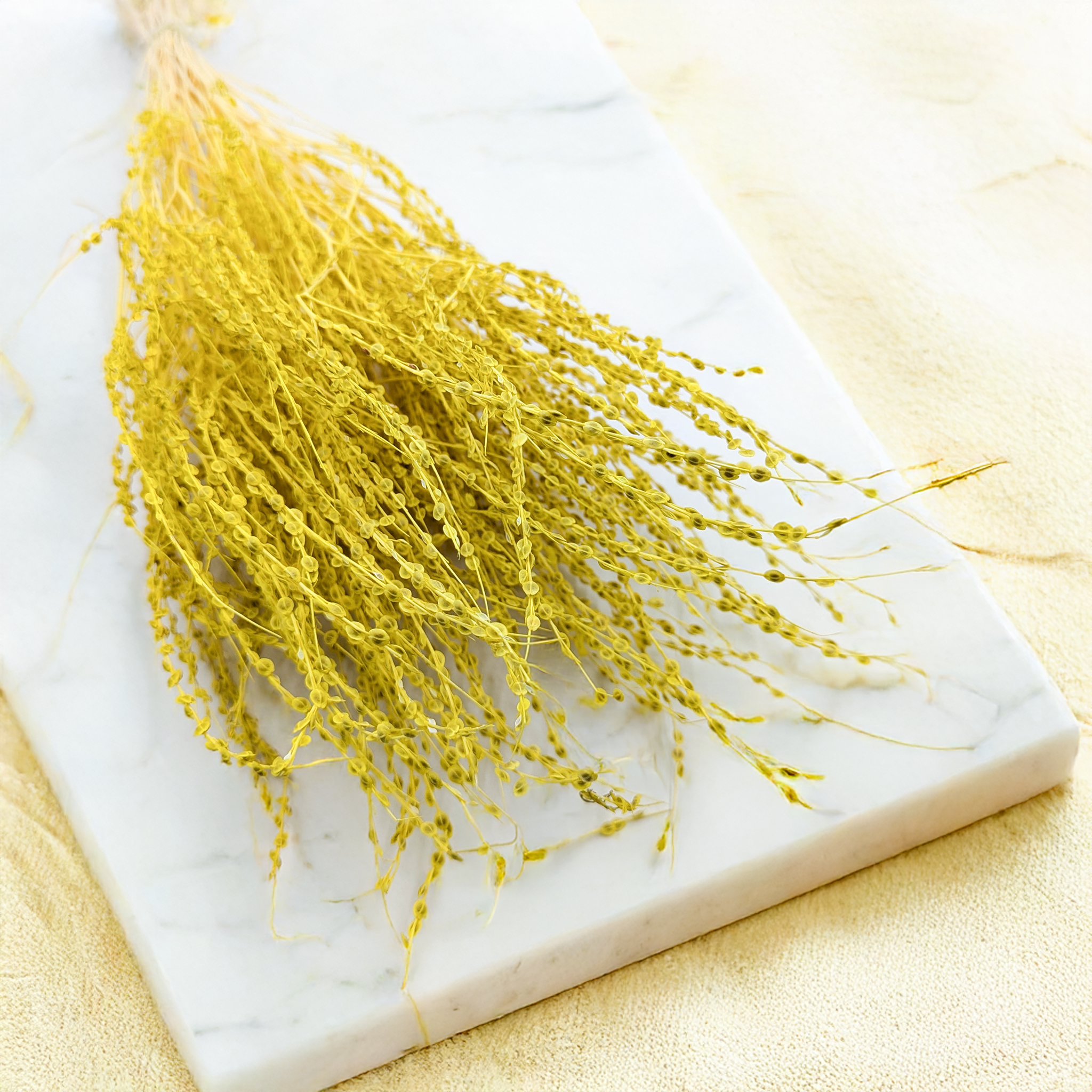Le lepidium séché en teinte jaune est un élément décoratif original et raffiné. Ses petites graines séchées se distinguent par leur couleur intense et lumineuse, idéale pour sublimer toutes sortes de compositions florales.