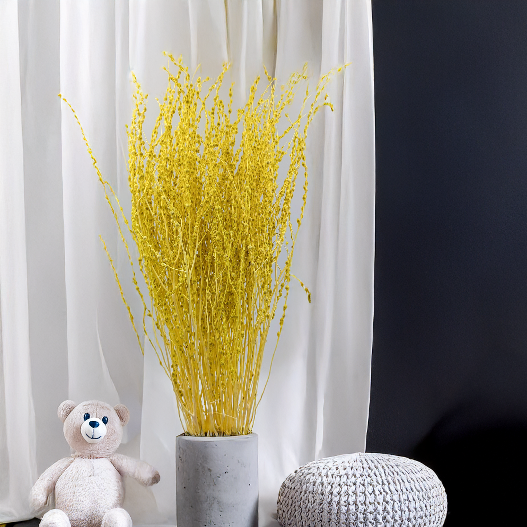 Un atout majeur de ce produit réside dans sa durabilité. Les graines séchées conservent longtemps l’intensité de leur couleur, permettant de réutiliser le lepidium dans de nombreux projets décoratifs. Ce jaune vif souligne avec force les éléments centraux des arrangements, apportant style et personnalité à l’ensemble.