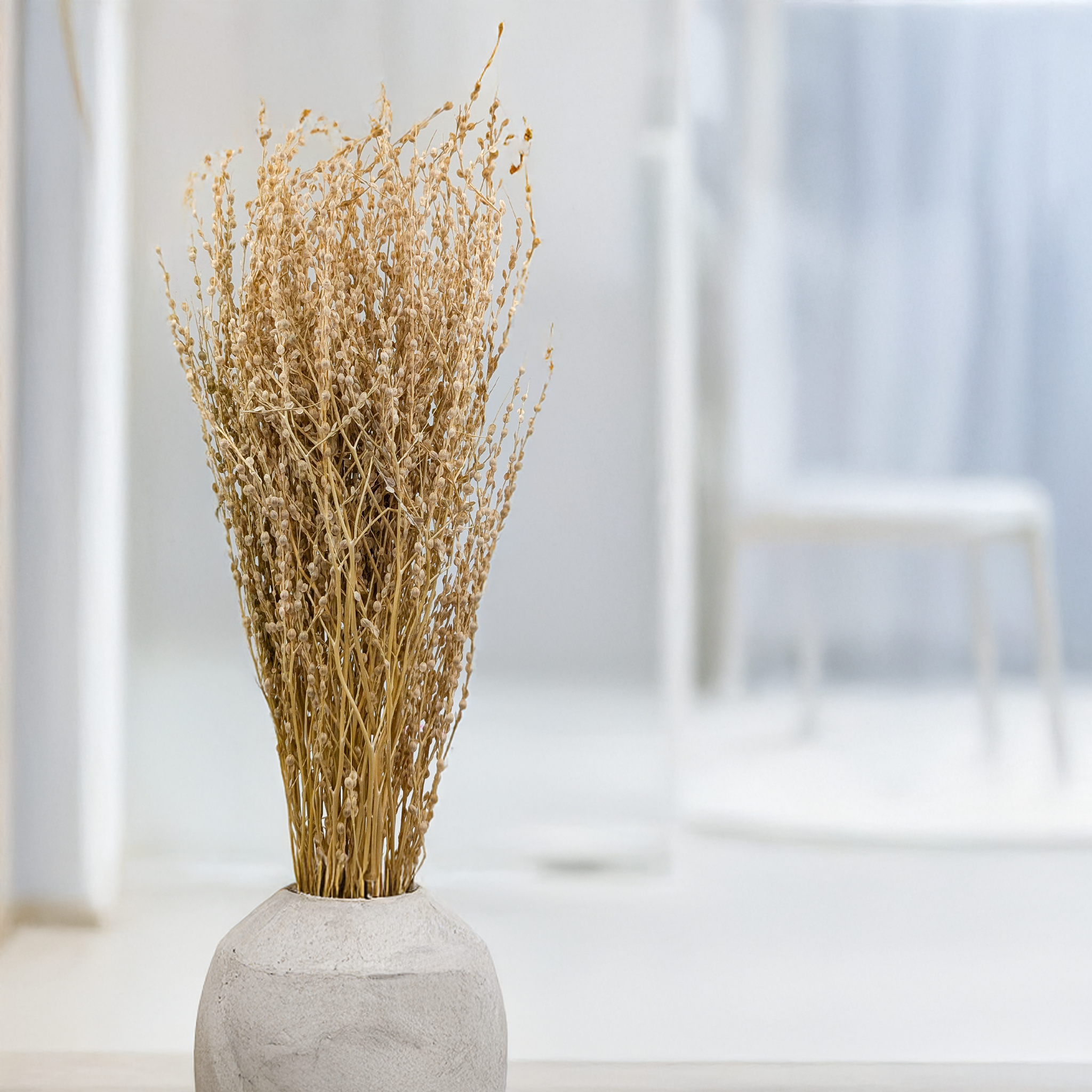 Lepidium sativum, ou cresson alénois, est une plante séchée de qualité, au ton naturel doux. Son aspect léger et raffiné en fait un incontournable pour les compositions florales bohèmes, les décorations de mariage ou les arrangements de table.