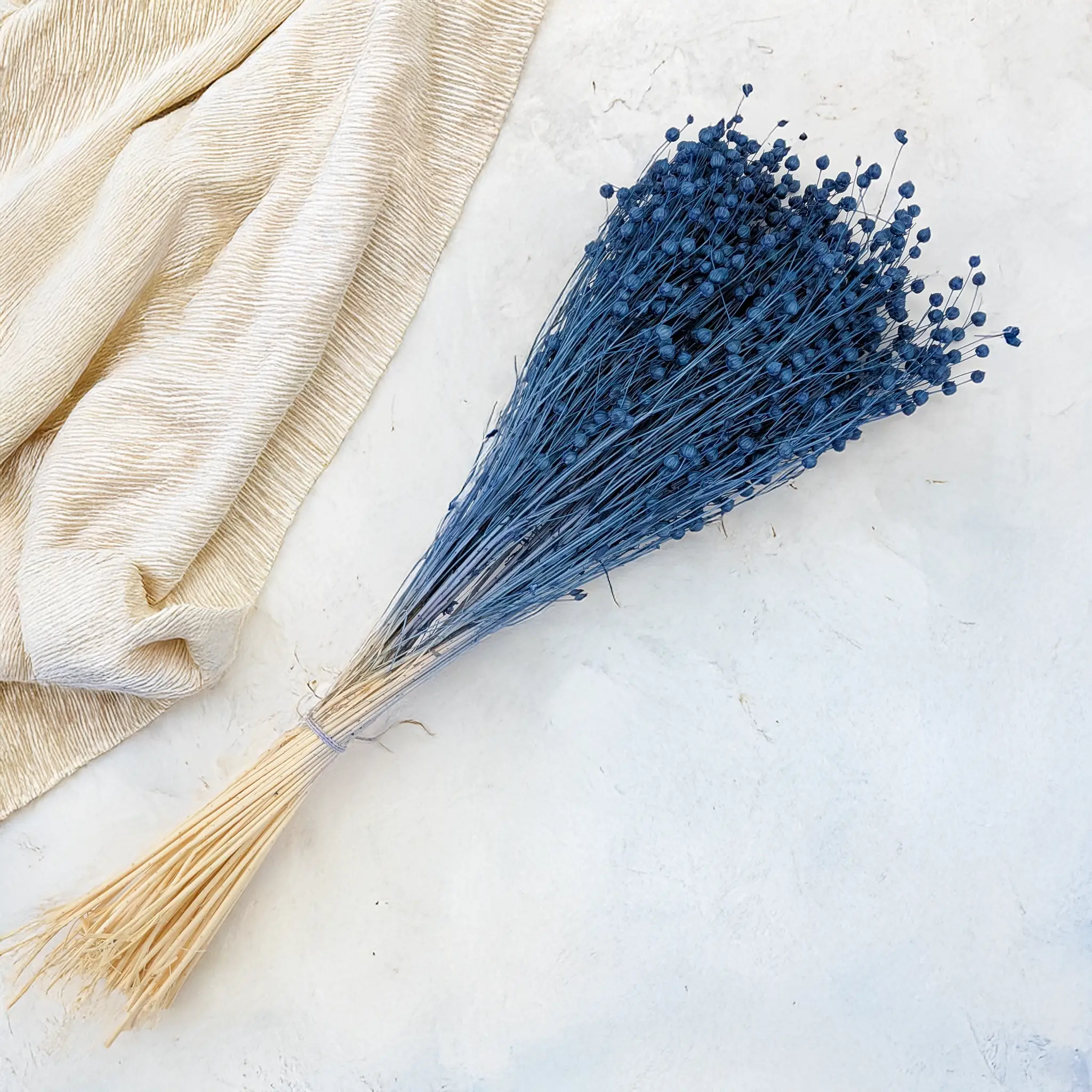 Le lin séché bleu apporte une touche apaisante et authentique à votre intérieur. Sa texture délicate et son origine écologique en font un choix parfait pour les styles bohème, rustique et nordique.
