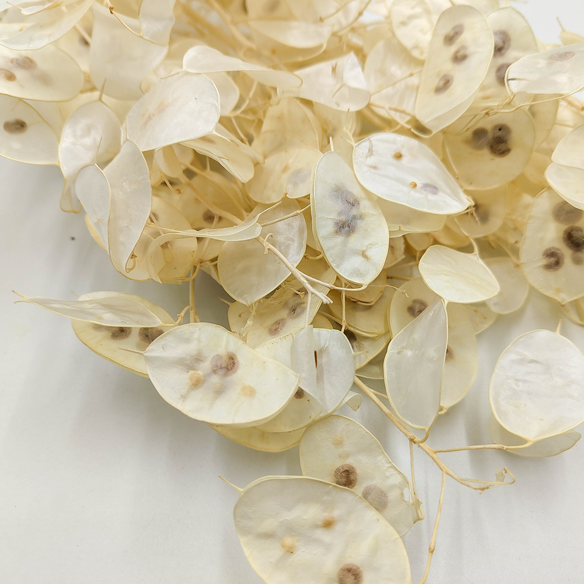 La lunaire blanchie séchée, également appelée Lunaria Annua ou monnaie du pape, se distingue par ses disques translucides et nacrés. Idéale pour les décorations de mariage, les intérieurs bohèmes ou les compositions florales élégantes.