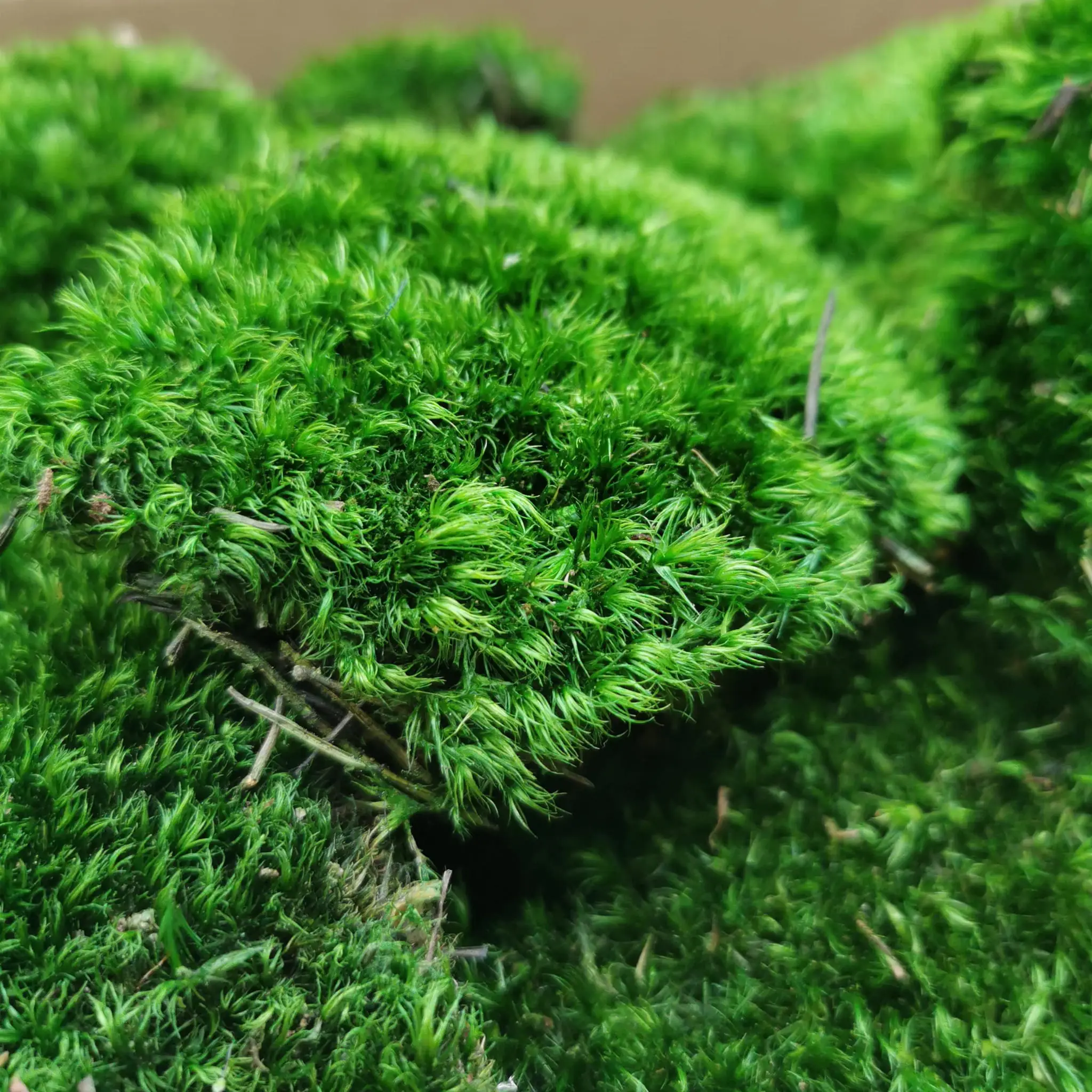 La mousse des marais se caractérise par une structure filamenteuse, très agréable au toucher. Elle pousse en touffes, de manière similaire à la mousse boule.