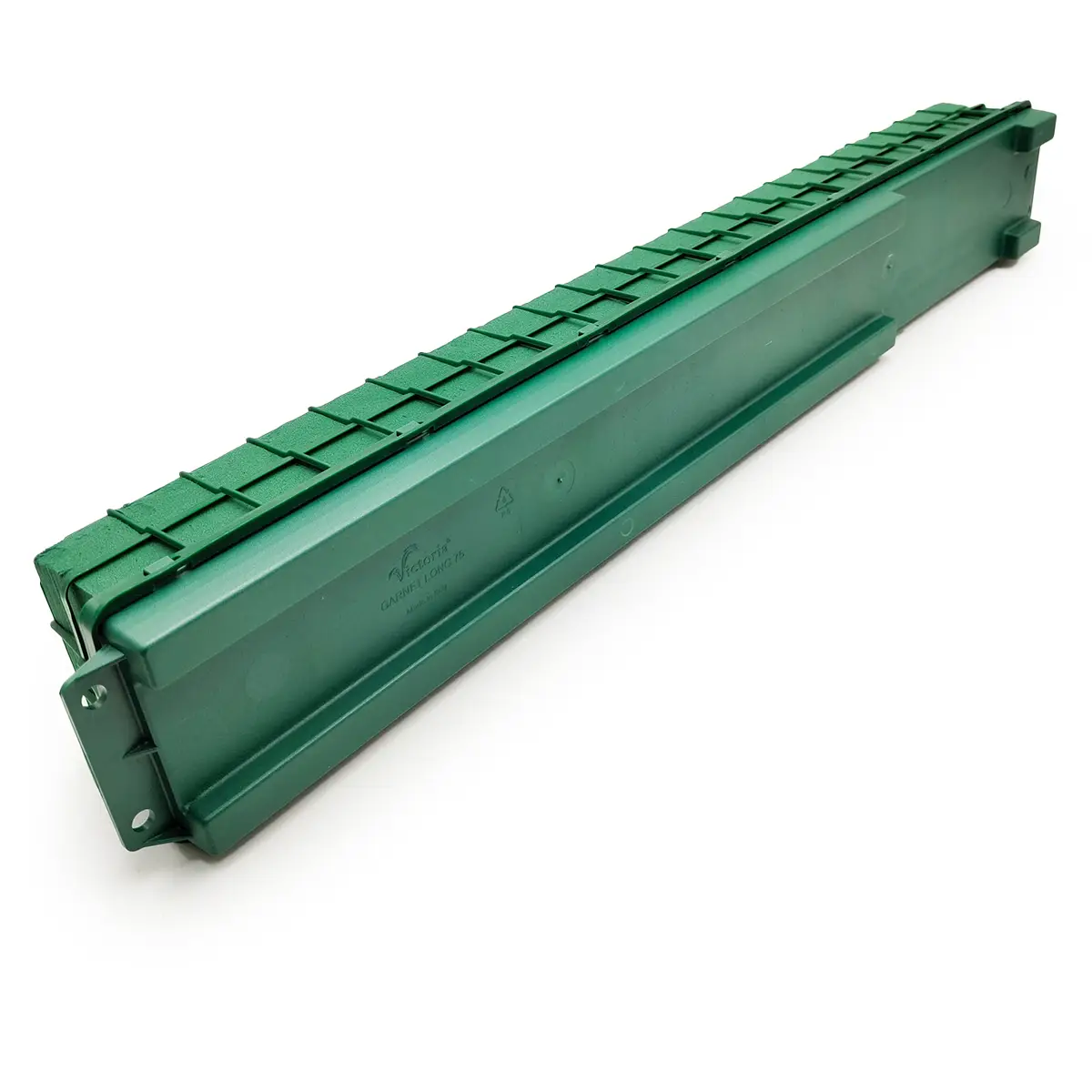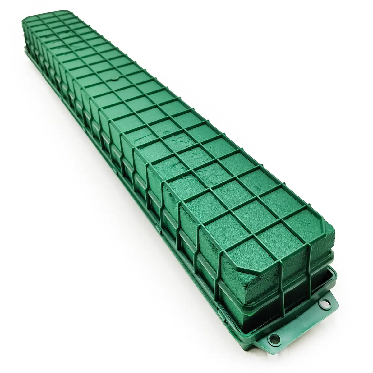 Garnet Long est une mousse florale allongée, intégrée dans une structure en plastique robuste, mesurant 75 cm x 11 cm x 10 cm. Idéale pour des compositions florales volumineuses ou suspendues.