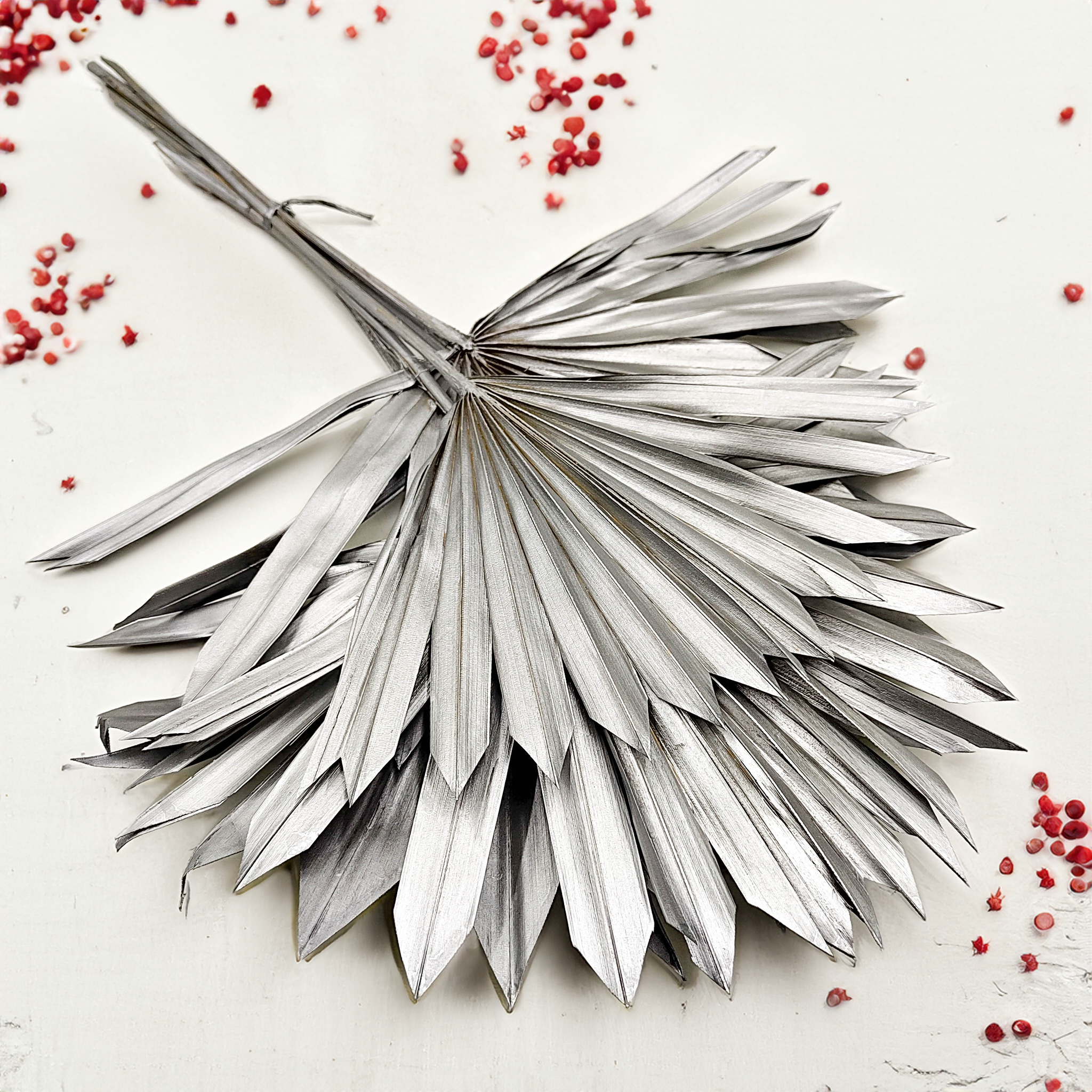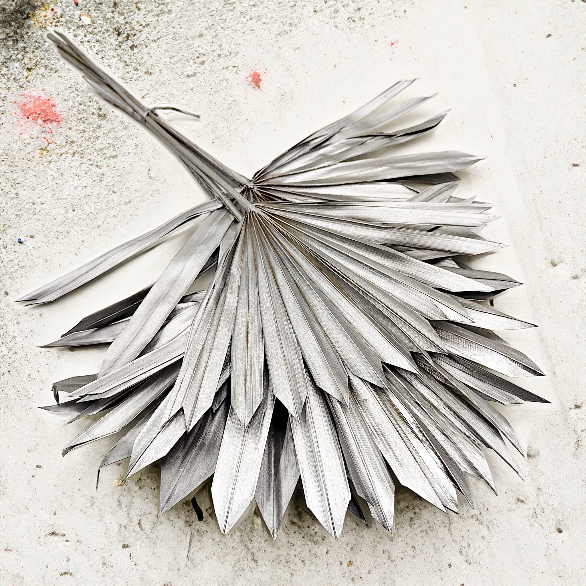 Ce palmier éventail séché de couleur argentée est un élément décoratif saisissant qui apporte une touche de modernité et de raffinement. Sa forme rayonnante et sa finition métallique s’intègrent parfaitement aux décorations minimalistes ou classiques.