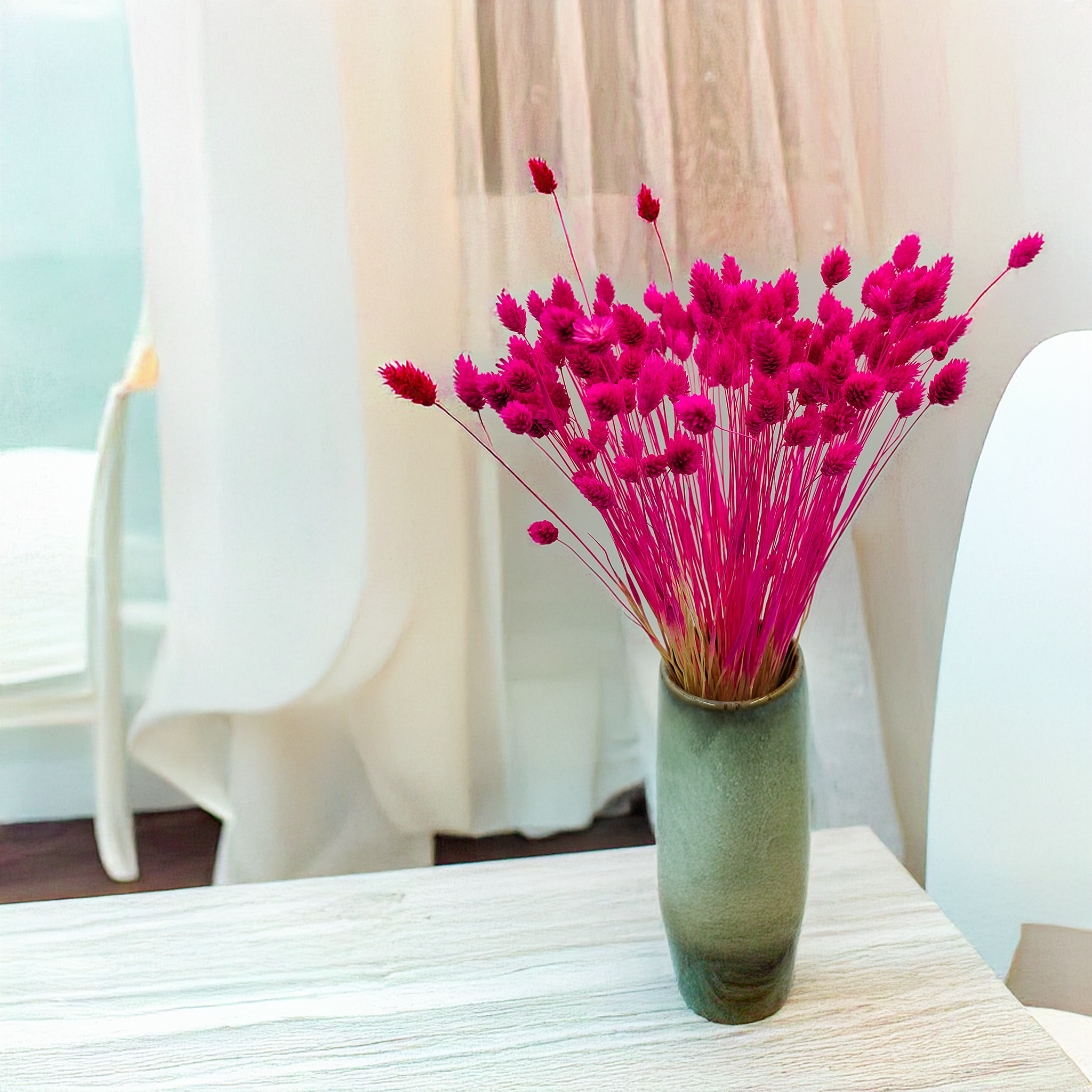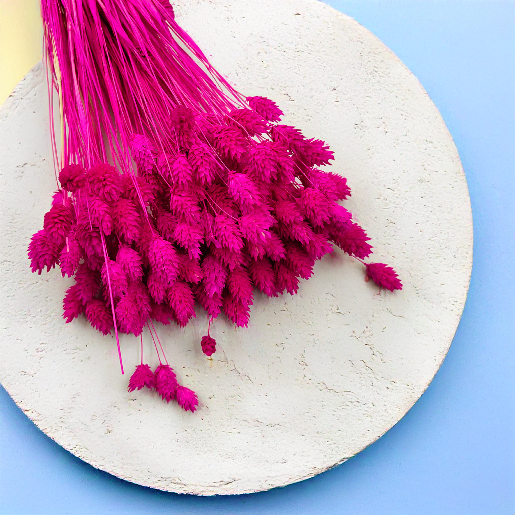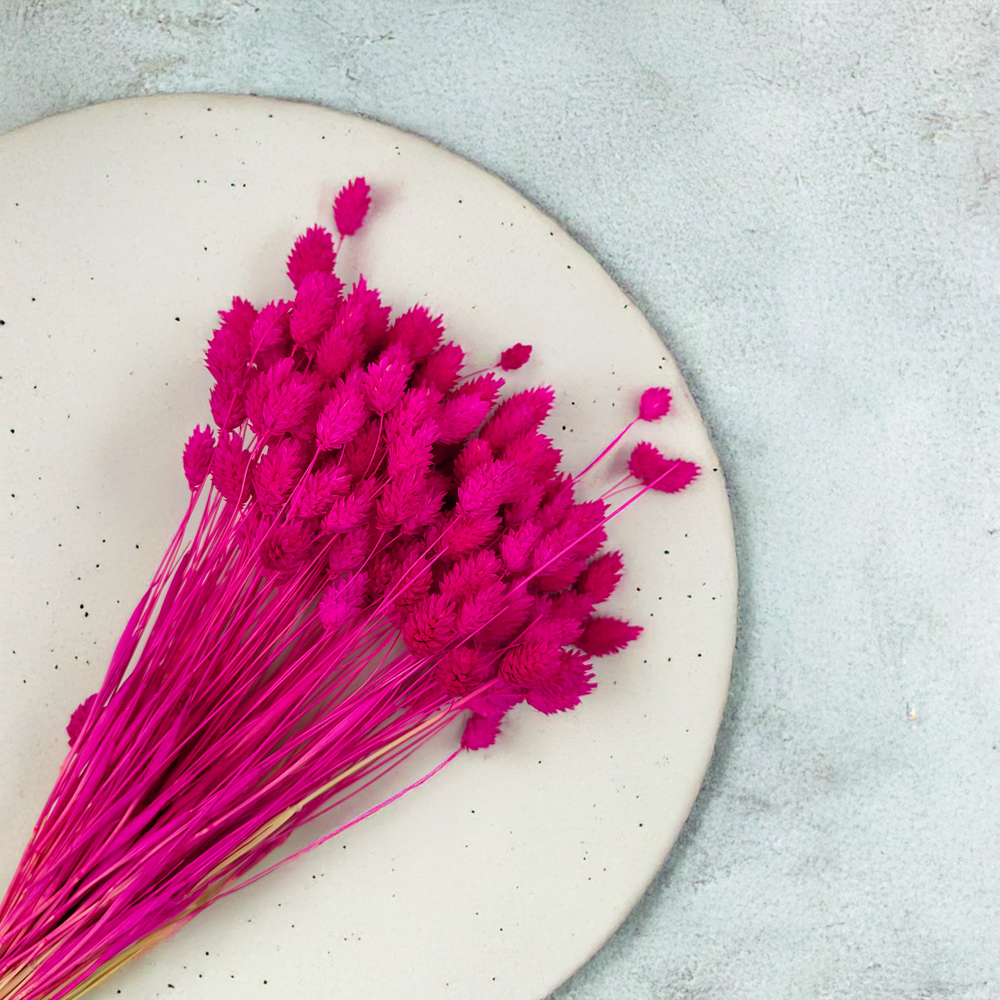 Le Phalaris Amarante est une version audacieuse et expressive de la canche canari, séchée et teintée dans une nuance intense de rose fuchsia mêlée de rouge. Cette couleur symbolise la passion, la créativité et l'énergie – idéale pour les décorations marquantes et dynamiques.