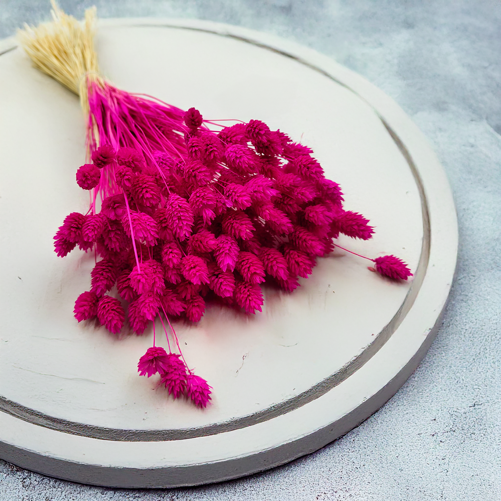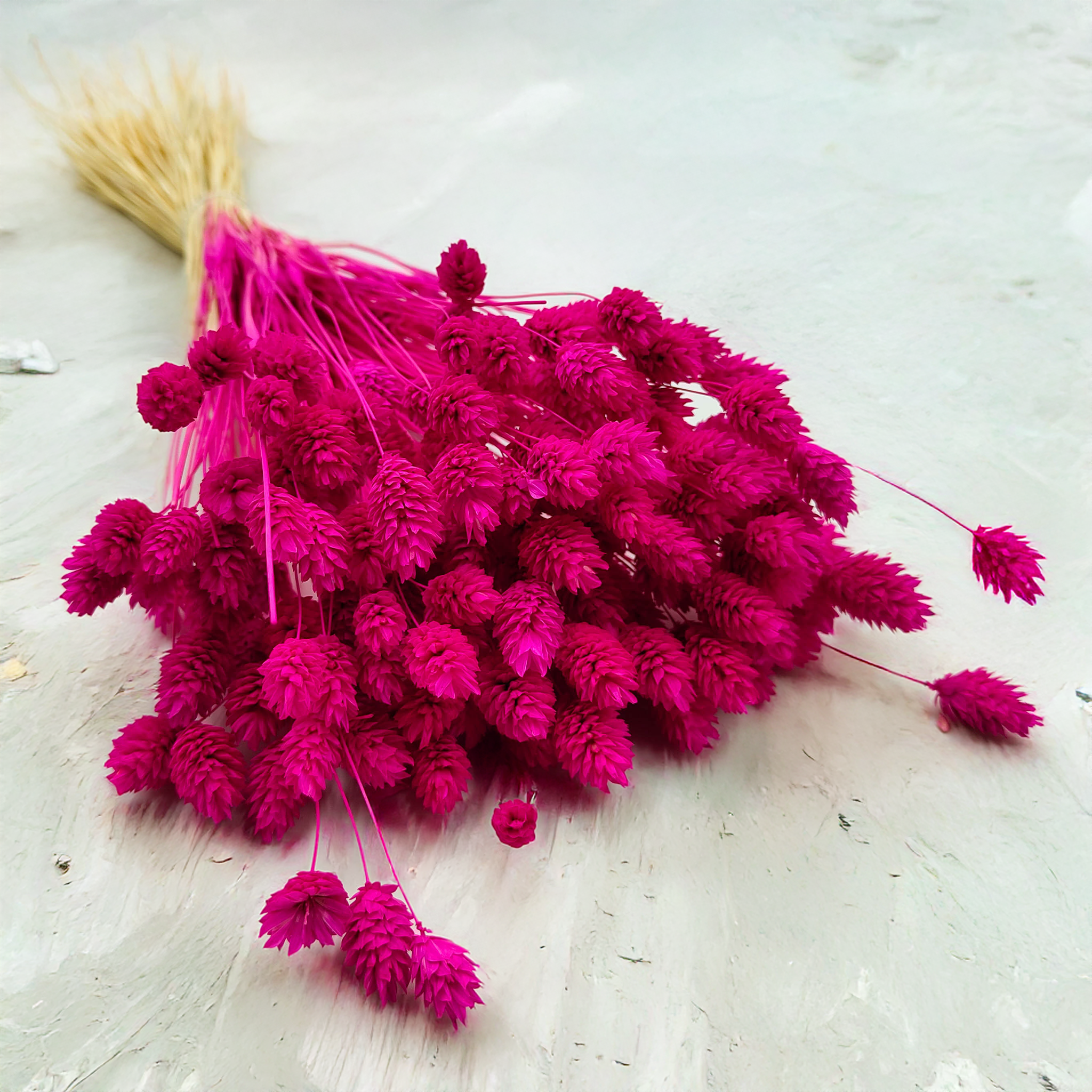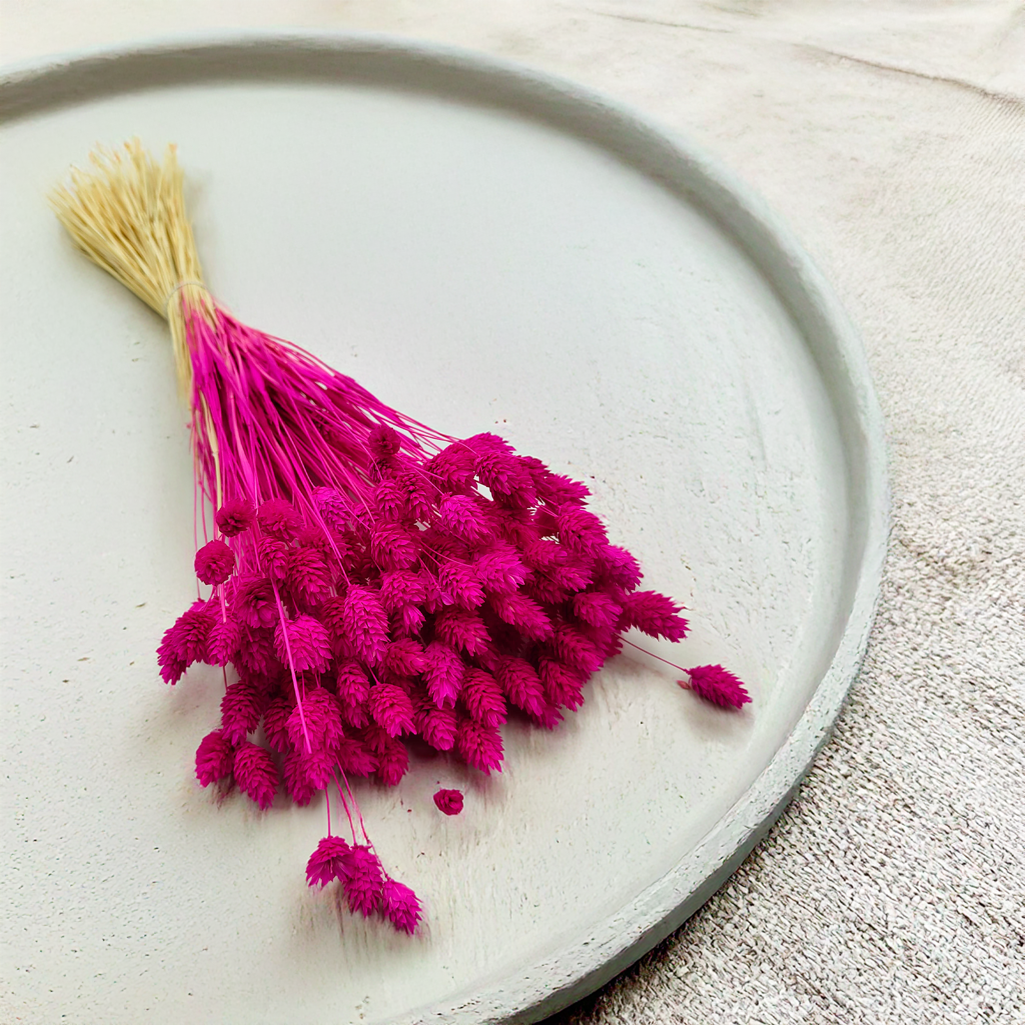 Le Phalaris Amarante est une version audacieuse et expressive de la canche canari, séchée et teintée dans une nuance intense de rose fuchsia mêlée de rouge. Cette couleur symbolise la passion, la créativité et l'énergie – idéale pour les décorations marquantes et dynamiques.