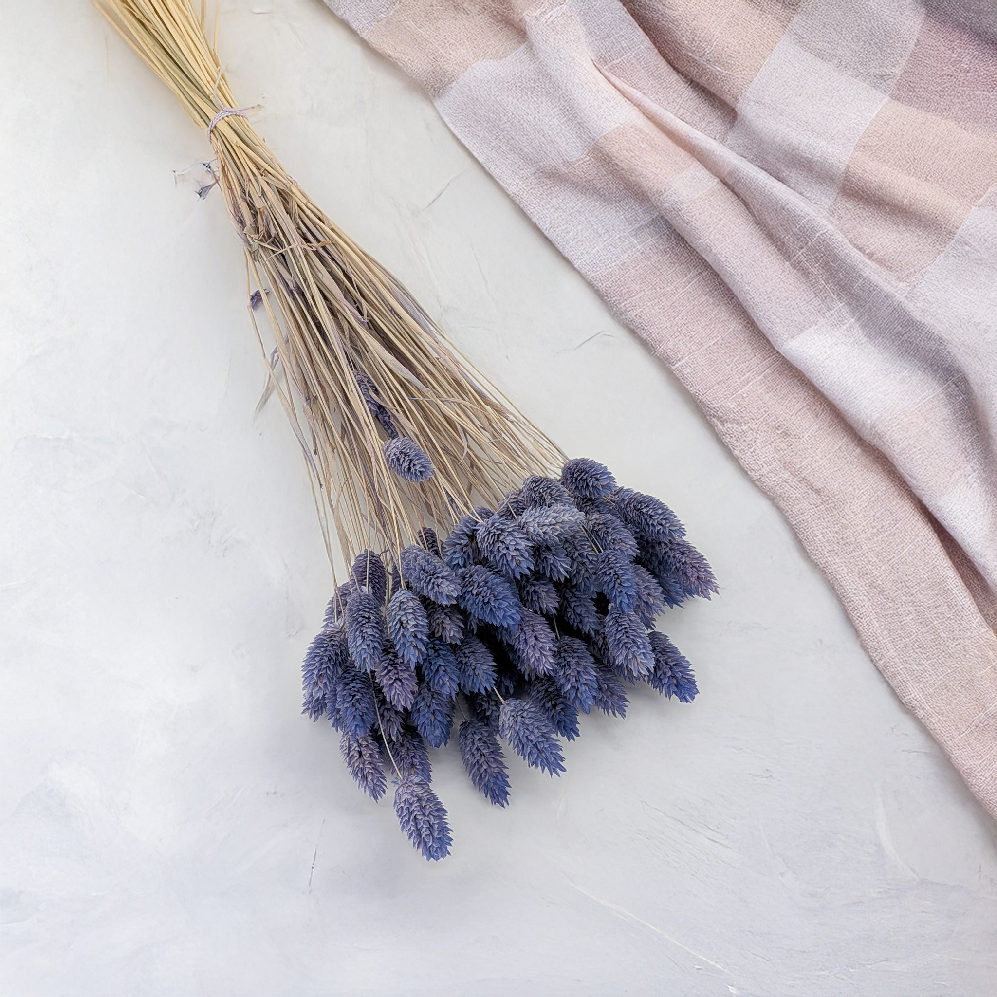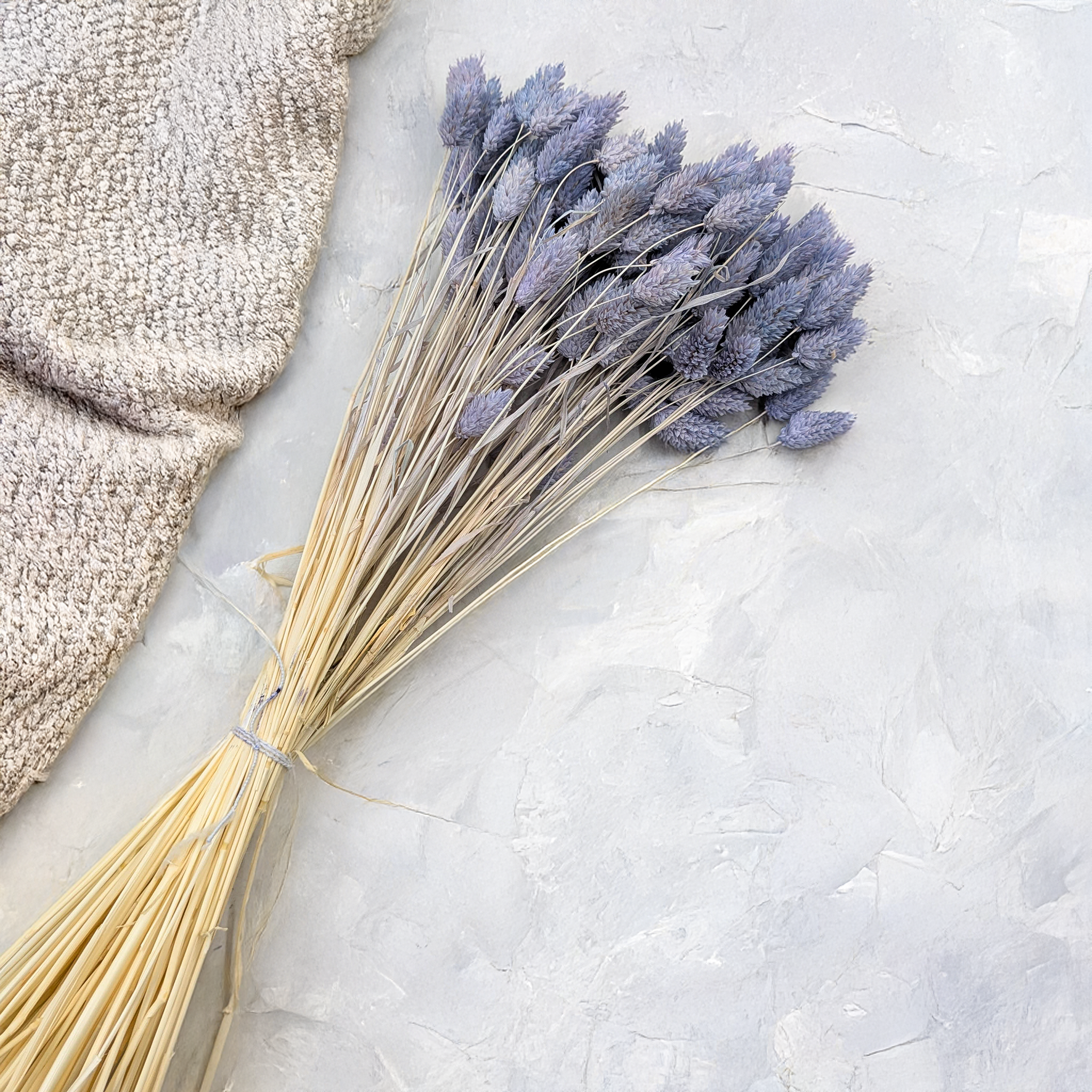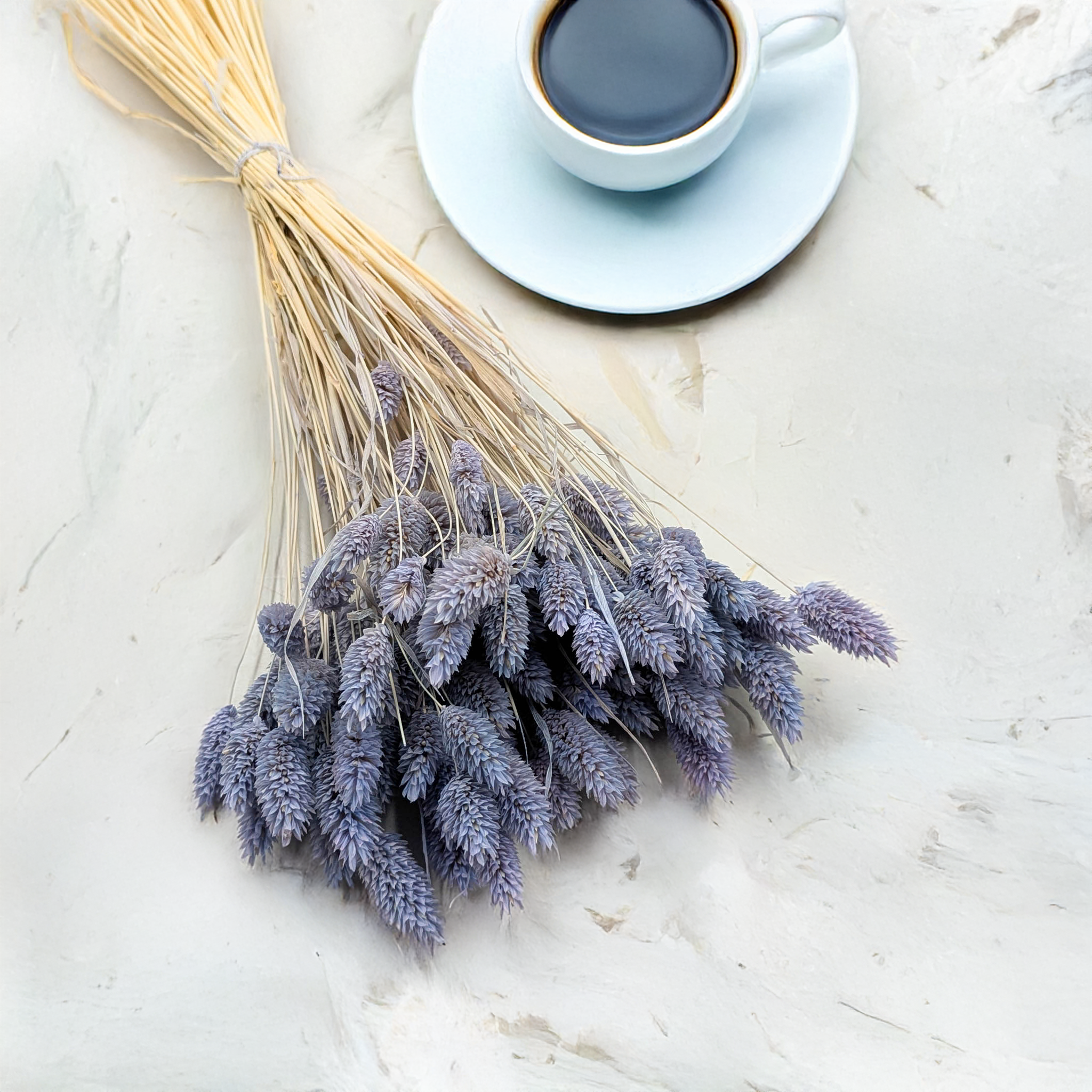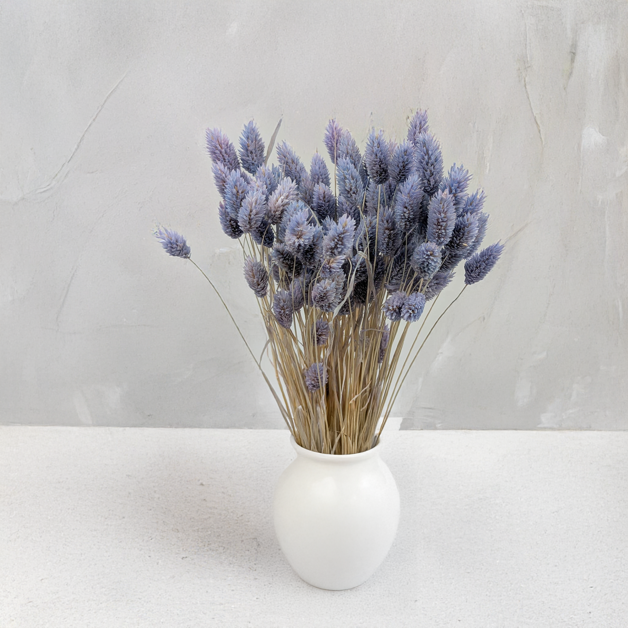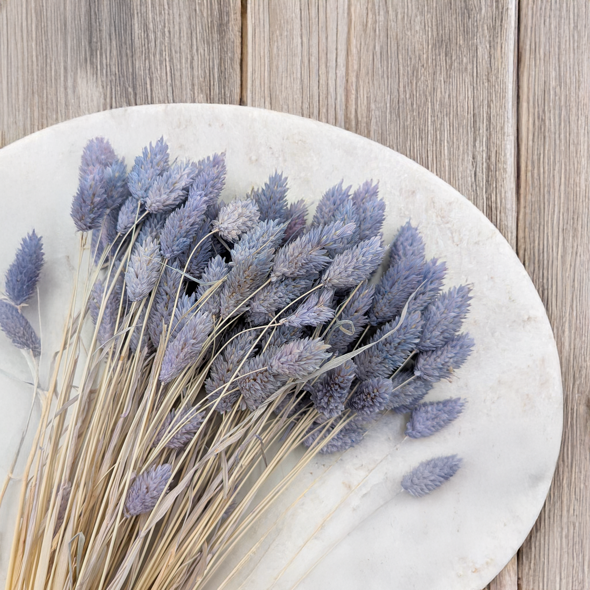Le Phalaris Bleu Denim est une variété raffinée de canche canari séchée, caractérisée par une teinte bleue atténuée élégante, mêlée à des nuances grises. Cette couleur inspirée du denim apporte une touche de classicisme moderne à chaque composition florale – douce, sobre mais remarquable.