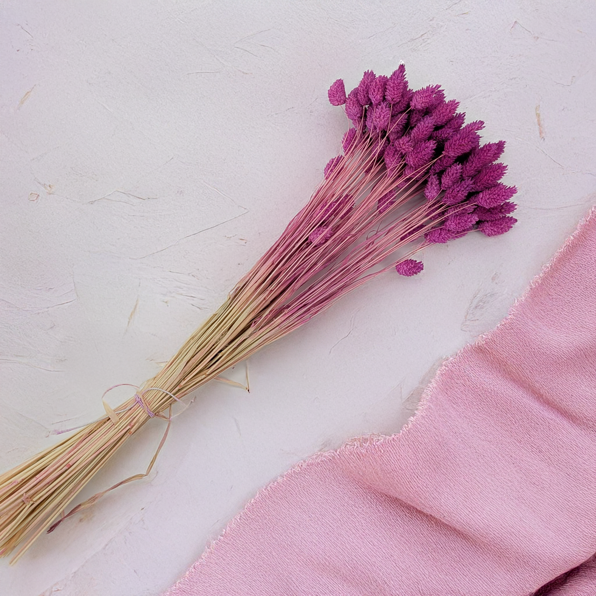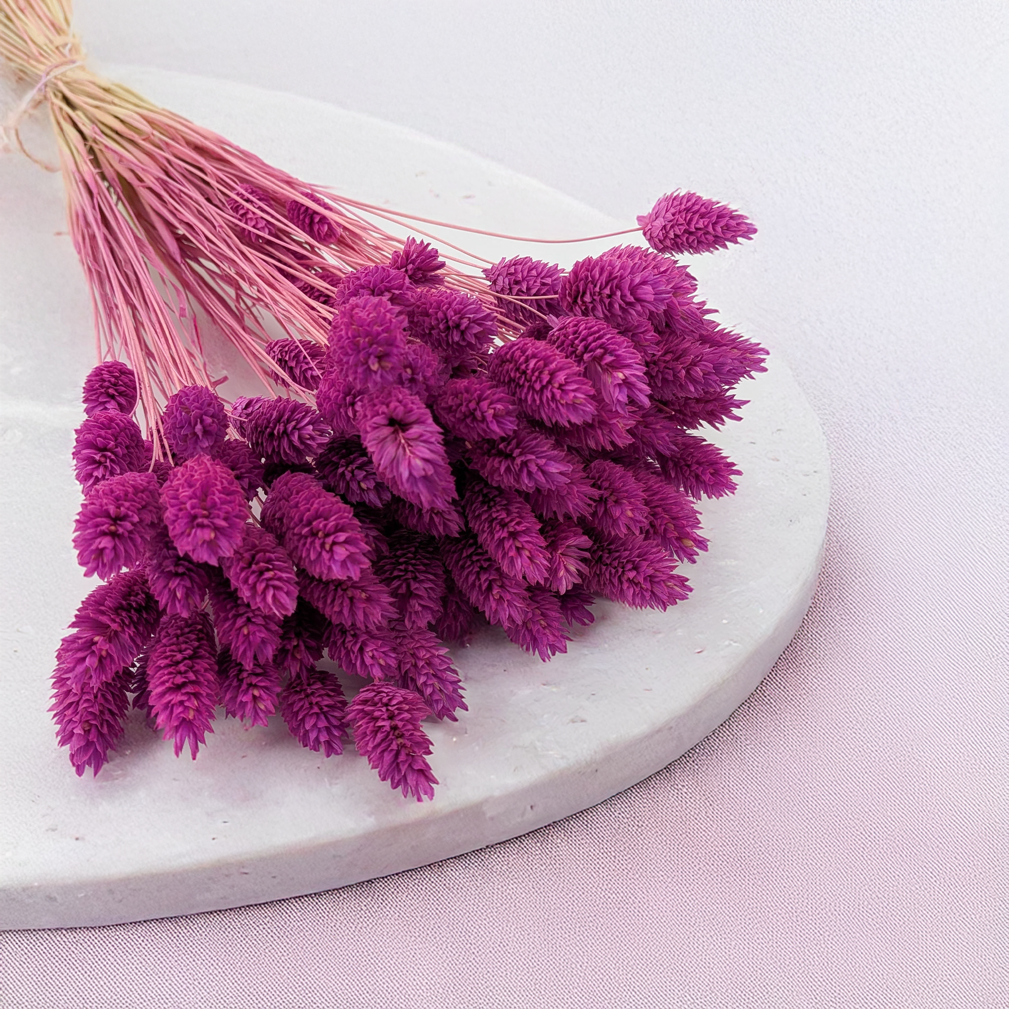 Phalaris séché (alpiste des Canaries) en teinte bruyère pastel est une décoration romantique et douce. Sa couleur, inspirée de la bruyère en fleurs, associe des tons rose et violet atténués dans une version pastel. Parfait pour les compositions boho, rustiques ou minimalistes.