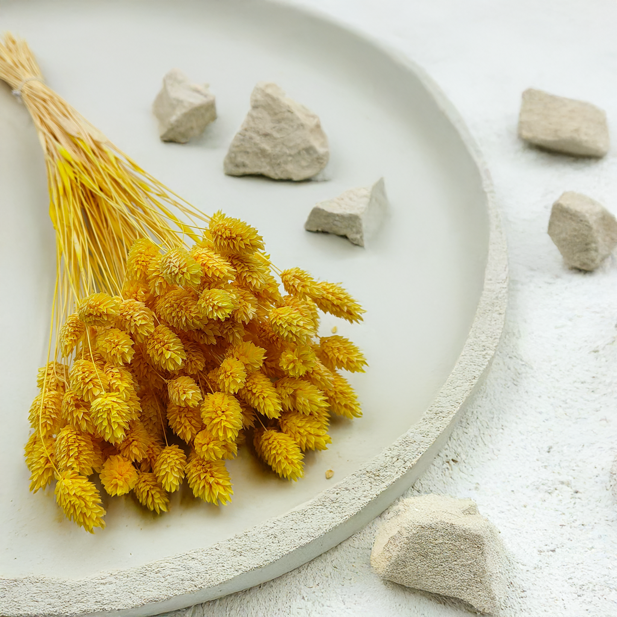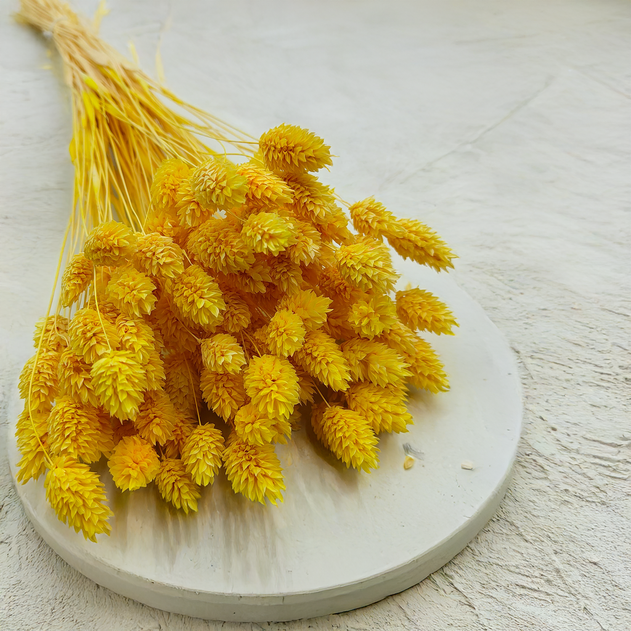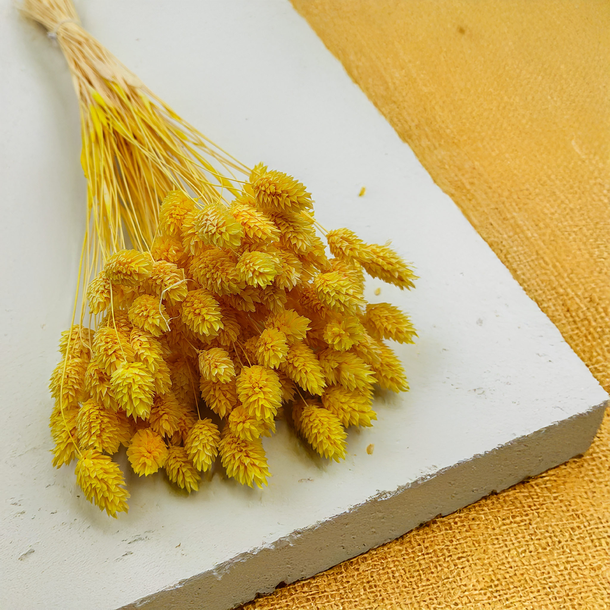 Le Phalaris jaune est une version lumineuse et joyeuse de l’herbe des Canaries, teintée d’un jaune ensoleillé. Symbole de vitalité et d’optimisme, il illumine chaque intérieur. Grâce au séchage professionnel, les tiges conservent leur forme et leur éclat pendant des mois.