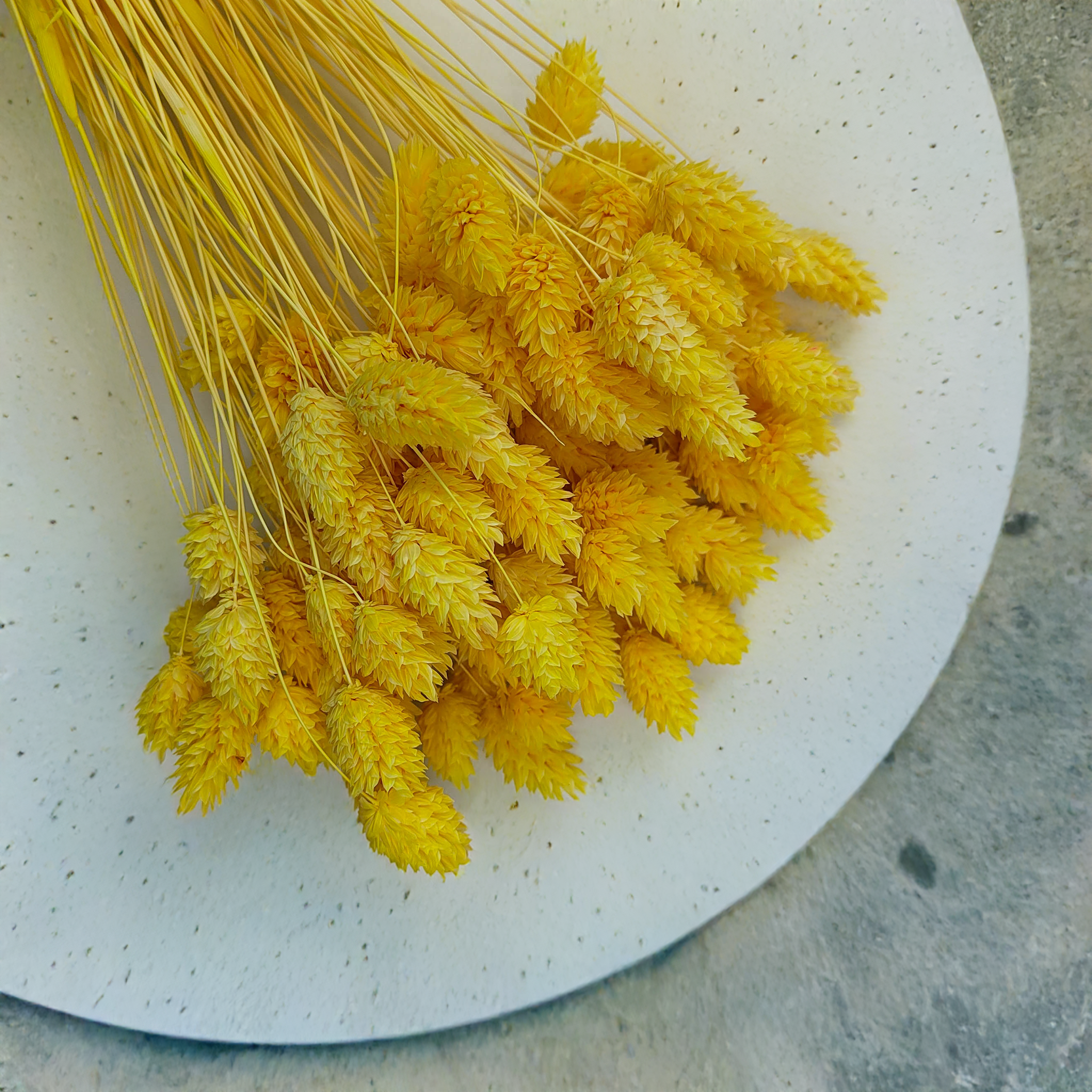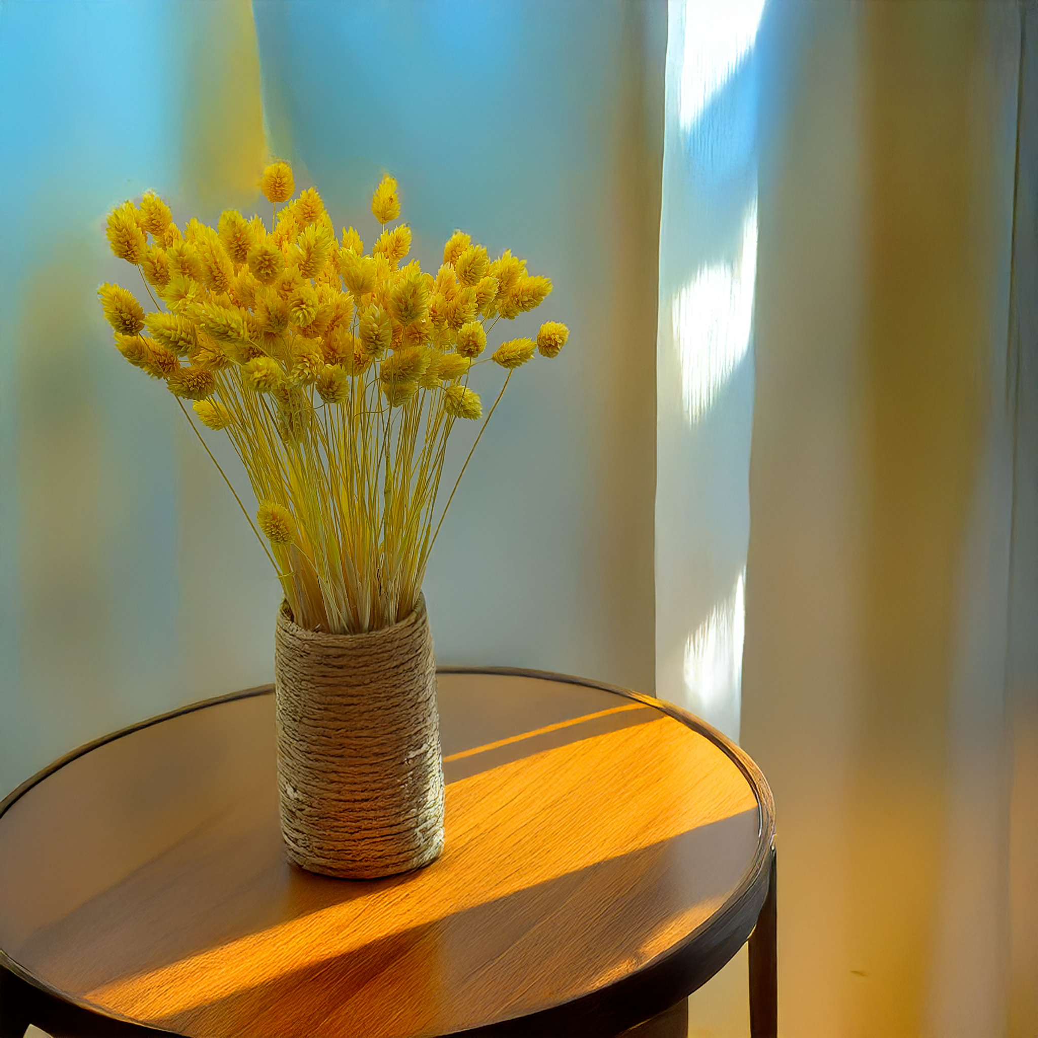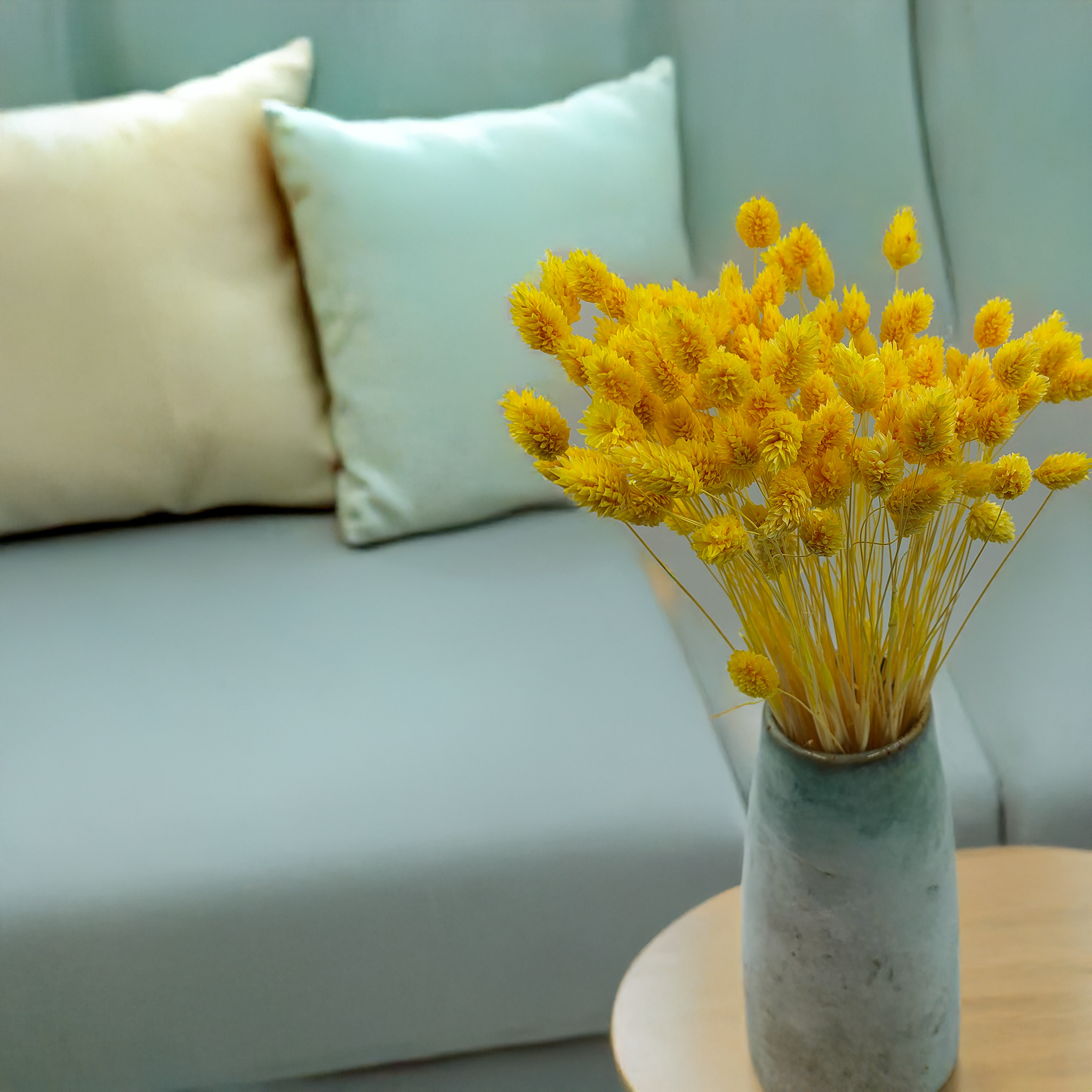 Le Phalaris jaune se marie bien avec le blanc, le vert, le gris, le rose pastel et le bleu. Idéal pour les intérieurs bohèmes, écologiques ou modernes.