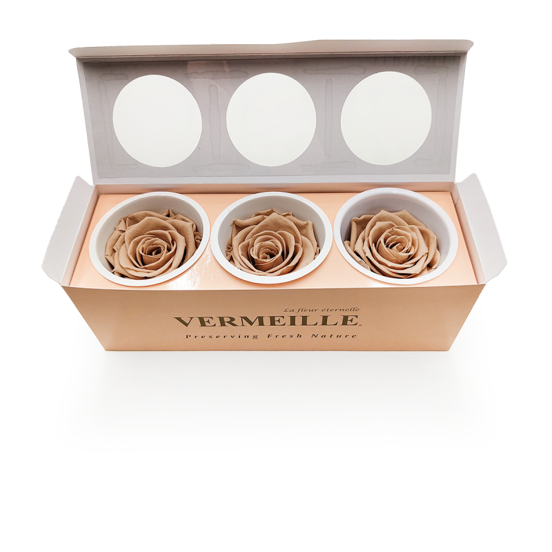 La rose stabilisée nude apporte une touche délicate et apaisante à tout espace. Sa teinte peau naturelle symbolise la douceur, l’équilibre et l’élégance, idéale pour les intérieurs modernes, les mariages sobres et les créations florales japandi ou bohèmes.