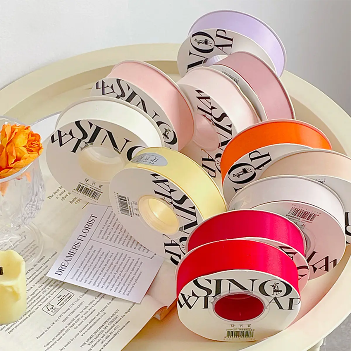 Le ruban floral satiné fuchsia est un accent intense et audacieux qui attire immédiatement le regard et donne aux compositions un caractère moderne. Sa teinte profonde et vibrante apporte énergie et expressivité même aux arrangements les plus simples.