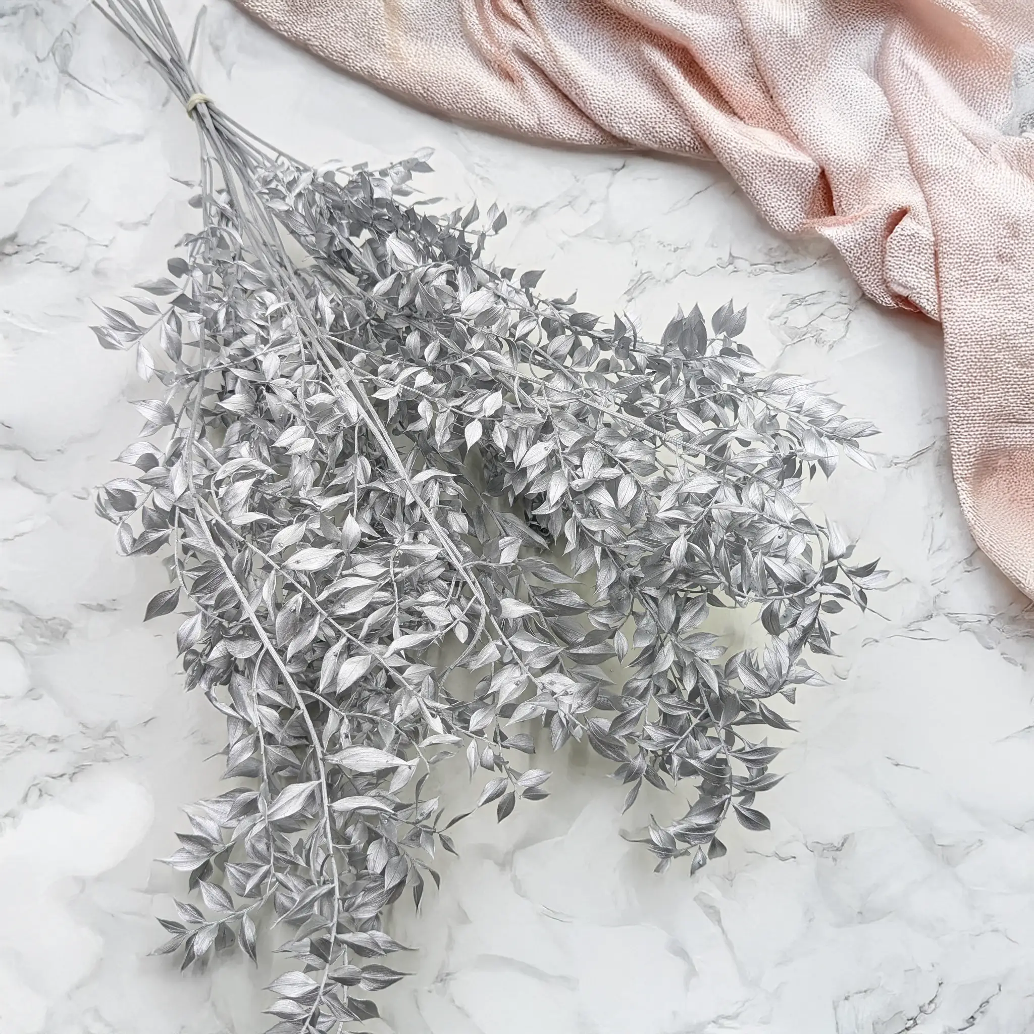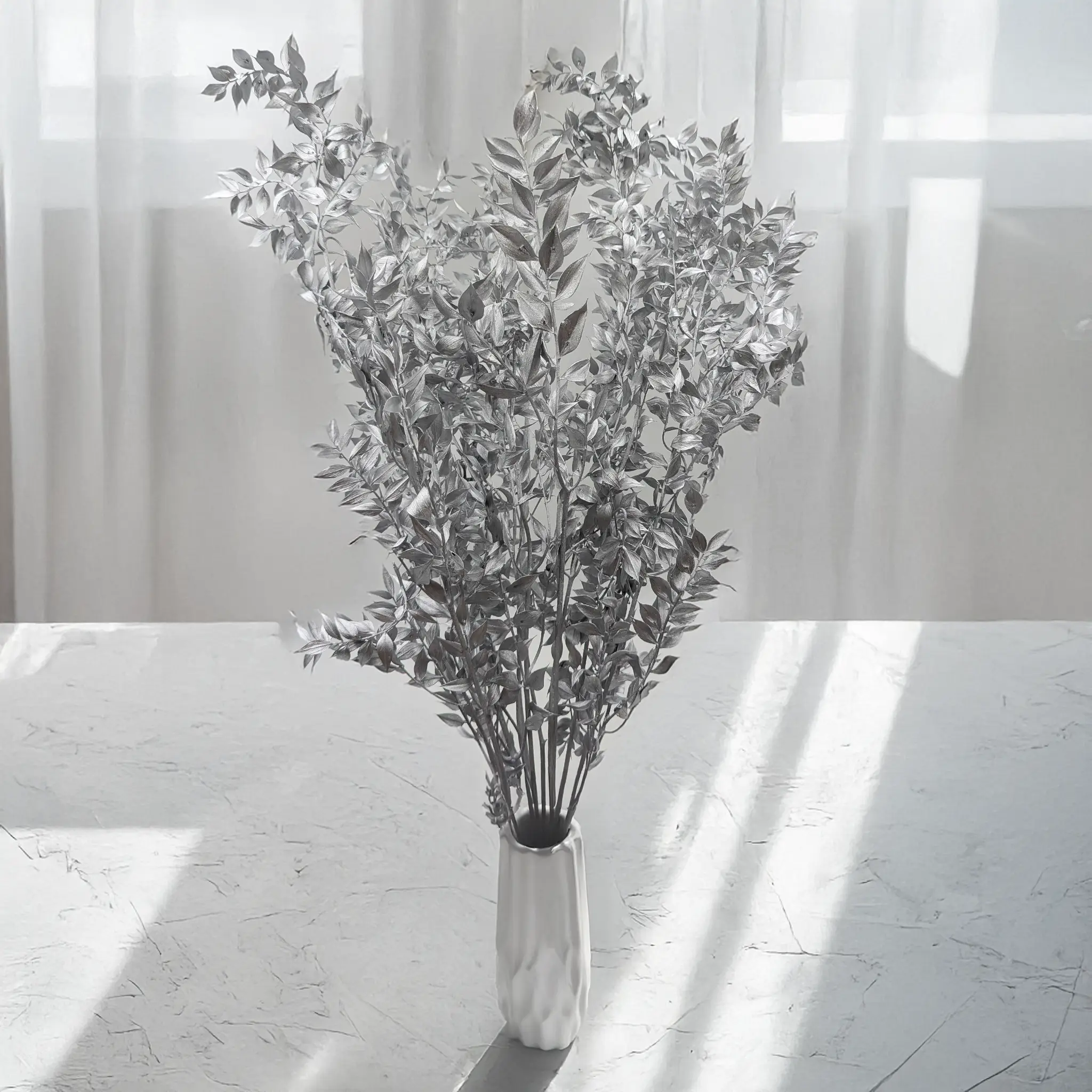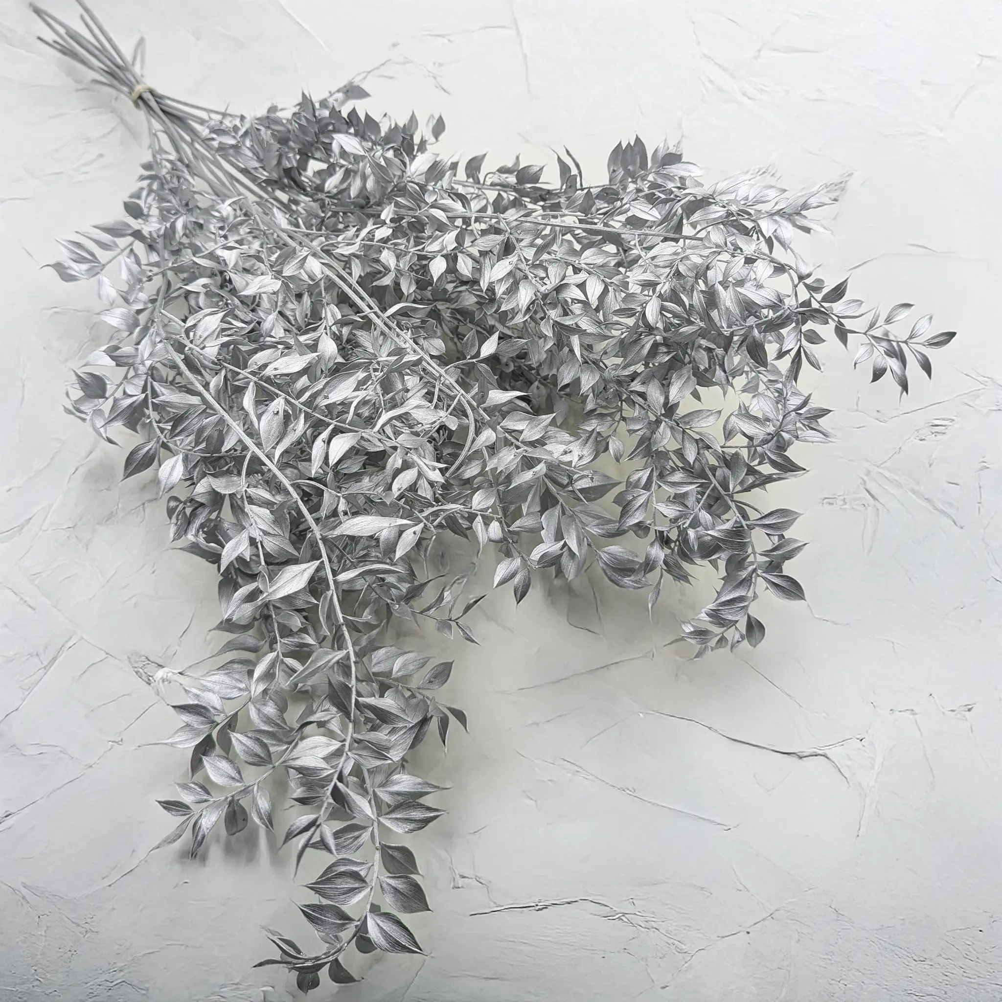 Le ruscus séché argenté est un choix élégant pour ceux qui aiment les touches décoratives froides et raffinées. Son éclat métallique apporte une dimension moderne et sophistiquée aux compositions florales – parfait pour l'hiver, les fêtes et les ambiances glamour. Prêt à l’emploi, sans entretien.