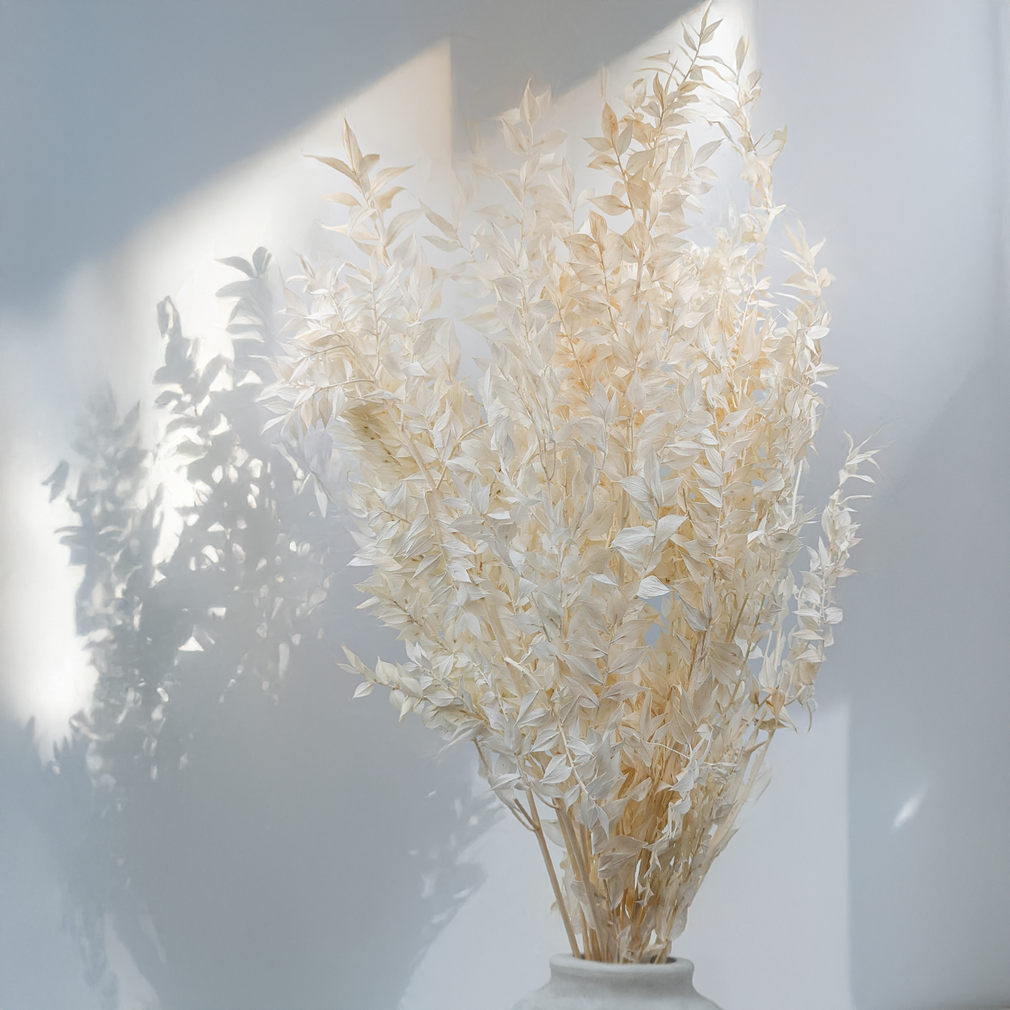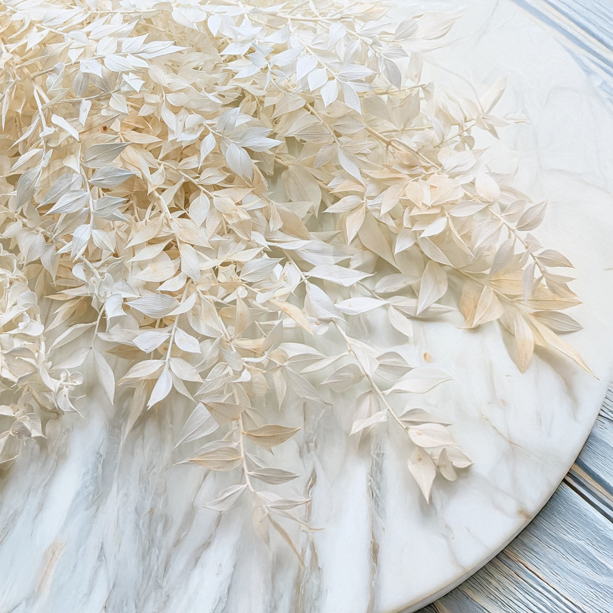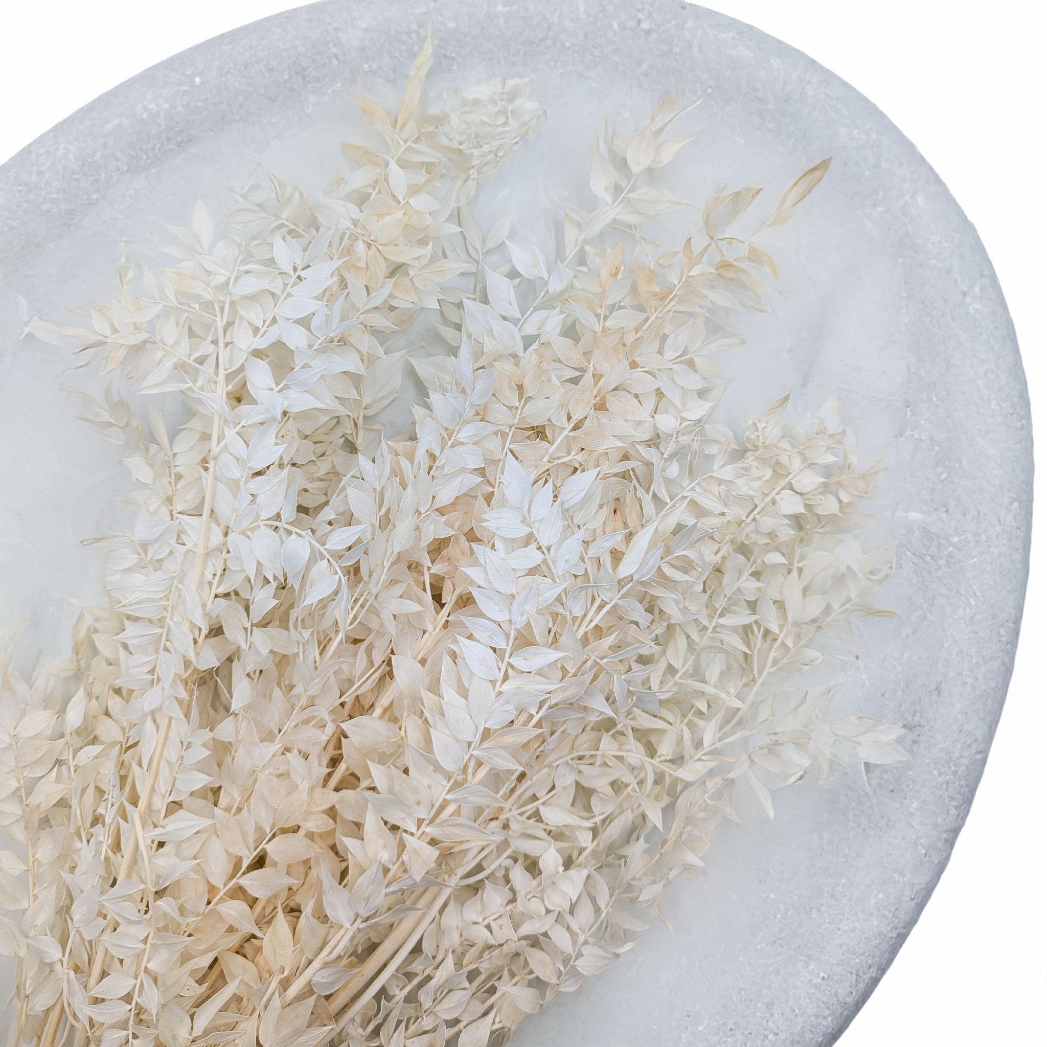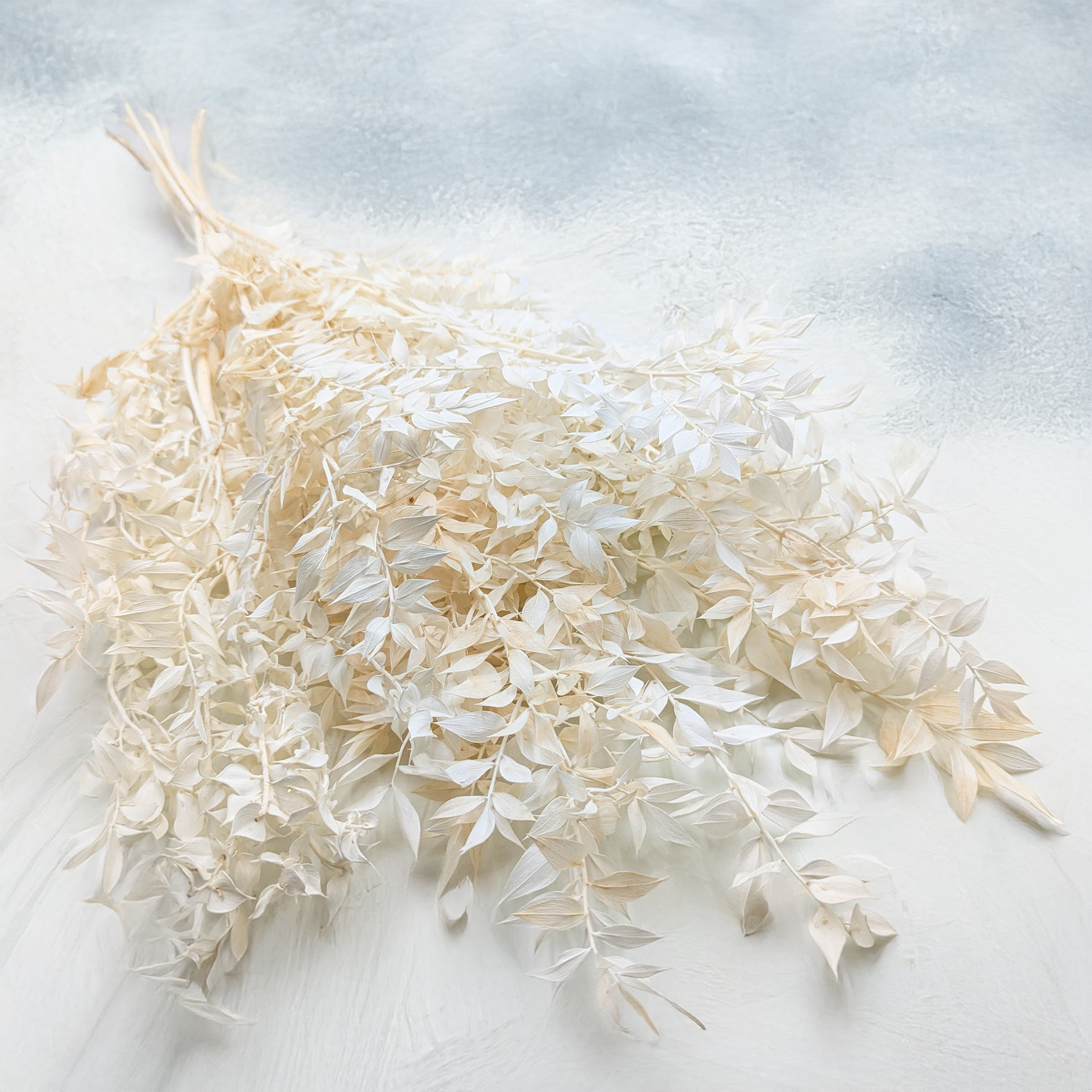 Le ruscus séché et blanchi est un feuillage décoratif raffiné, parfait pour les bouquets de mariage, les compositions florales et la décoration intérieure. Sa texture fine et sa teinte crème apportent douceur et légèreté à toutes les ambiances.