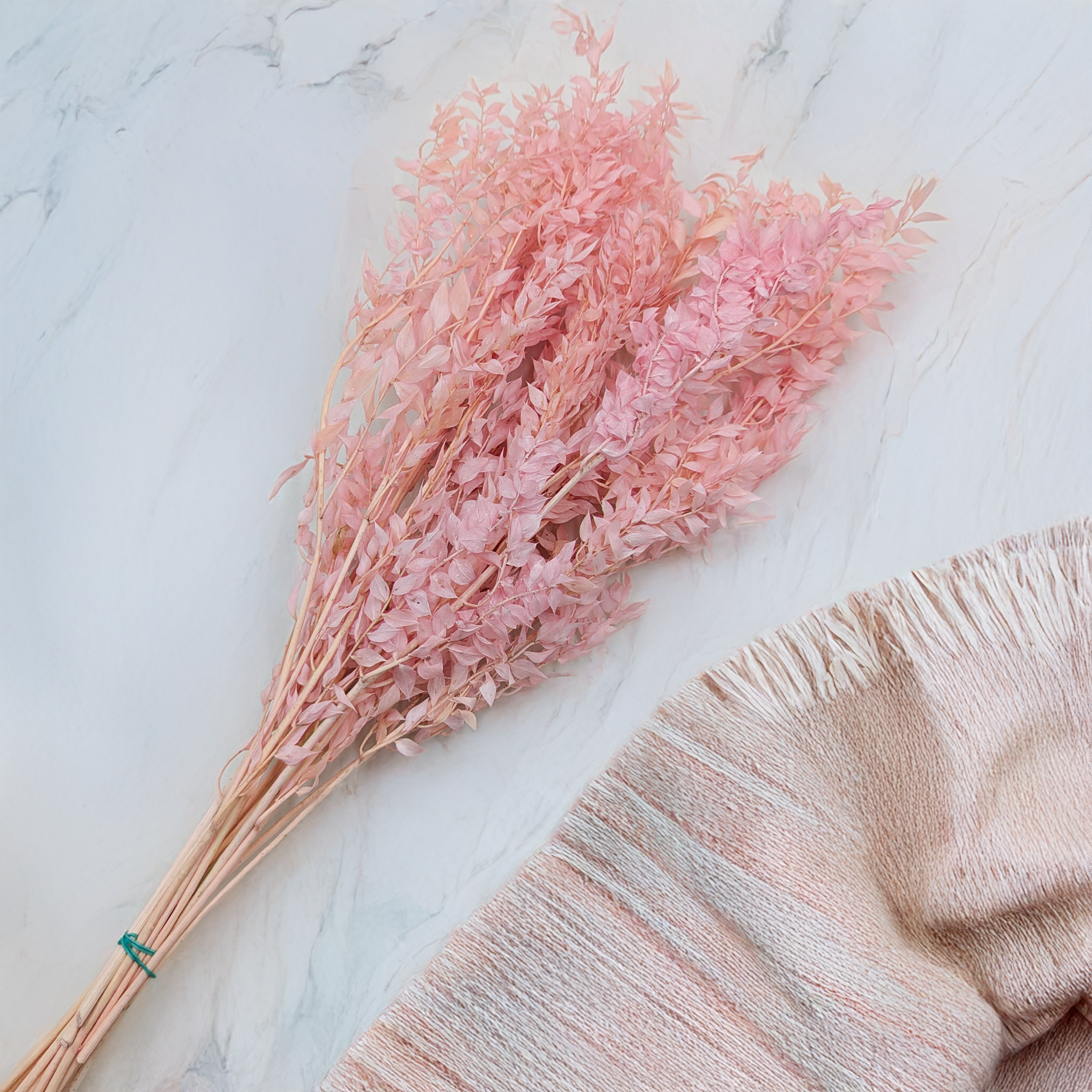 Ruscus Stabilisé – Rose Poudré – Tiges Décoratives 60 cm