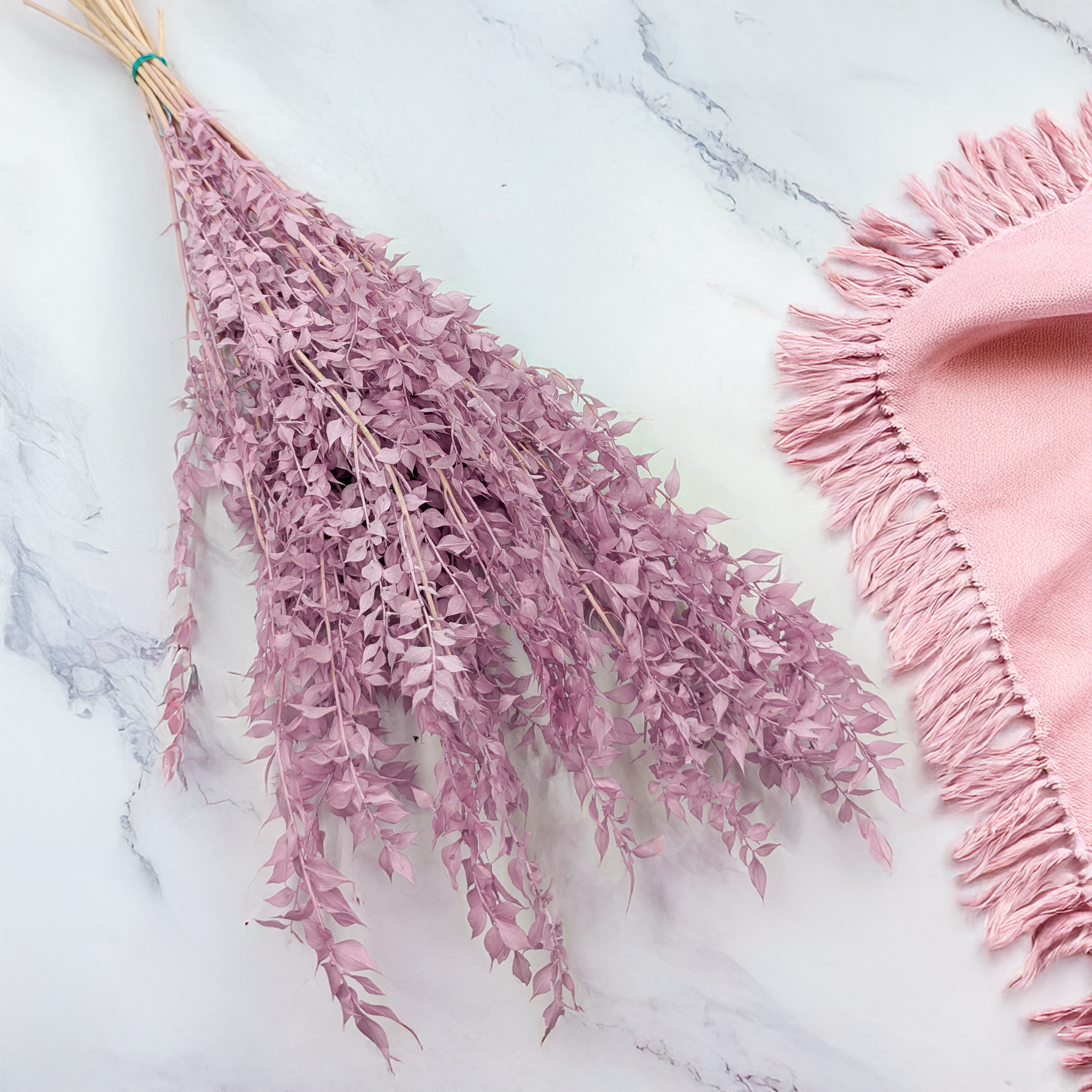 Le ruscus stabilisé en teinte violet bruyère est un élément décoratif élégant et intemporel, apportant une touche romantique et raffinée à vos compositions. Grâce au processus de stabilisation, il conserve son aspect frais, sa forme naturelle et sa souplesse pendant de nombreux mois, sans aucun entretien. Sa couleur s’intègre parfaitement aux compositions modernes, rustiques et bohèmes.