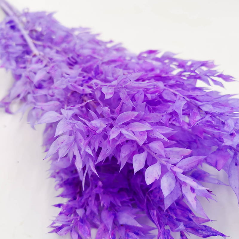 La couleur lilas symbolise la sérénité, le rêve et la créativité. Le ruscus dans cette teinte se marie parfaitement avec le rose poudré, le crème, l’or ou le blanc pour créer des compositions délicates et élégantes. C’est un choix idéal pour des décorations romantiques, féminines et pleines de finesse.