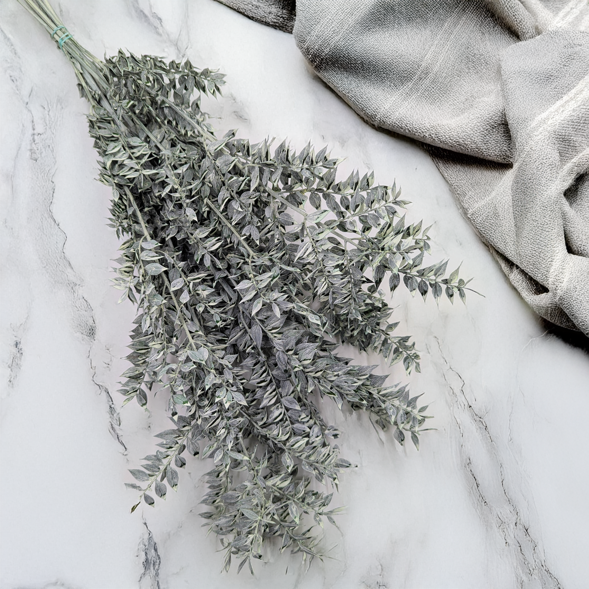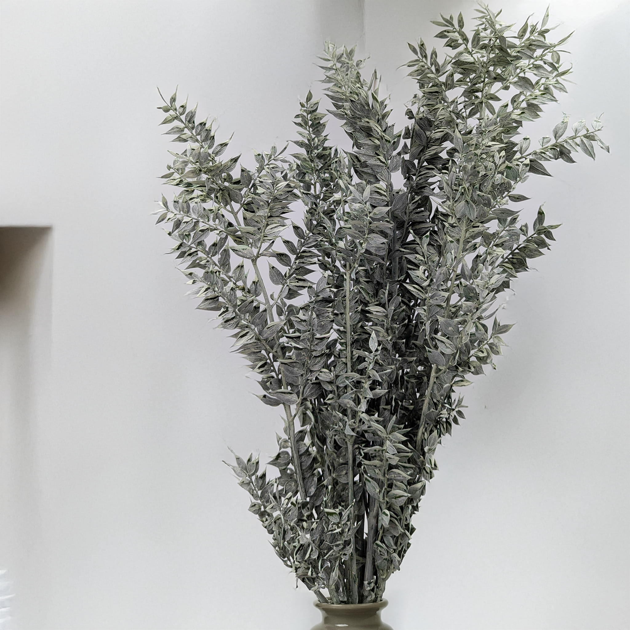 Le ruscus stabilisé en vert mat allie naturalité et simplicité élégante. Sa teinte de vert profond, sobre et sans éclat, apporte fraîcheur et raffinement aux compositions. C’est un choix universel aussi bien pour les bouquets de mariage que pour les décorations bohèmes, éco ou scandinaves.