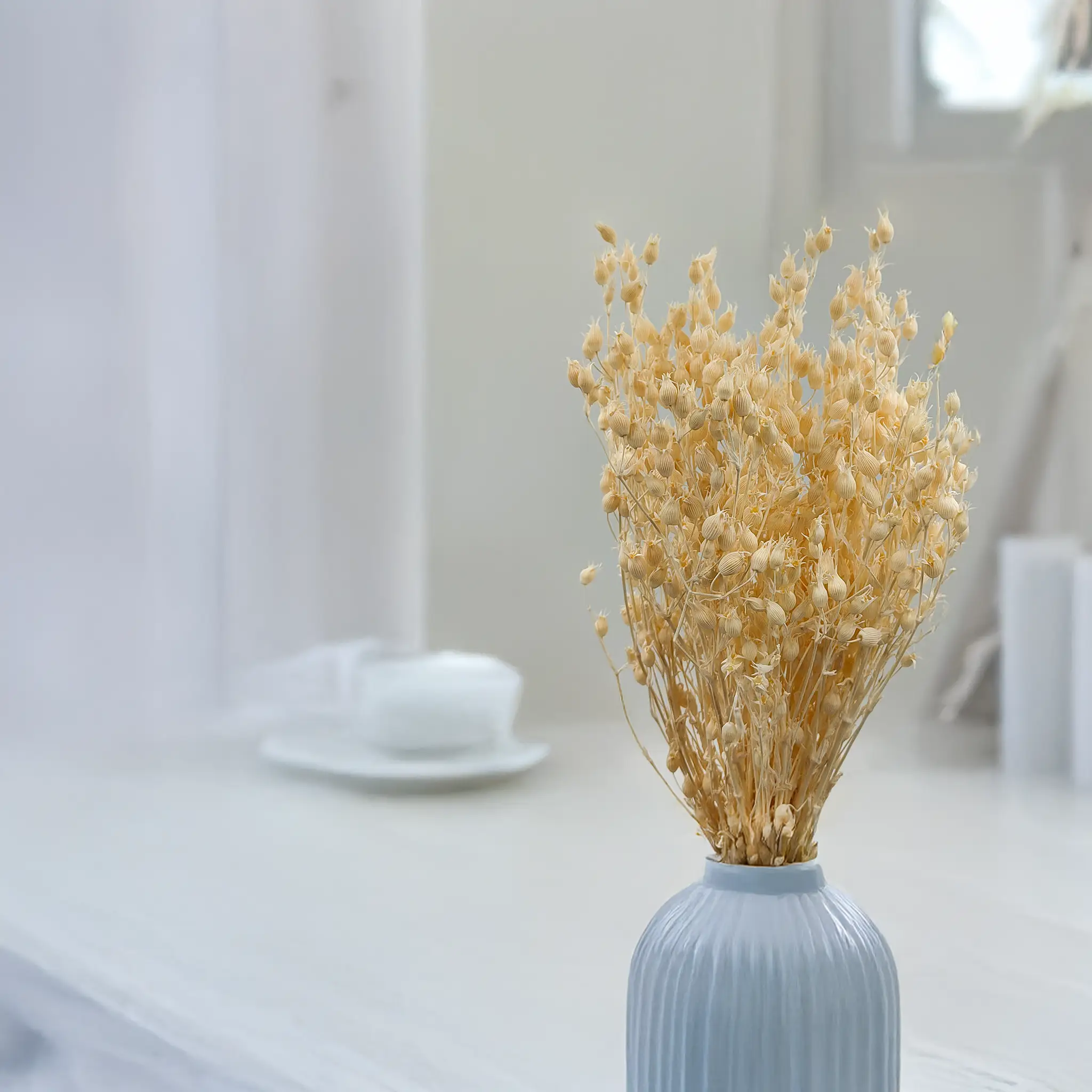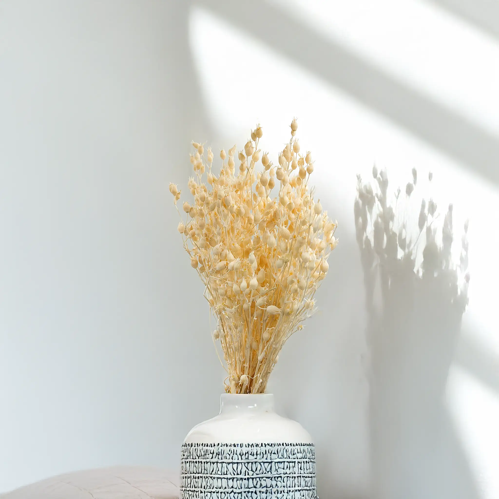 Fleur blanchi et séchée – légère, durable et sans entretien. Se marie avec des tons neutres, beiges, verts ou pastel.