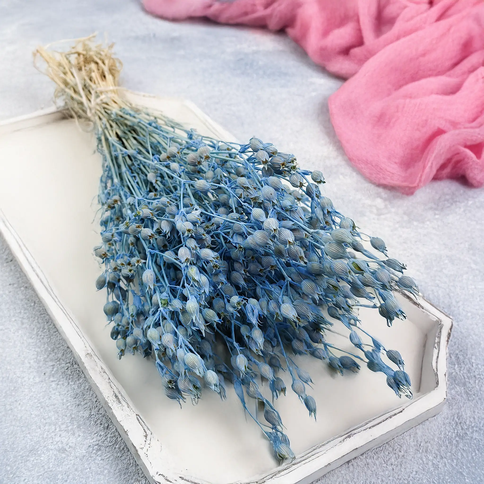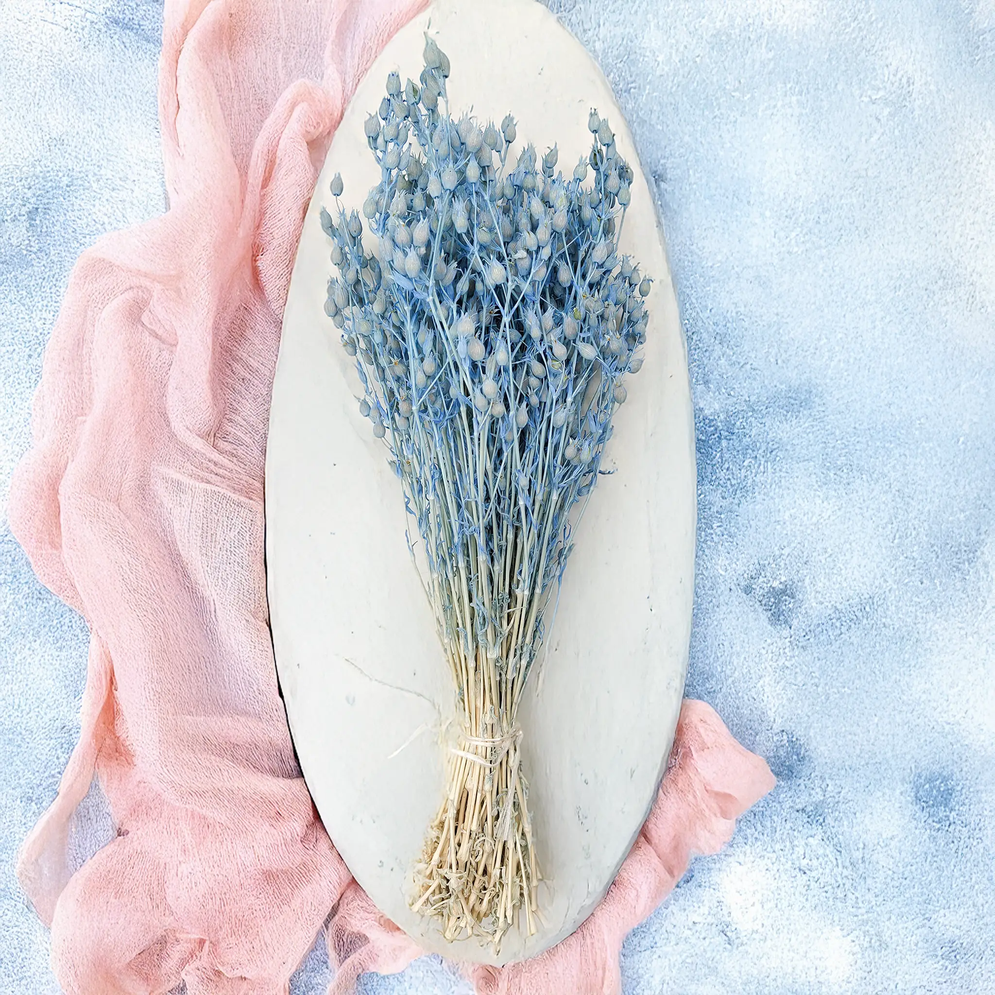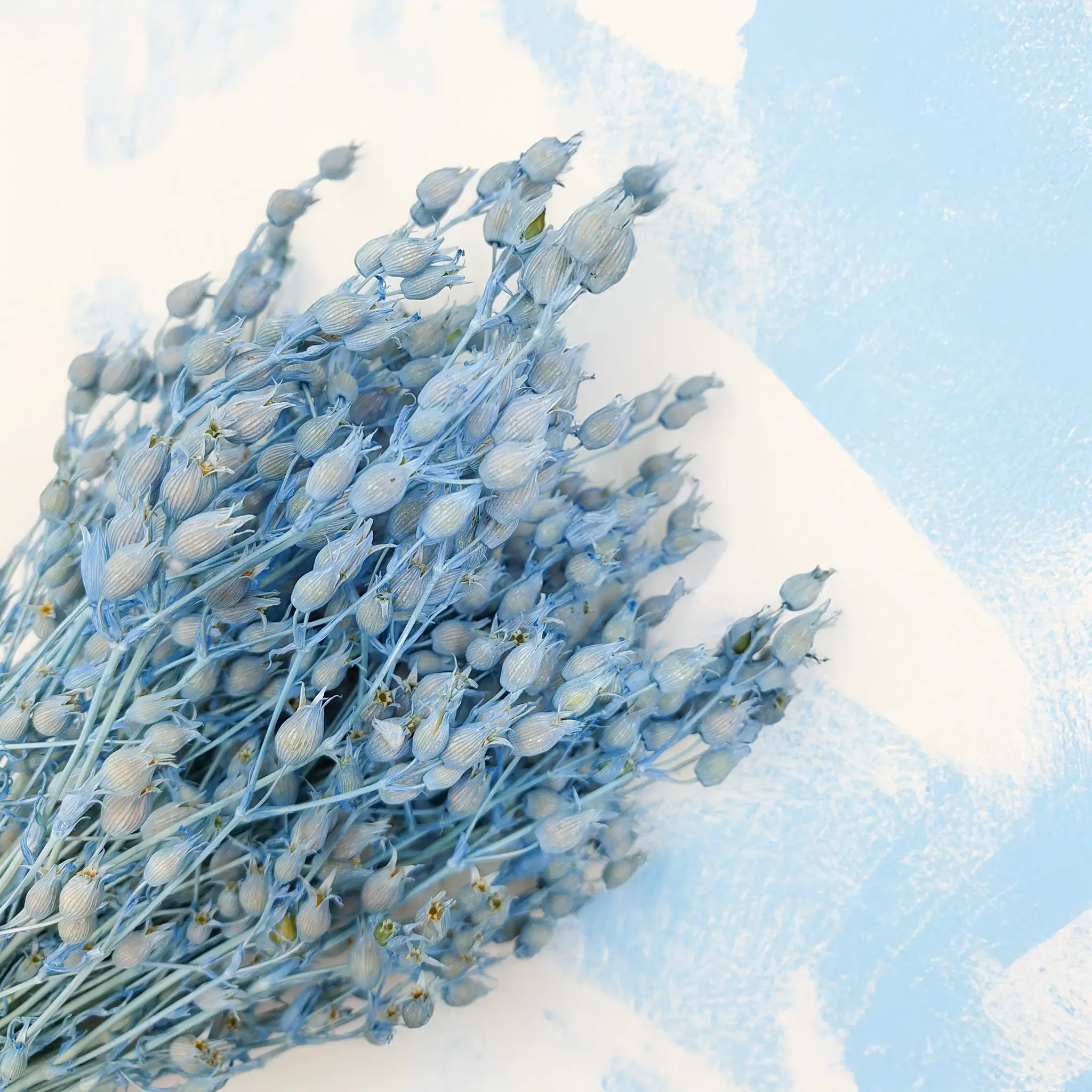Le Silène bleu clair séché évoque la mer et le ciel d’été. Ses fleurs gonflées offrent une texture légère, idéale pour des compositions naturelles et apaisantes.